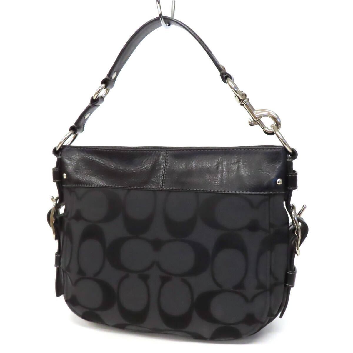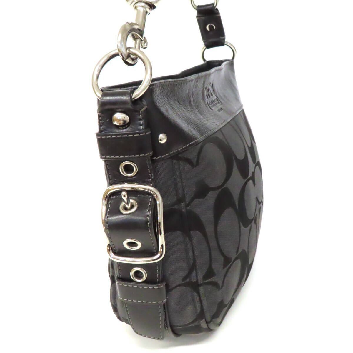 【美品】 COACH コーチ シグネチャー ゾーイ ホーボー ワンショルダーバッグ トートバッグ キャンバス×レザー 黒 ブラック
