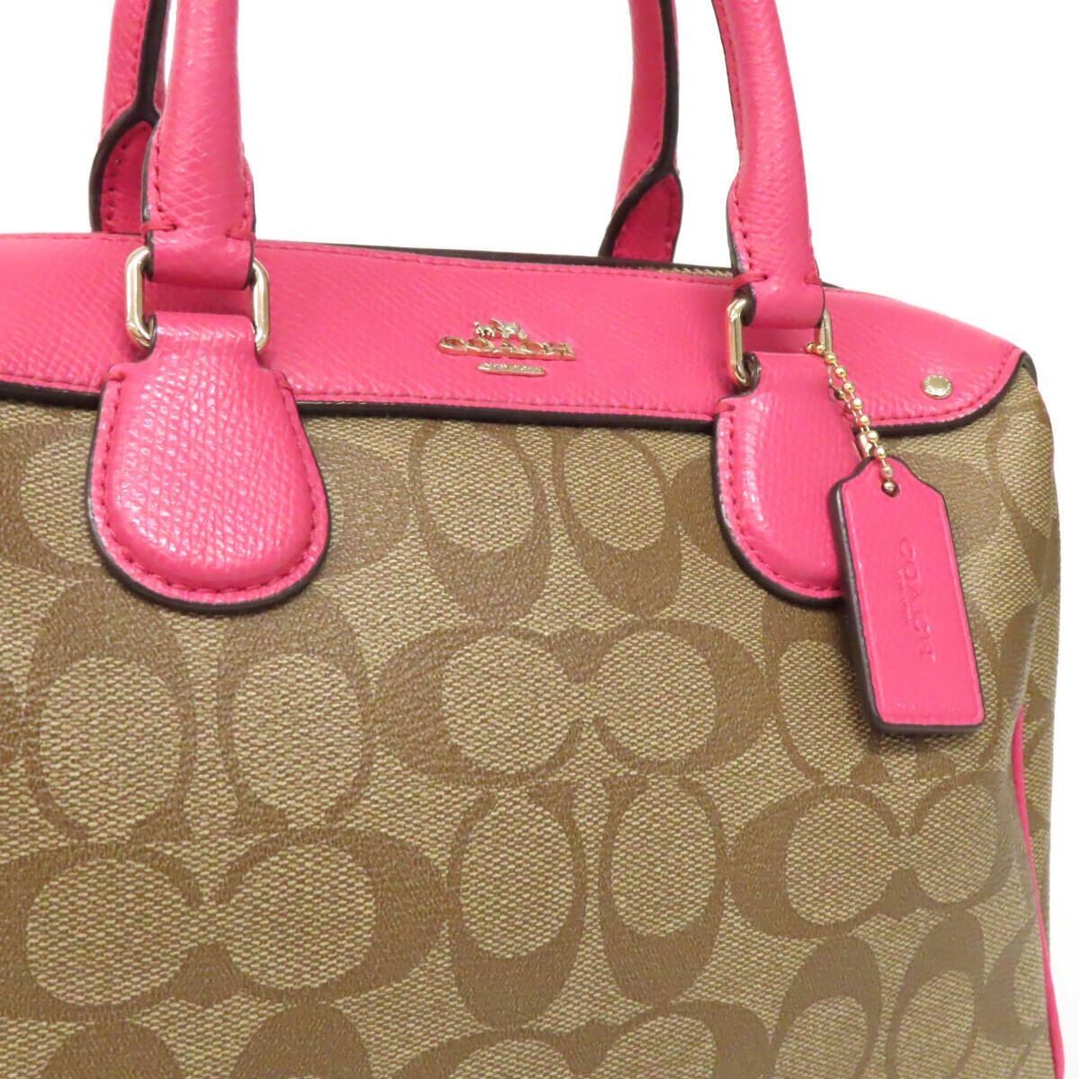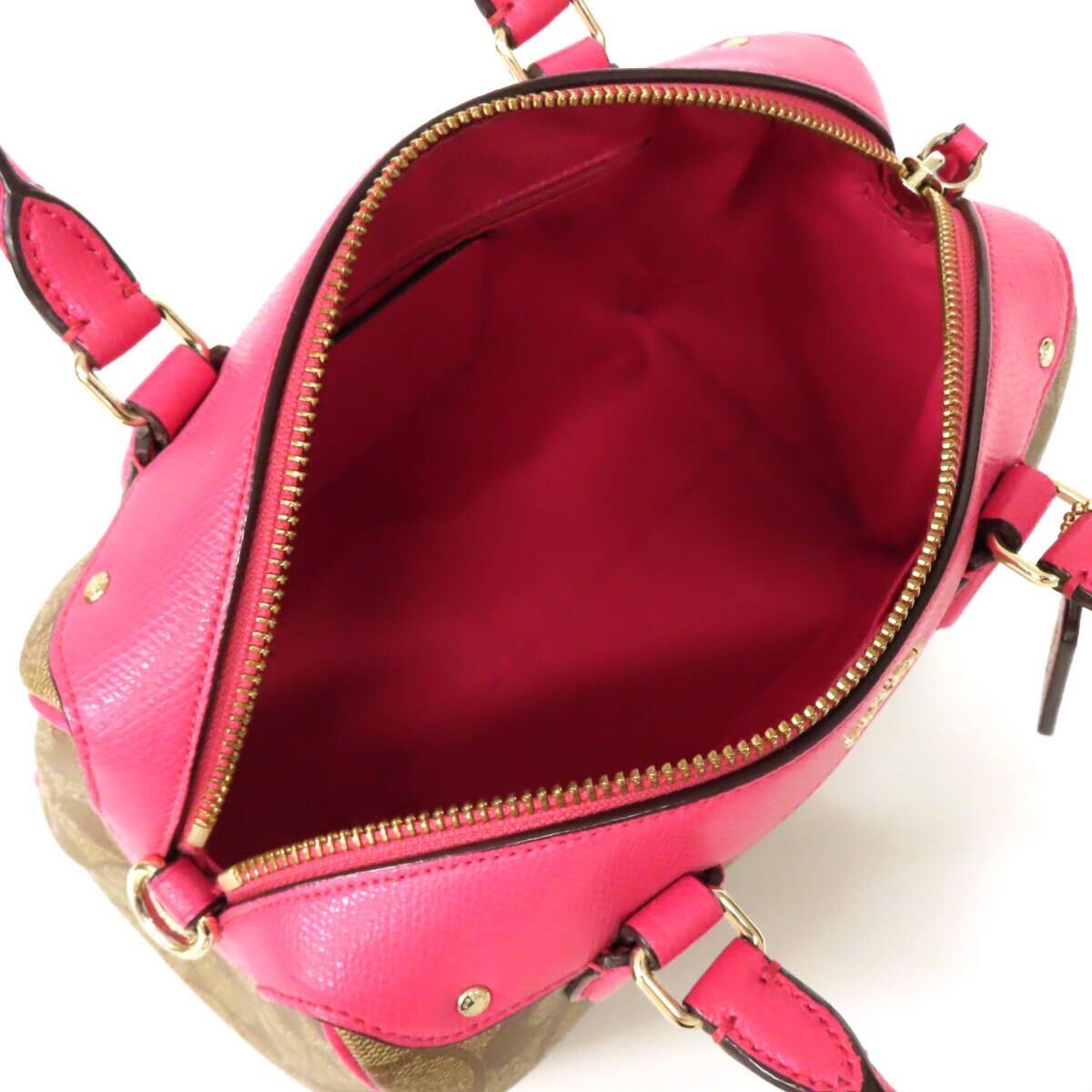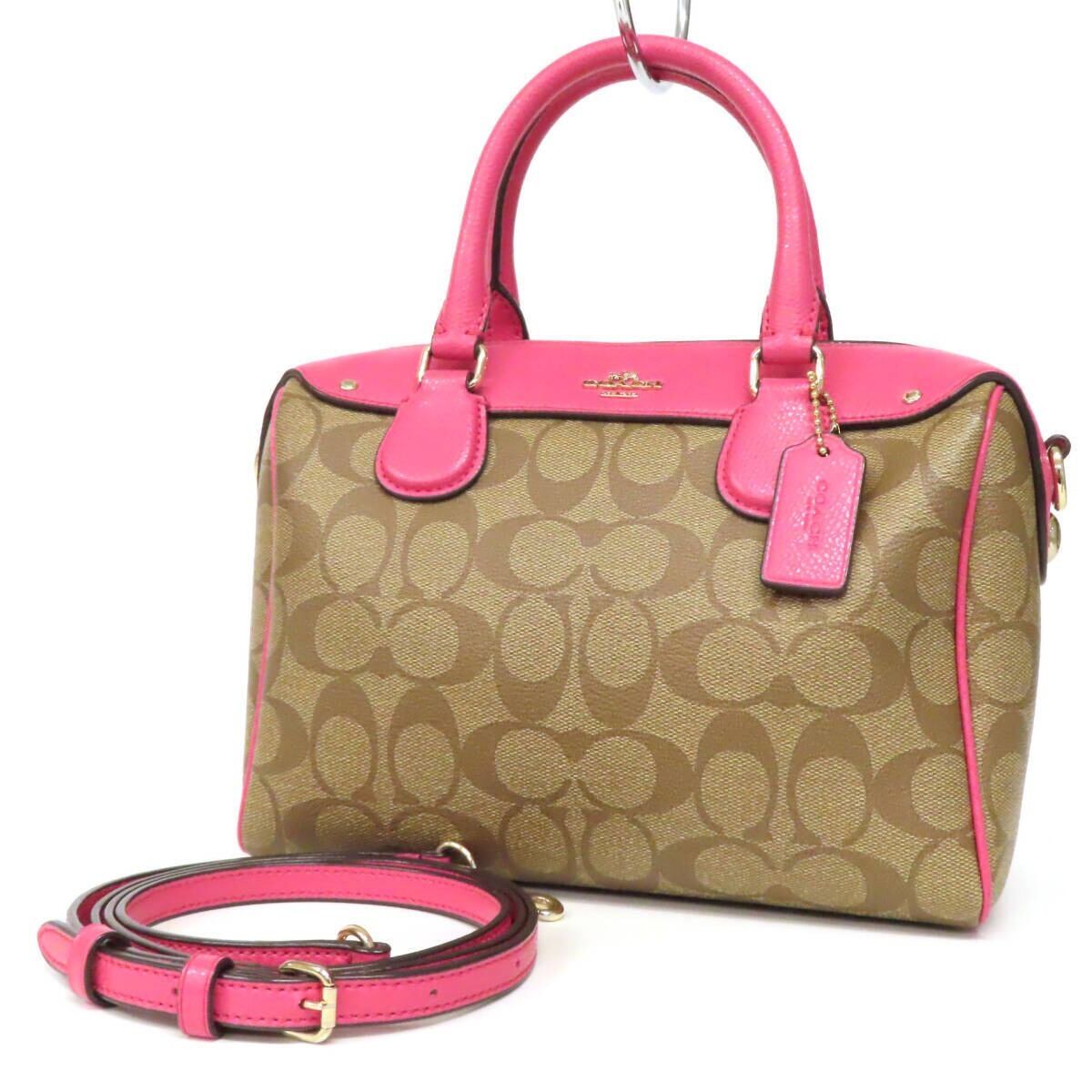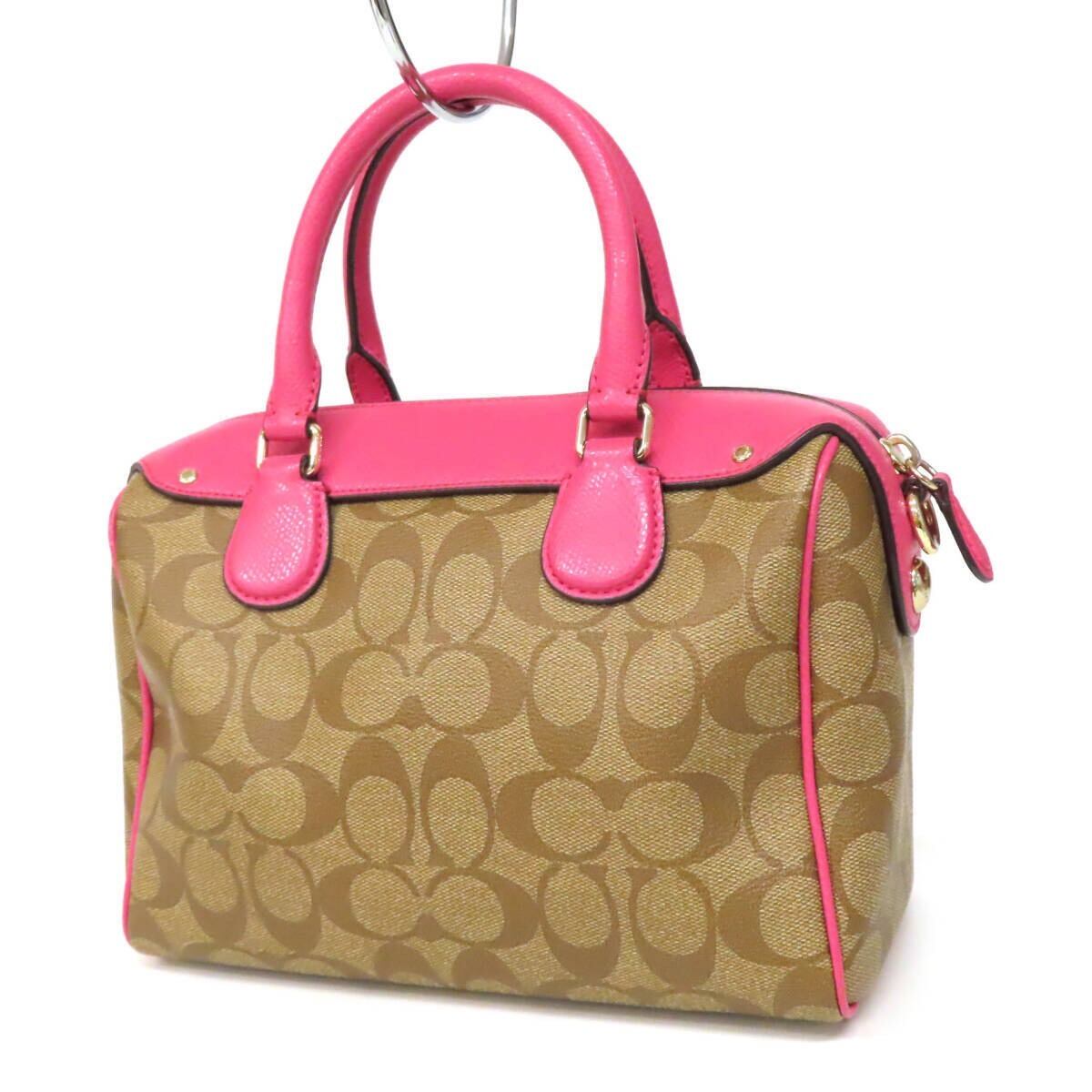 【美品】 COACH コーチ シグネチャーミニベネット 2WAY ハンドバッグ ショルダーバッグ ミニボストン PVC×レザー ベージュ×ピンク