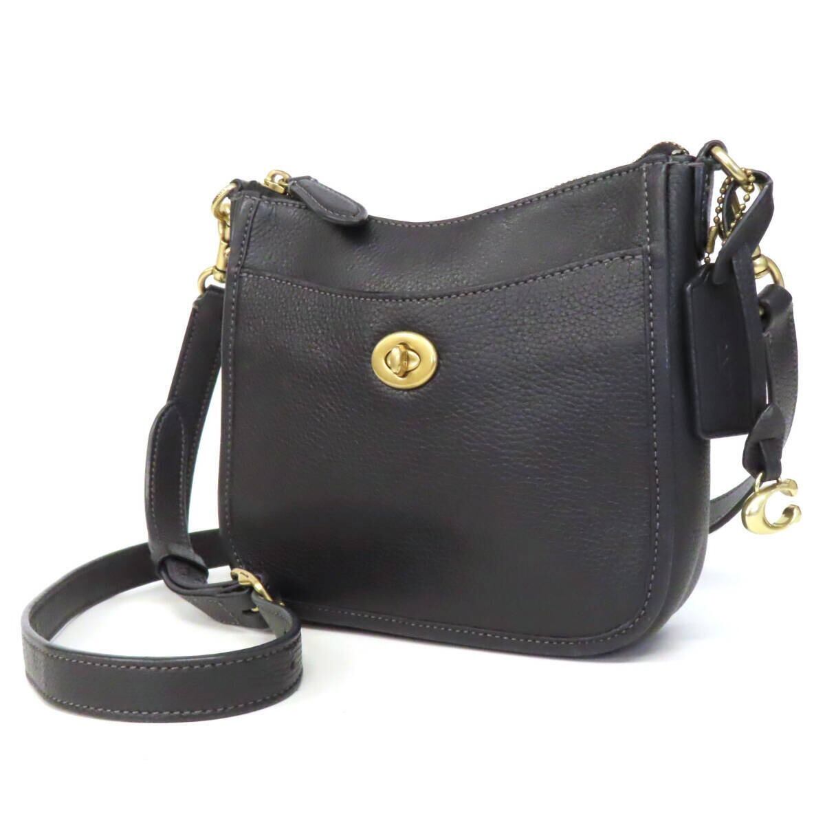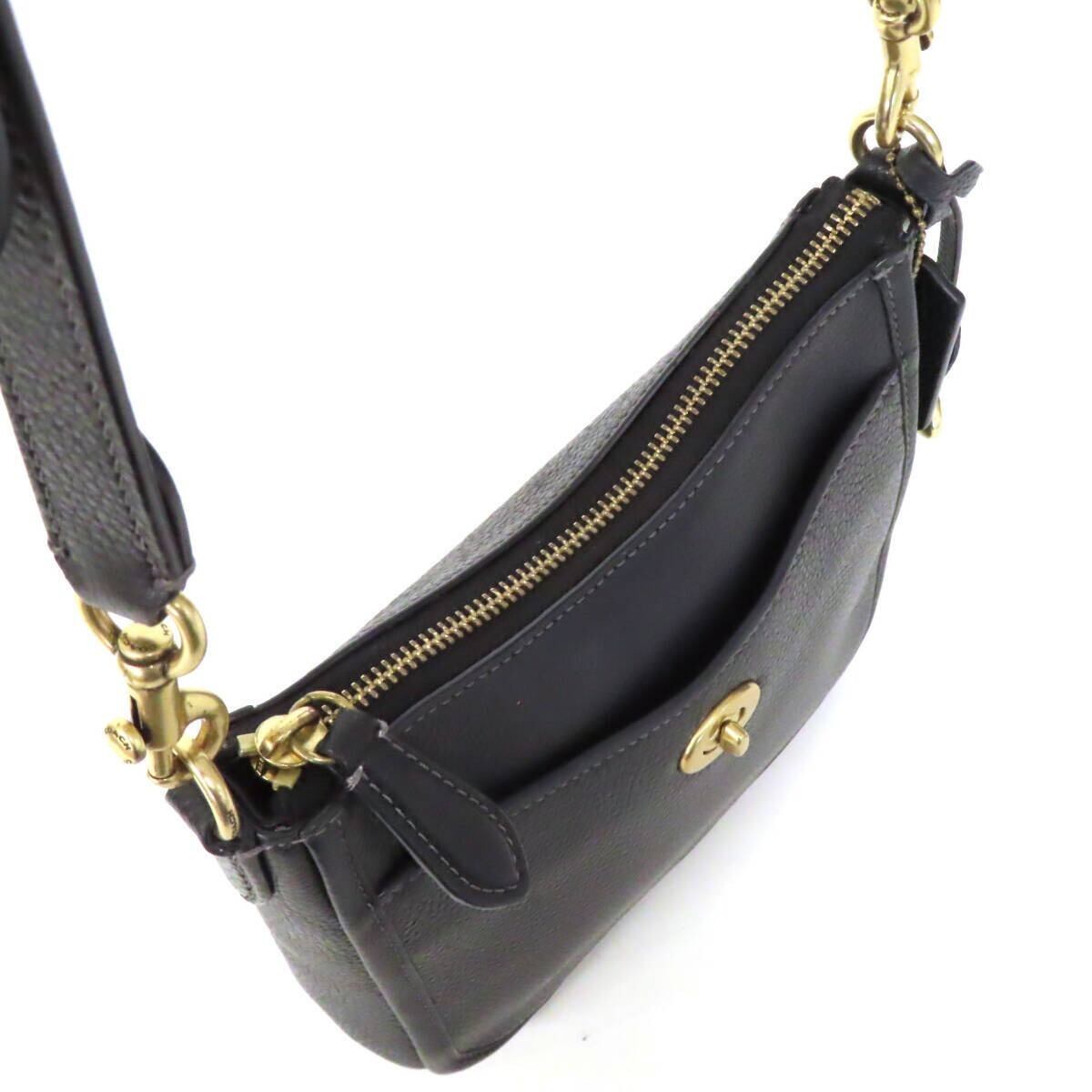 【美品】 COACH コーチ ミニ ショルダーバッグ シボ革 レザー 斜め掛け クロスボディ ターンロック金具 黒 ブラック レディース CC390