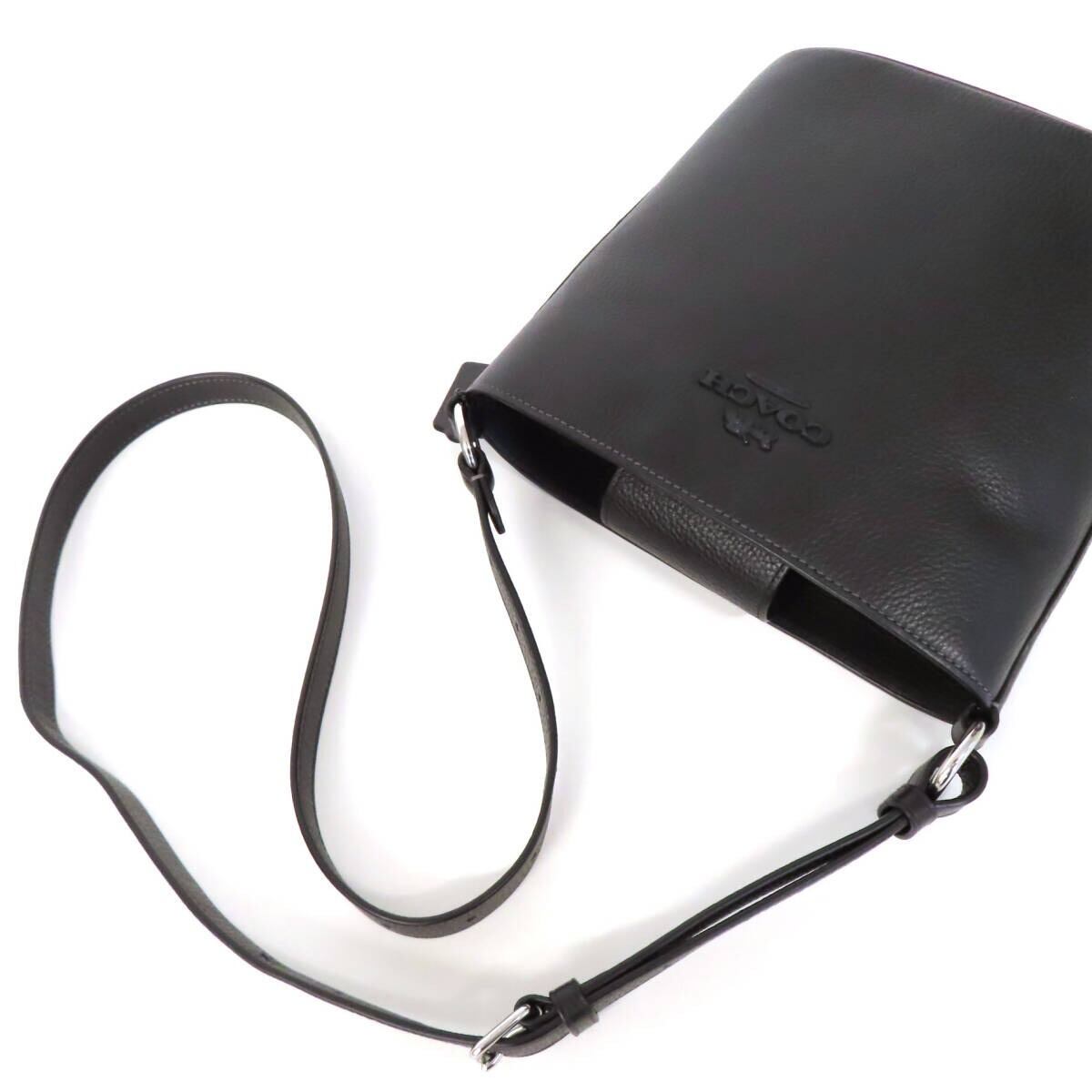 【美品】 COACH コーチ ソフィー ショルダーバッグ バケツ型 バケット シボ革 レザー ロゴ型押し クロスボディ 黒 ブラック