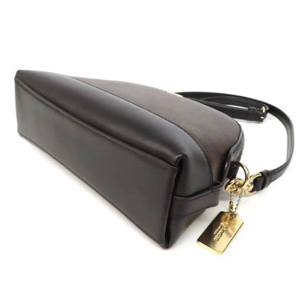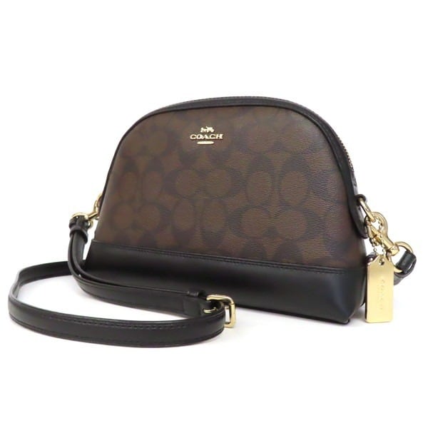 【美品】COACH コーチ 2WAY ショルダーバッグ ポーチ シグネチャー柄 PVC×レザー ドーム型 クロスボディ 茶 ブラウン×ブラック レディース