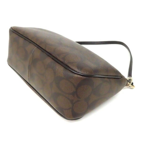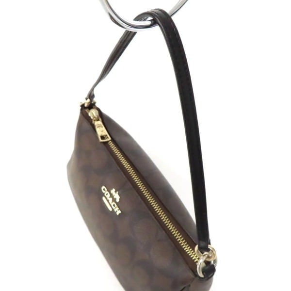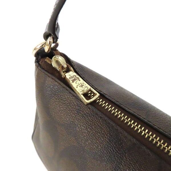 【美品】COACH コーチ トップハンドルポーチ 2WAY ハンドバッグ アクセサリーポーチ シグネチャー PVC×レザー ショルダーバッグ 茶×黒