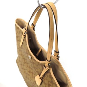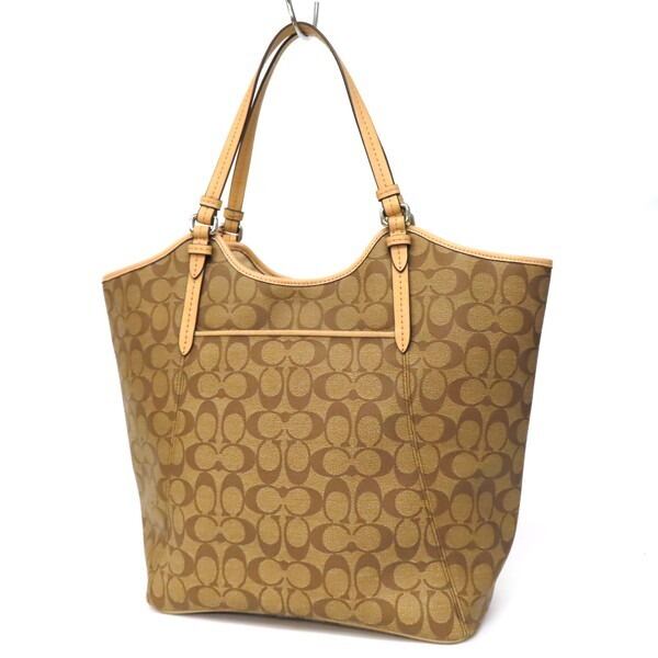 【美品】COACH コーチ シグネチャー トートバッグ ショルダーバッグ PVC×レザー ベージュ×キャメル レディース