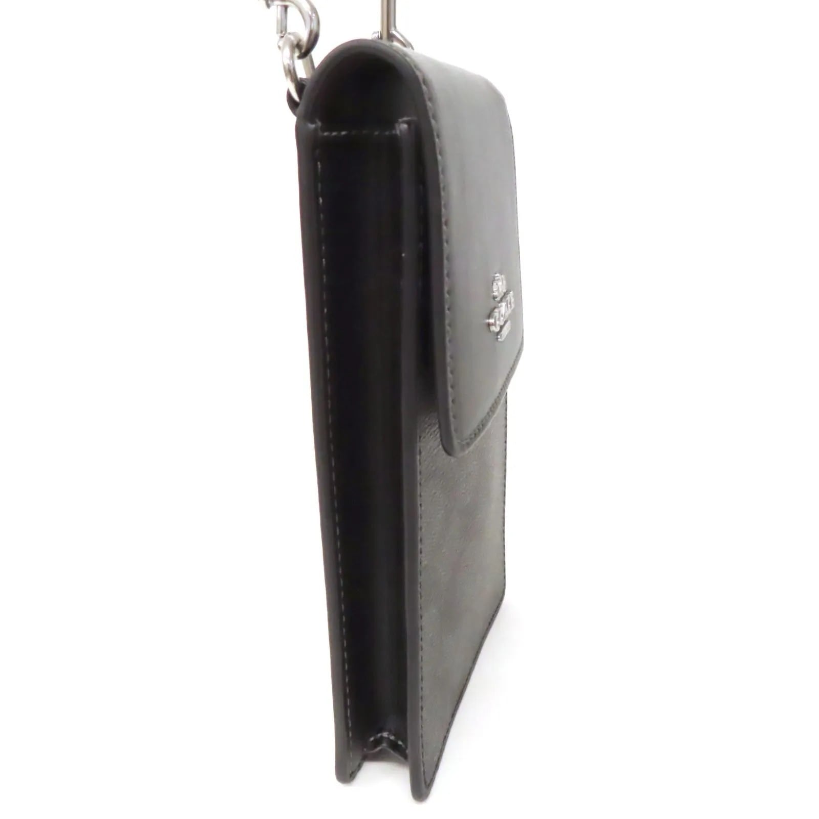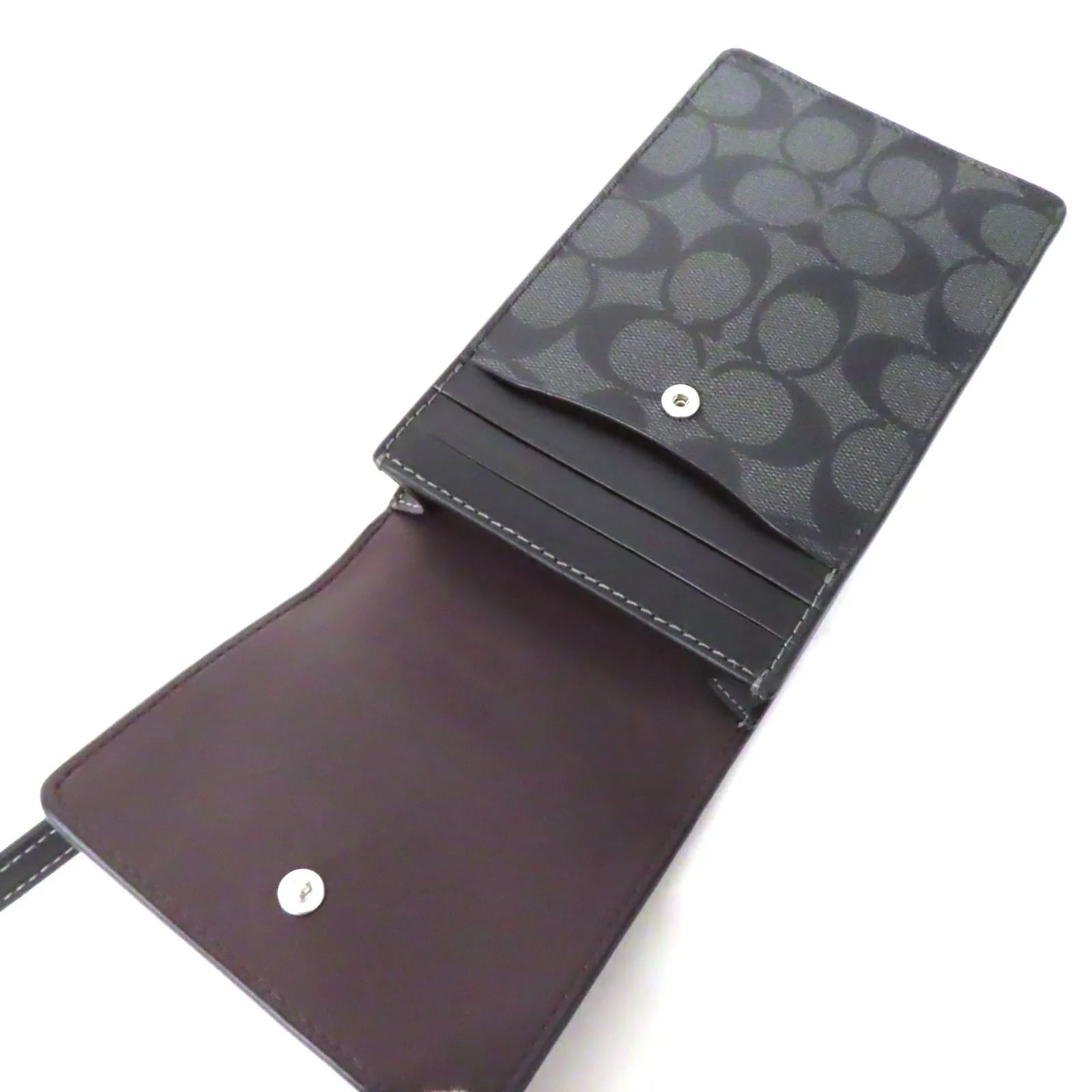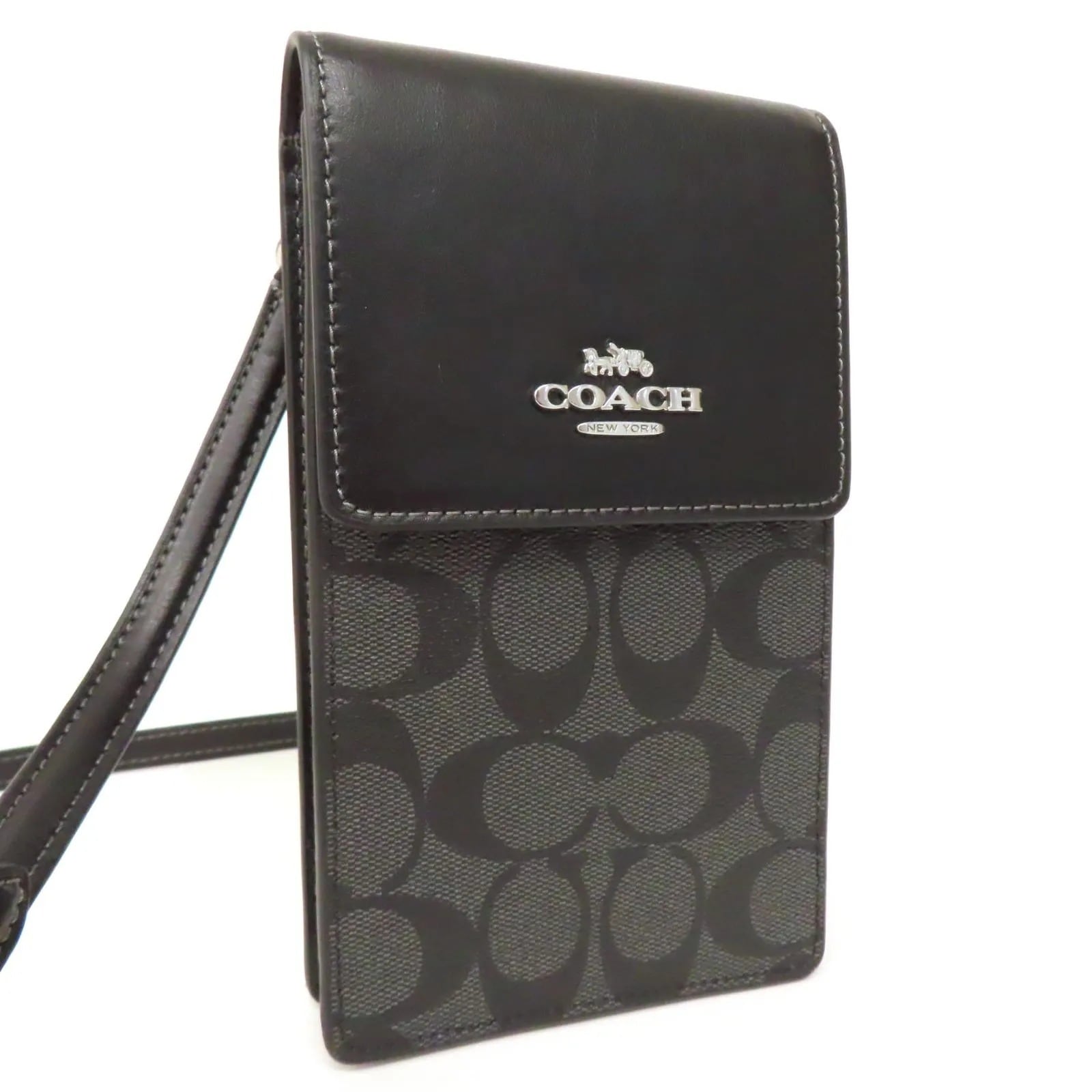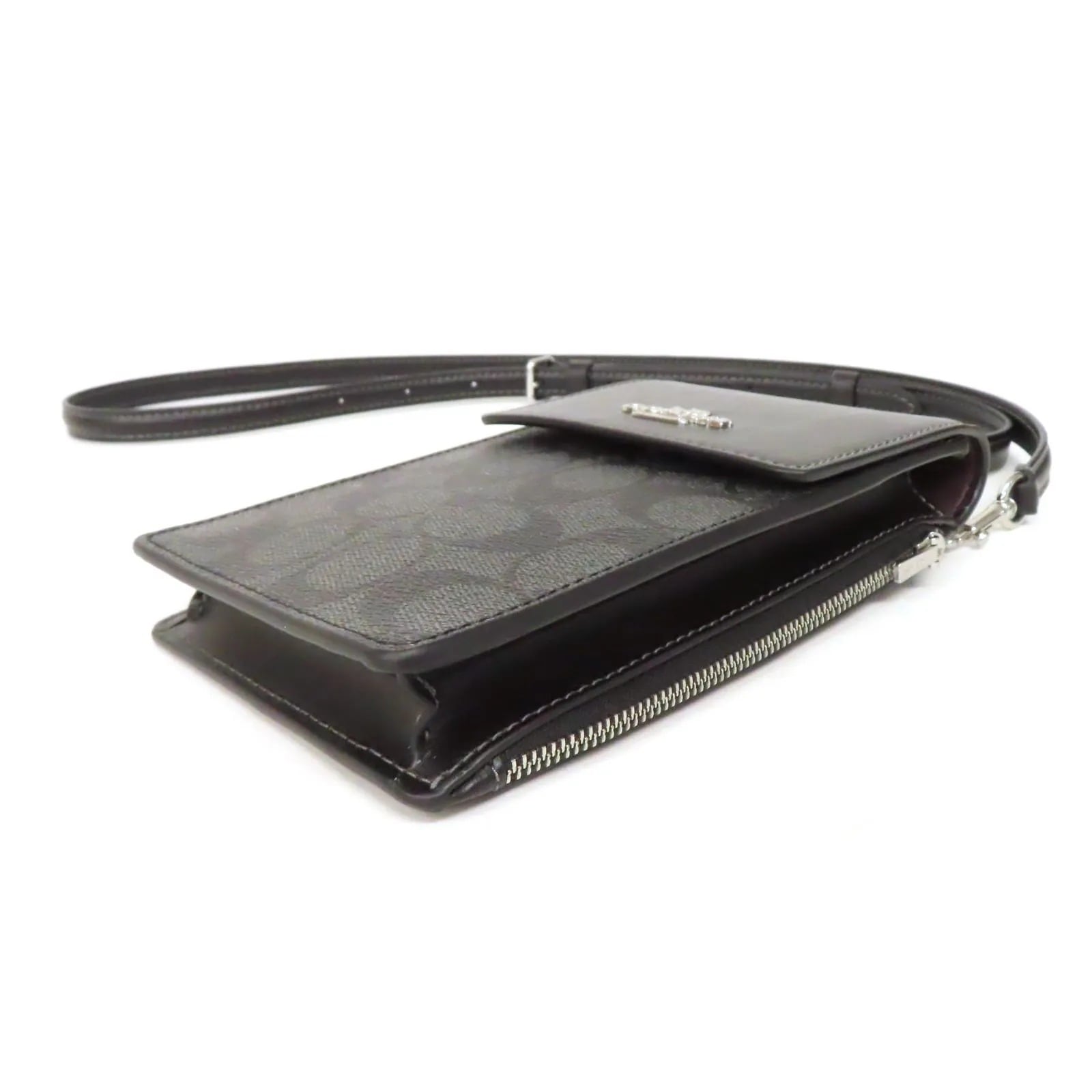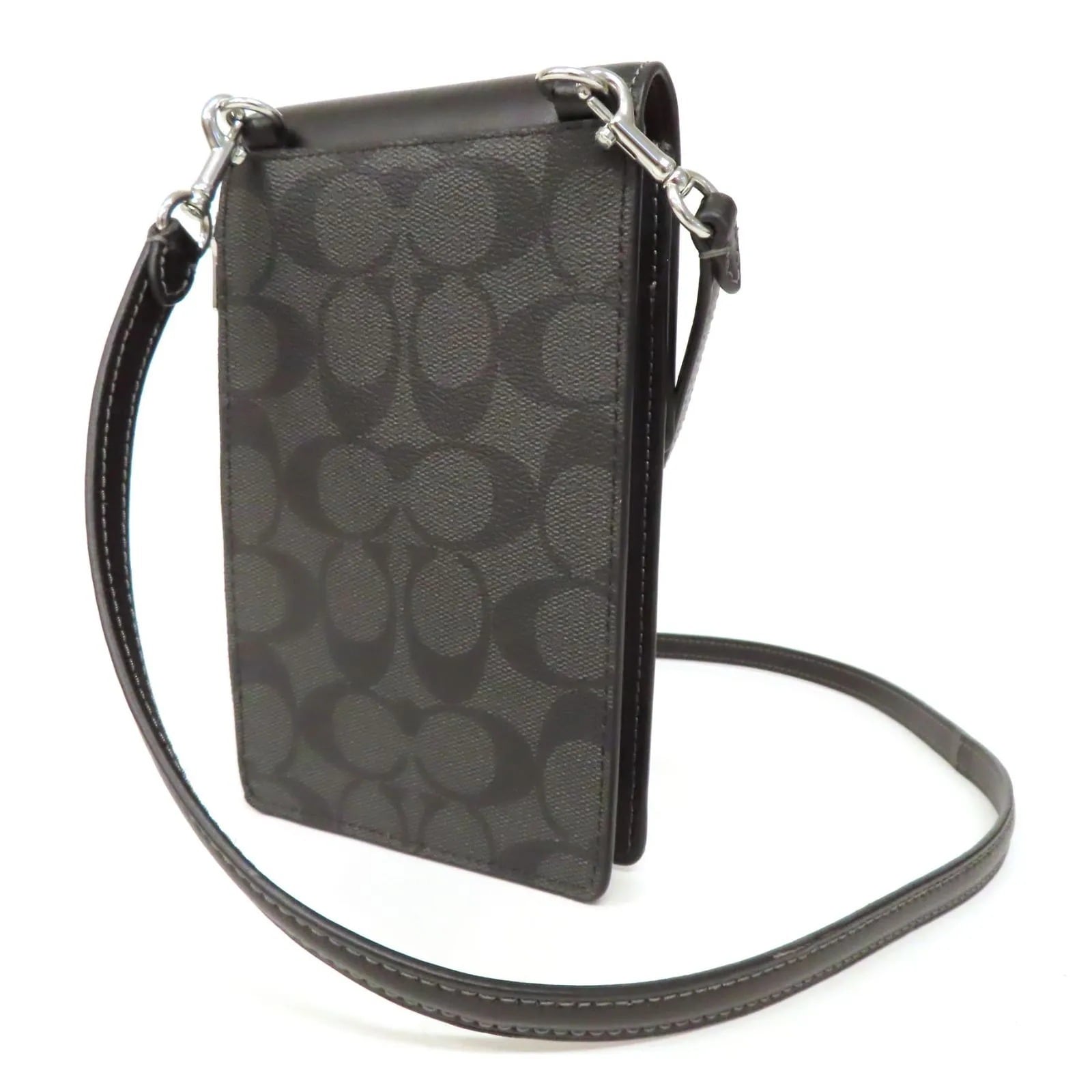 【極美品】 COACH コーチ サウス フォーン クロスボディ ミニ ショルダーバッグ シグネチャー PVC×レザー メタルロゴ シルバー金具 フラップ 斜め掛け スマホショルダー 黒 ブラック
