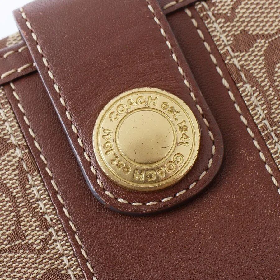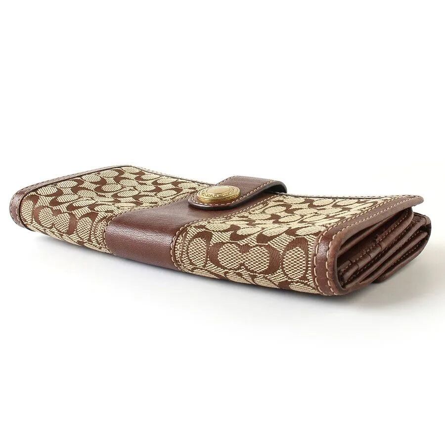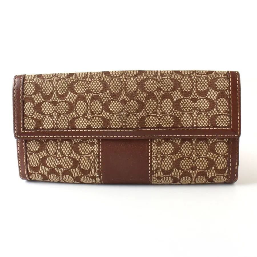 【中古】 COACH コーチ 長財布 シグネチャー キャンバス×レザー ブラウン系 茶