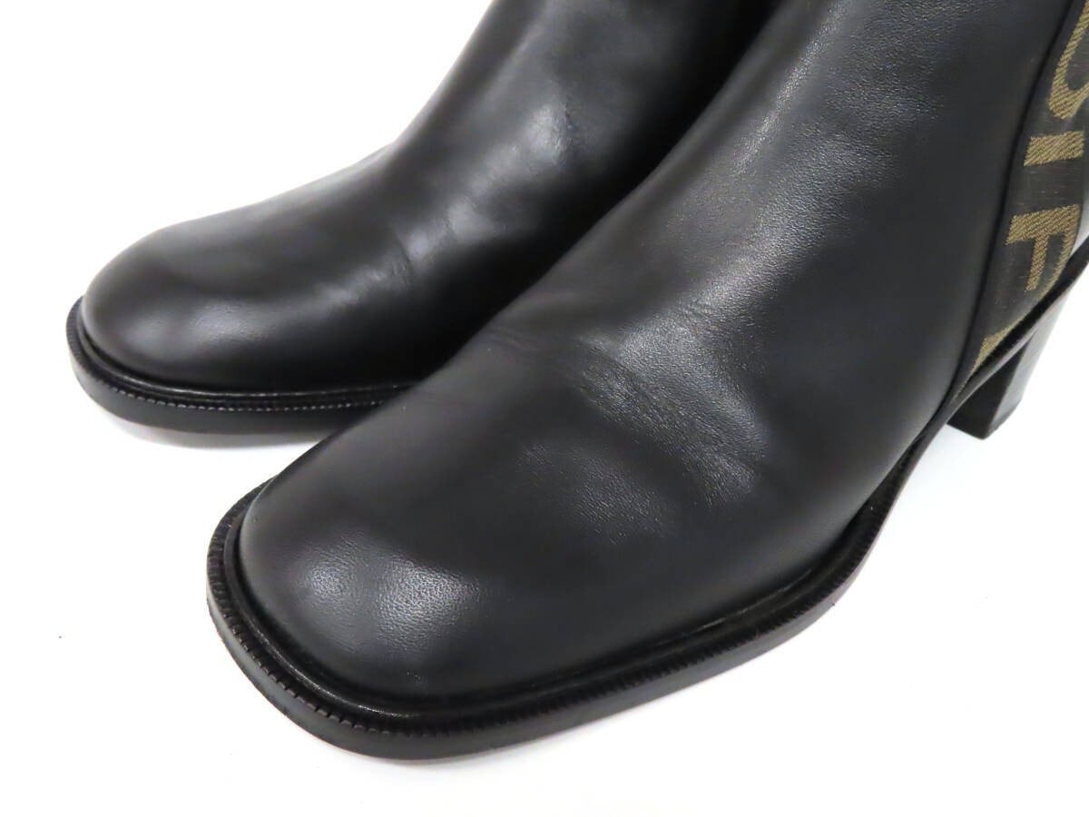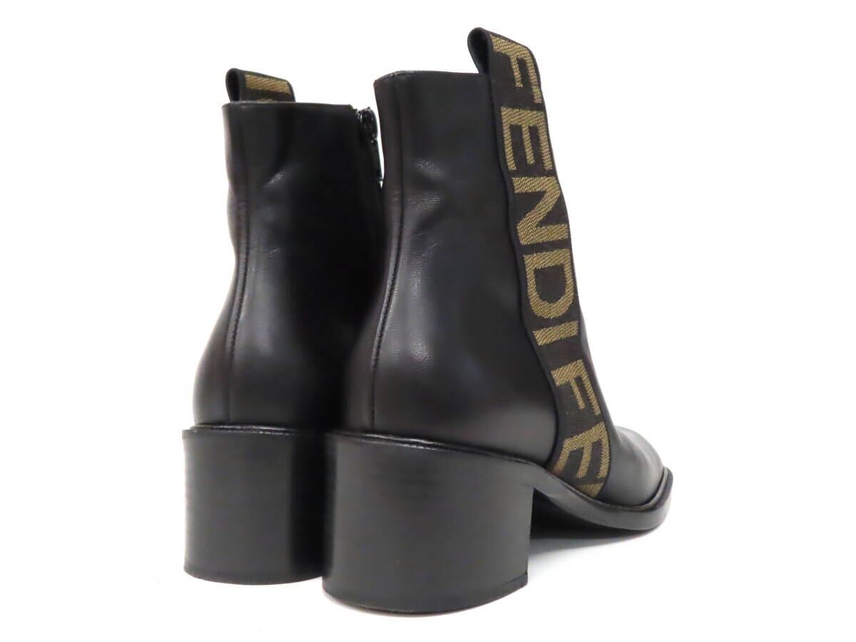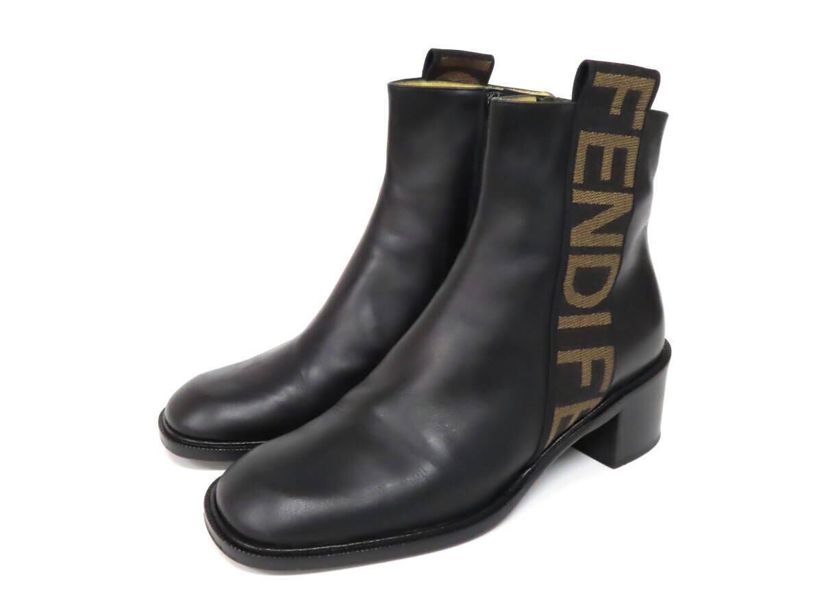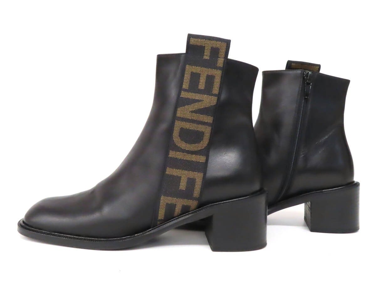 【美品】 FENDI フェンディ ロゴライン 英字 サイドジップ レザー ショートブーツ ヒール シューズ 靴 size35 黒 レディース イタリア製