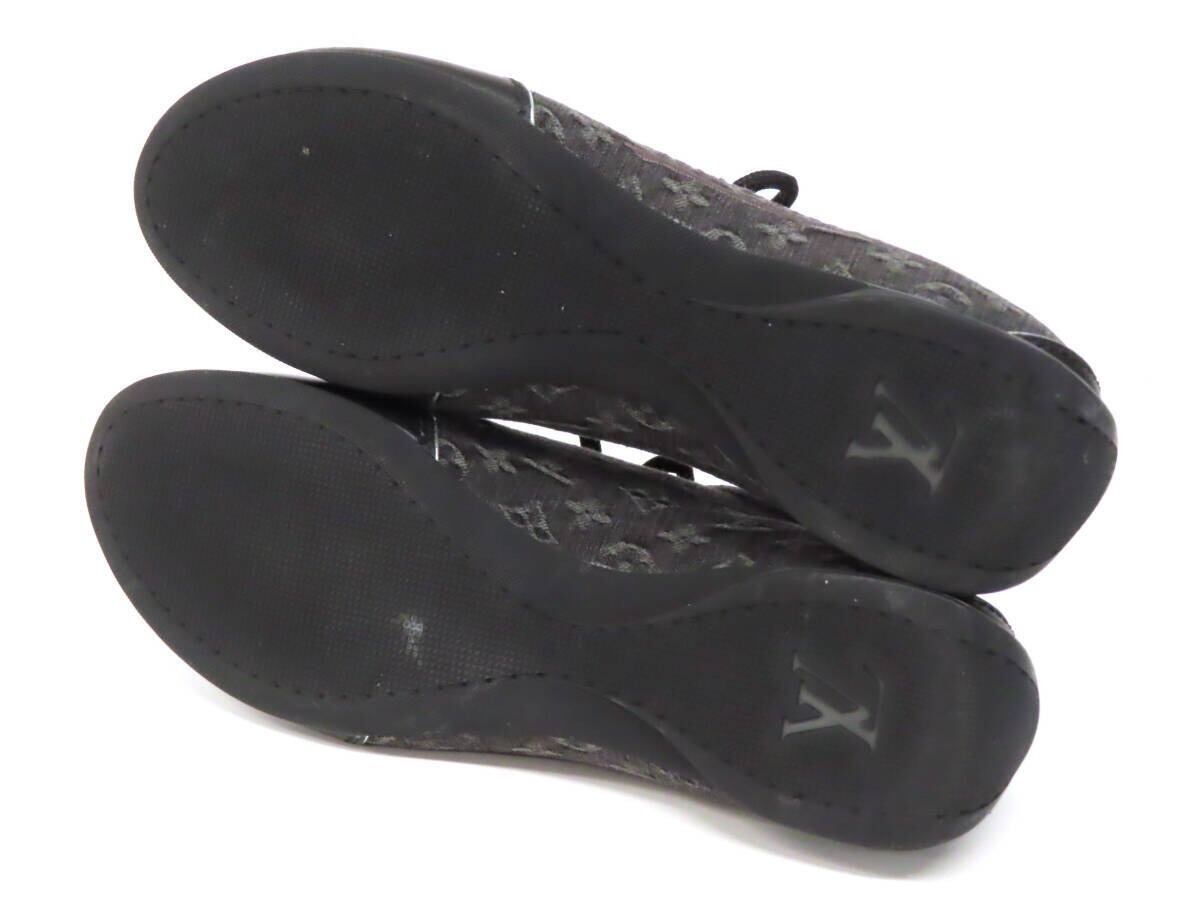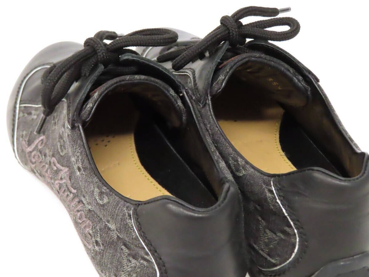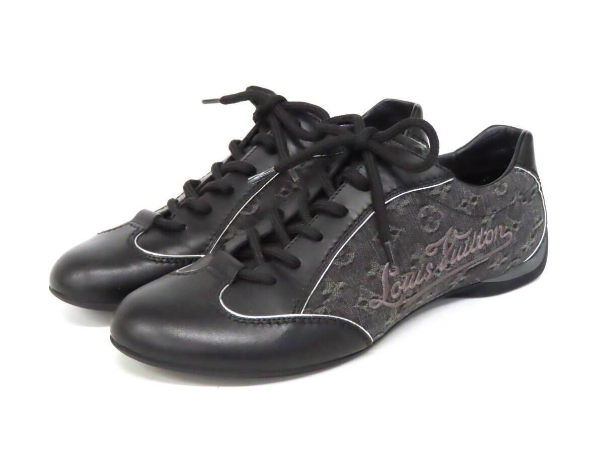 【美品】 LOUIS VUITTON ヴィトン モノグラム ロゴ刺繍 デニム キャンバス×レザー ローカット レースアップ スニーカー 靴 35.5 黒 伊製