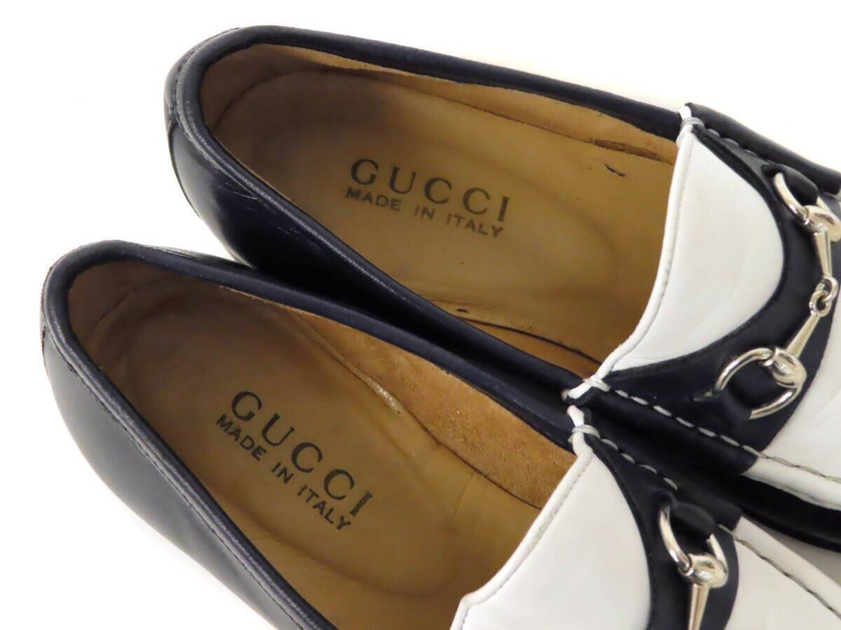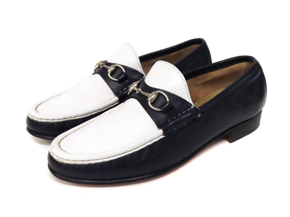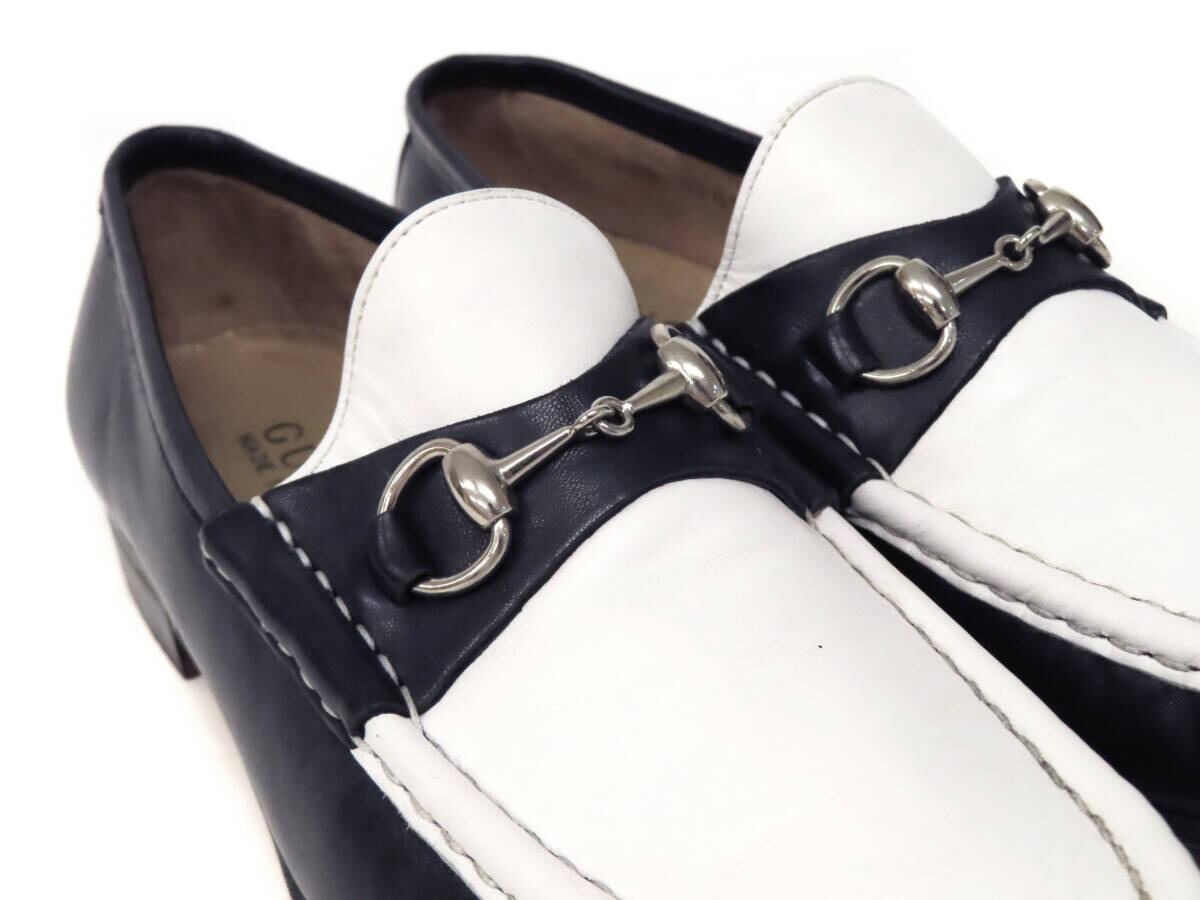 【美品】 GUCCI グッチ ホースビット シルバー金具 バイカラー レザー ローファー スリッポン ドレスシューズ 革靴 36.5C 紺×白 伊製