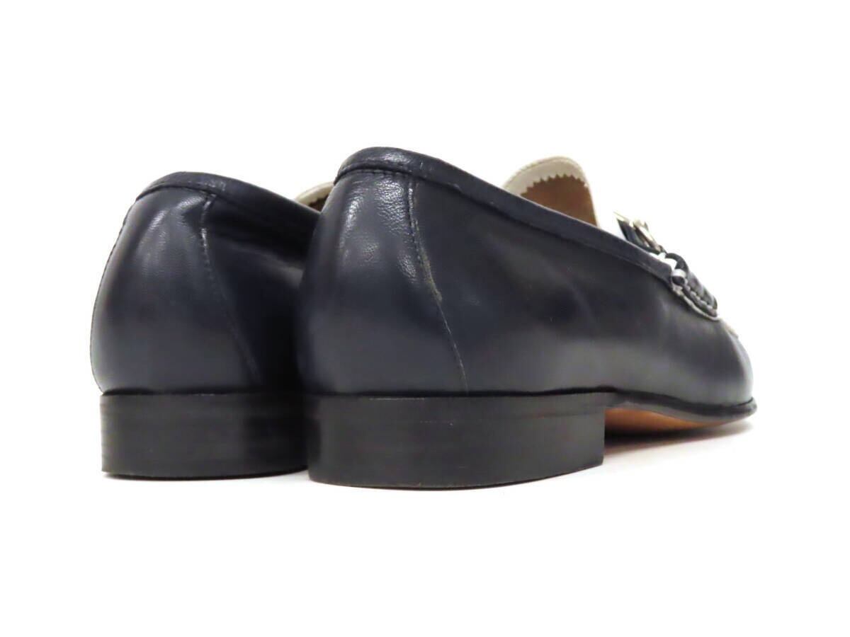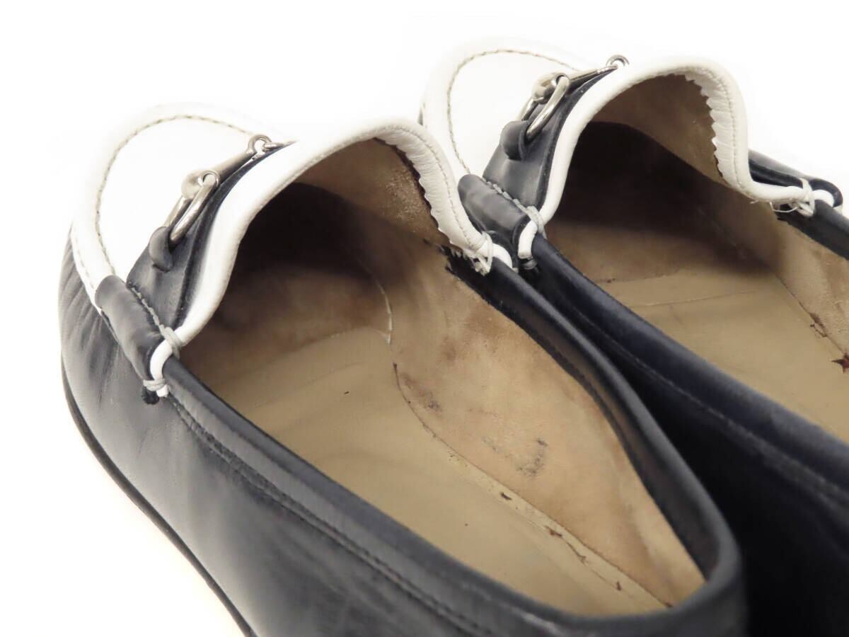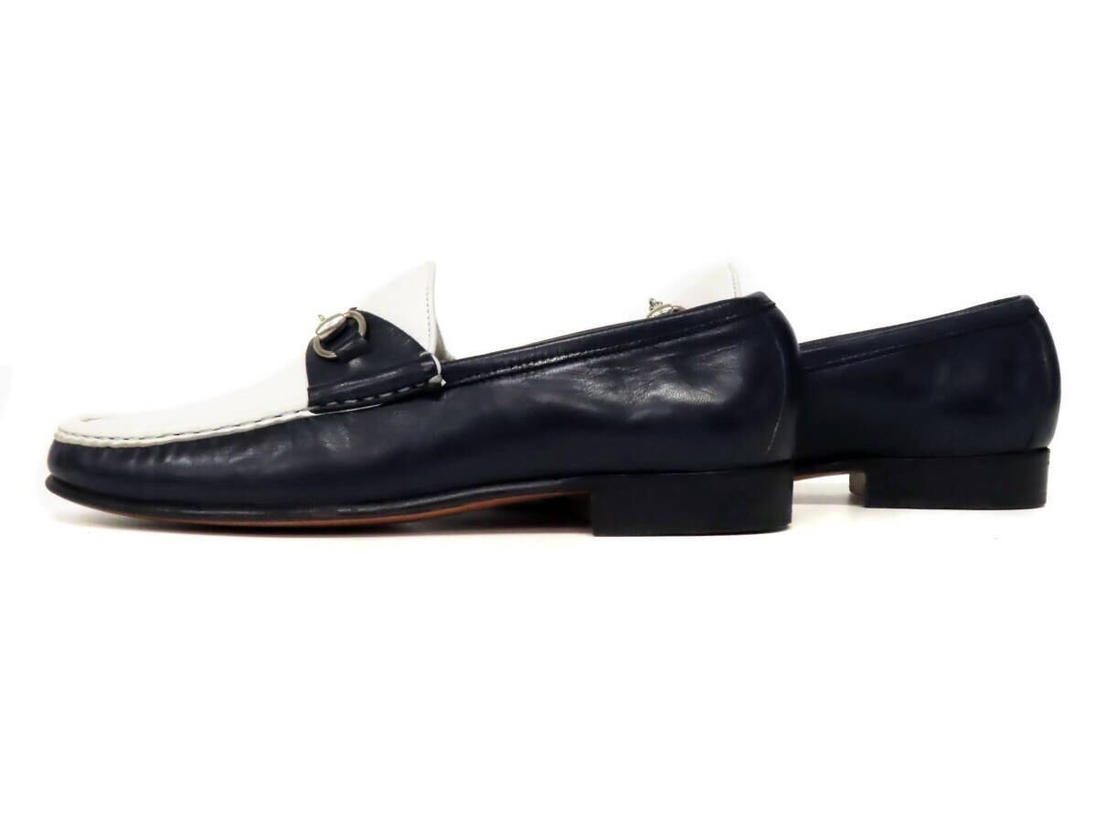 【美品】 GUCCI グッチ ホースビット シルバー金具 バイカラー レザー ローファー スリッポン ドレスシューズ 革靴 36.5C 紺×白 伊製