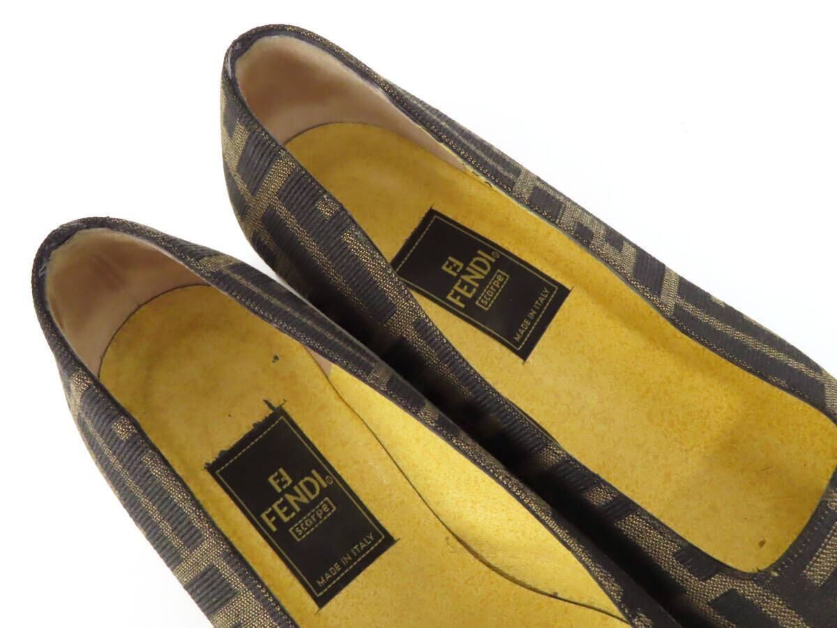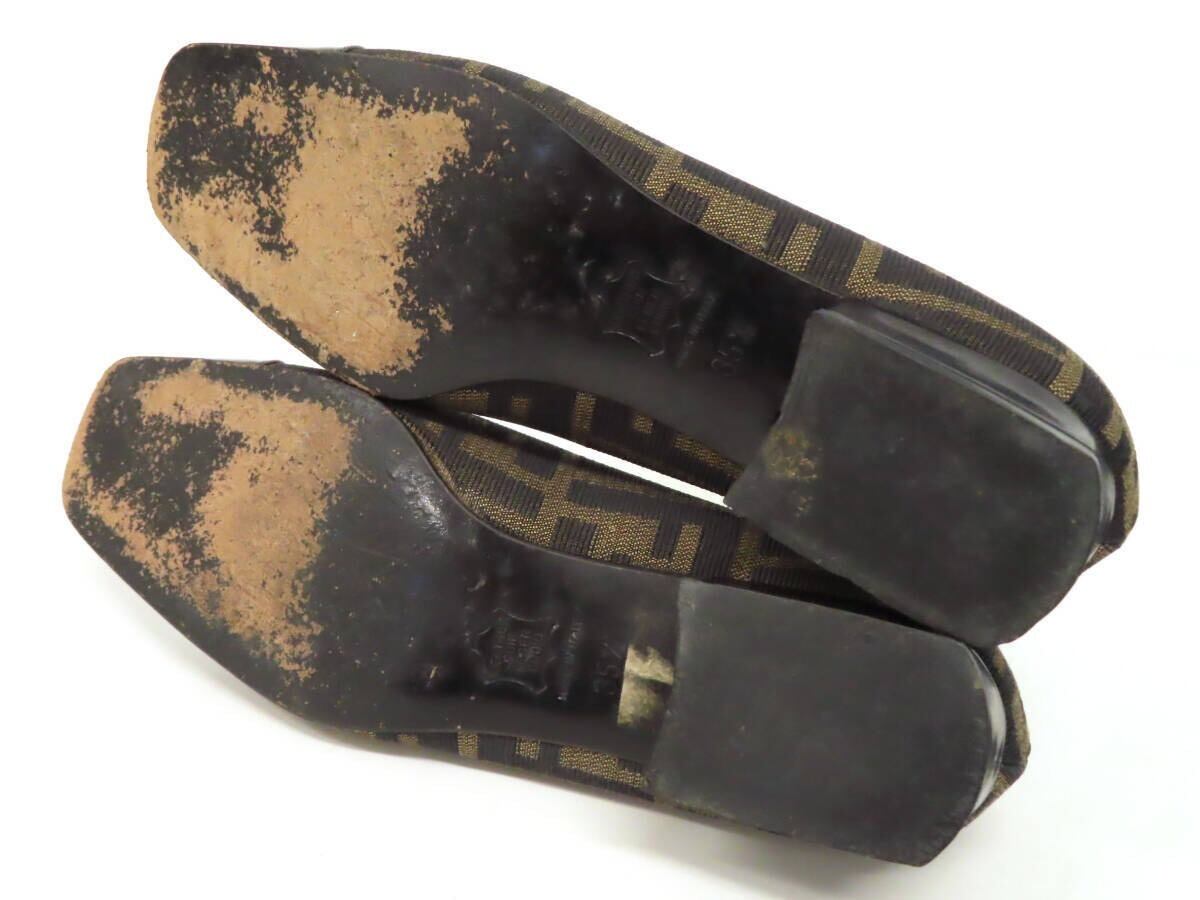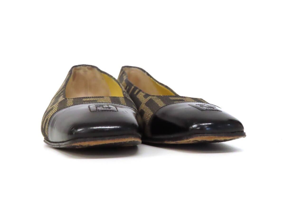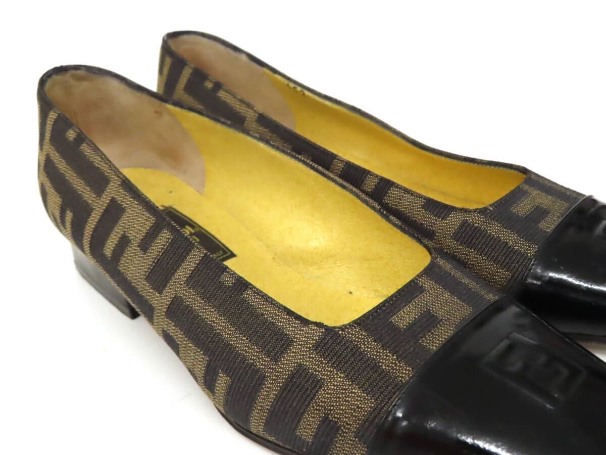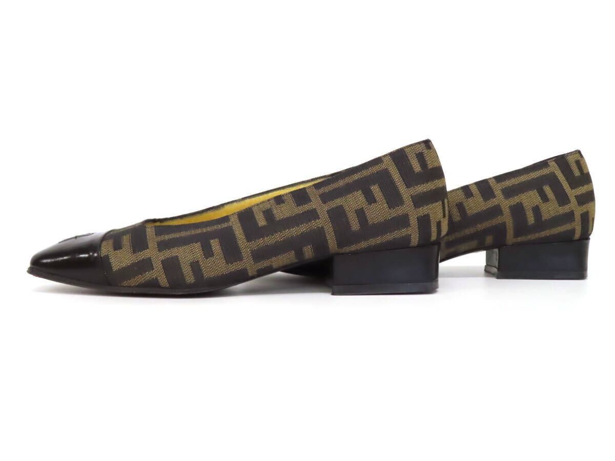 【美品】 FENDI フェンディ ズッカ柄 ジャガード キャンバス×エナメルレザー キャップトゥ ローヒール パンプス シューズ 35.5 茶 伊製