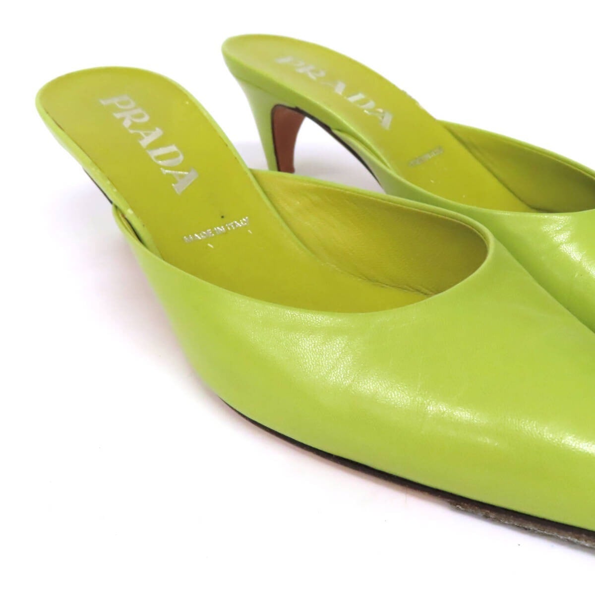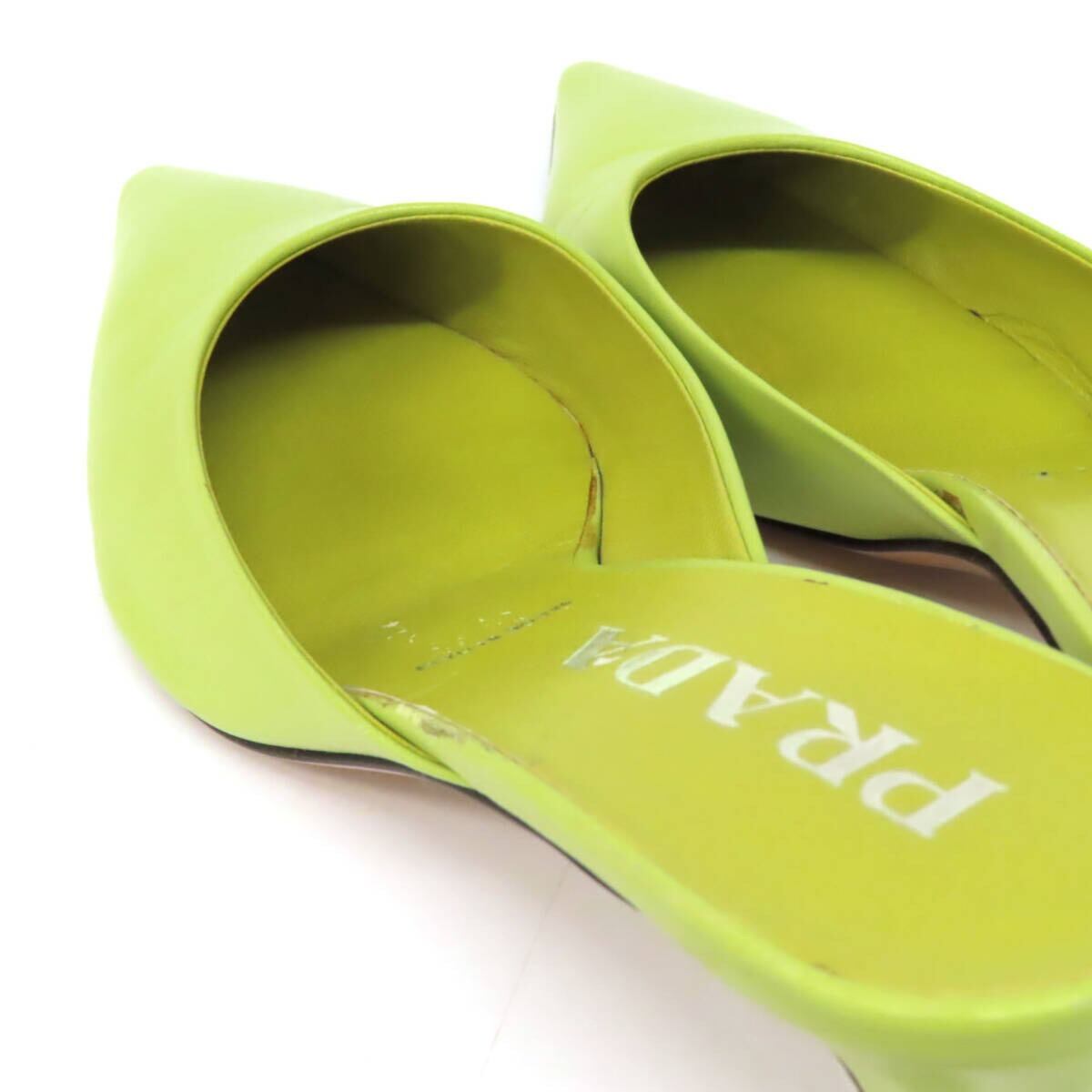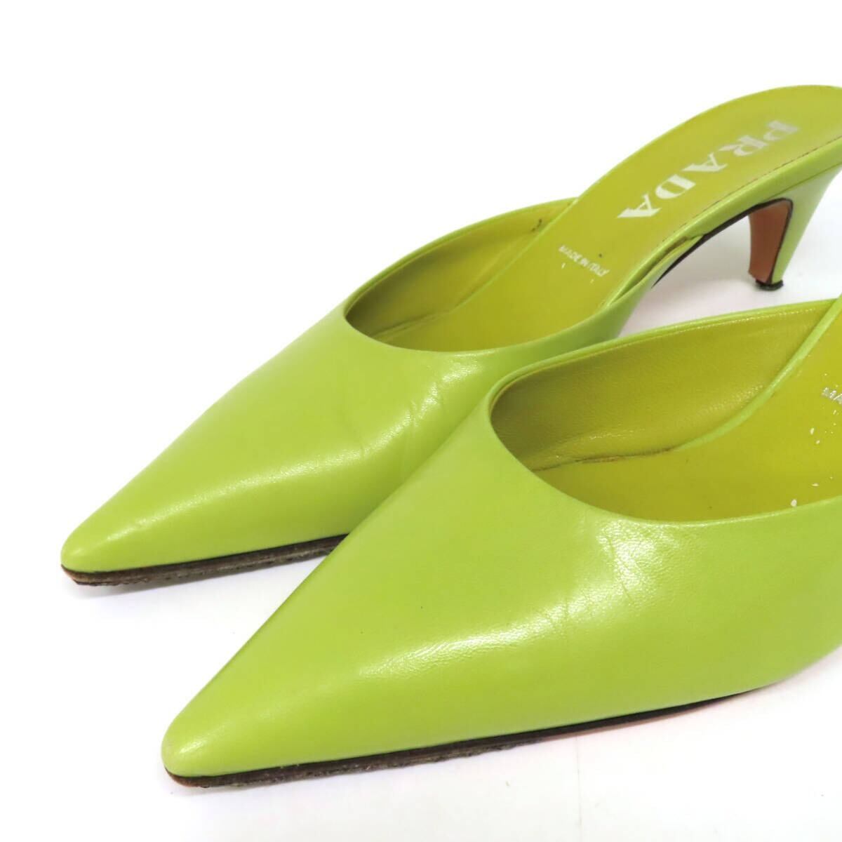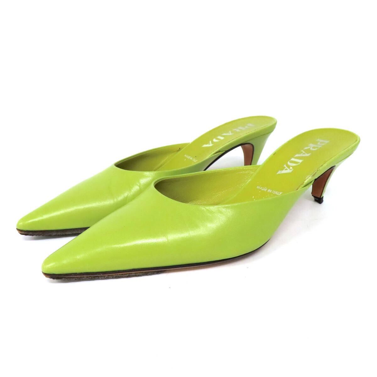 【美品】 PRADA プラダ ミュール サンダル ポインテッドトゥ レザー ヒール パンプス シューズ 靴 35.5 黄緑 イタリア製 レディース