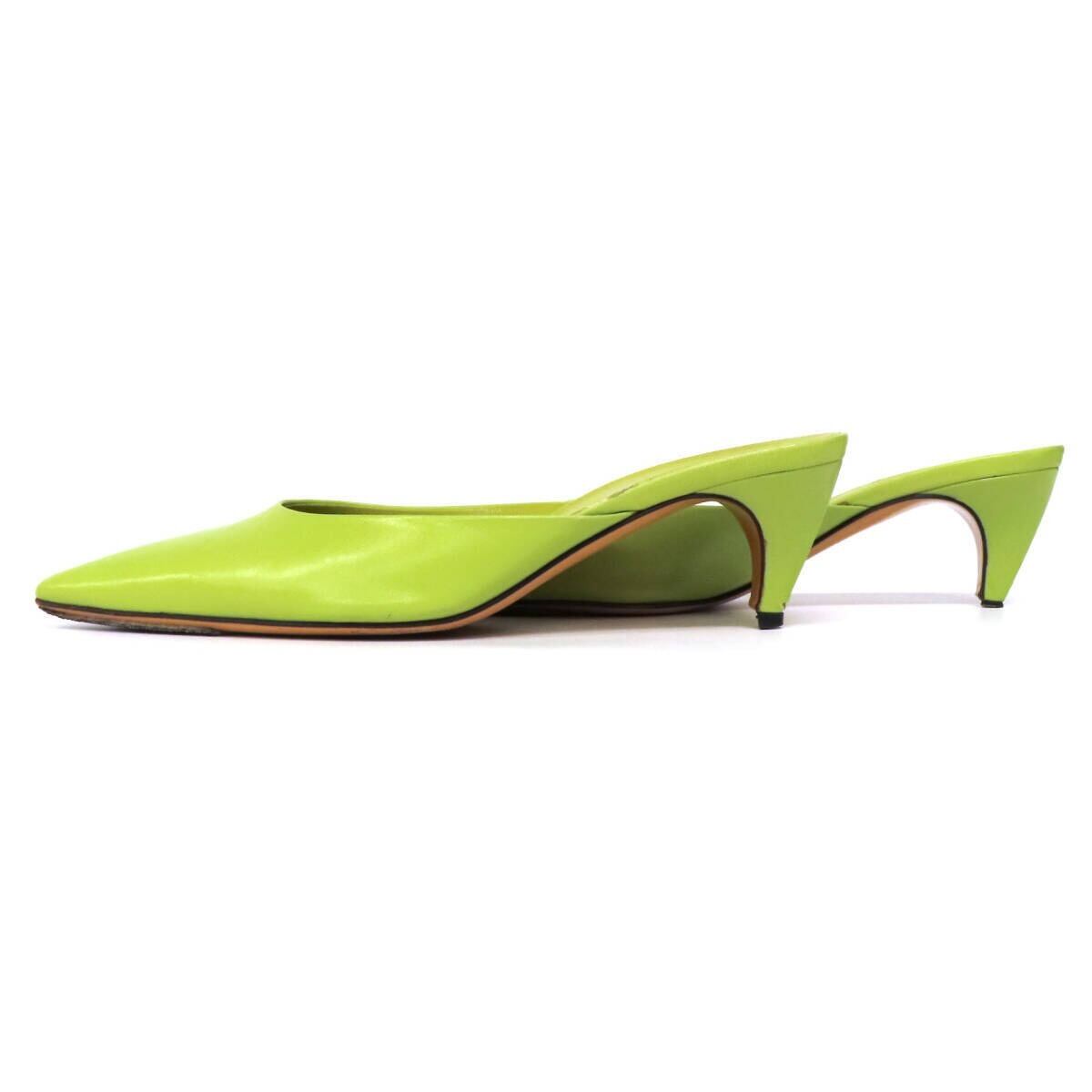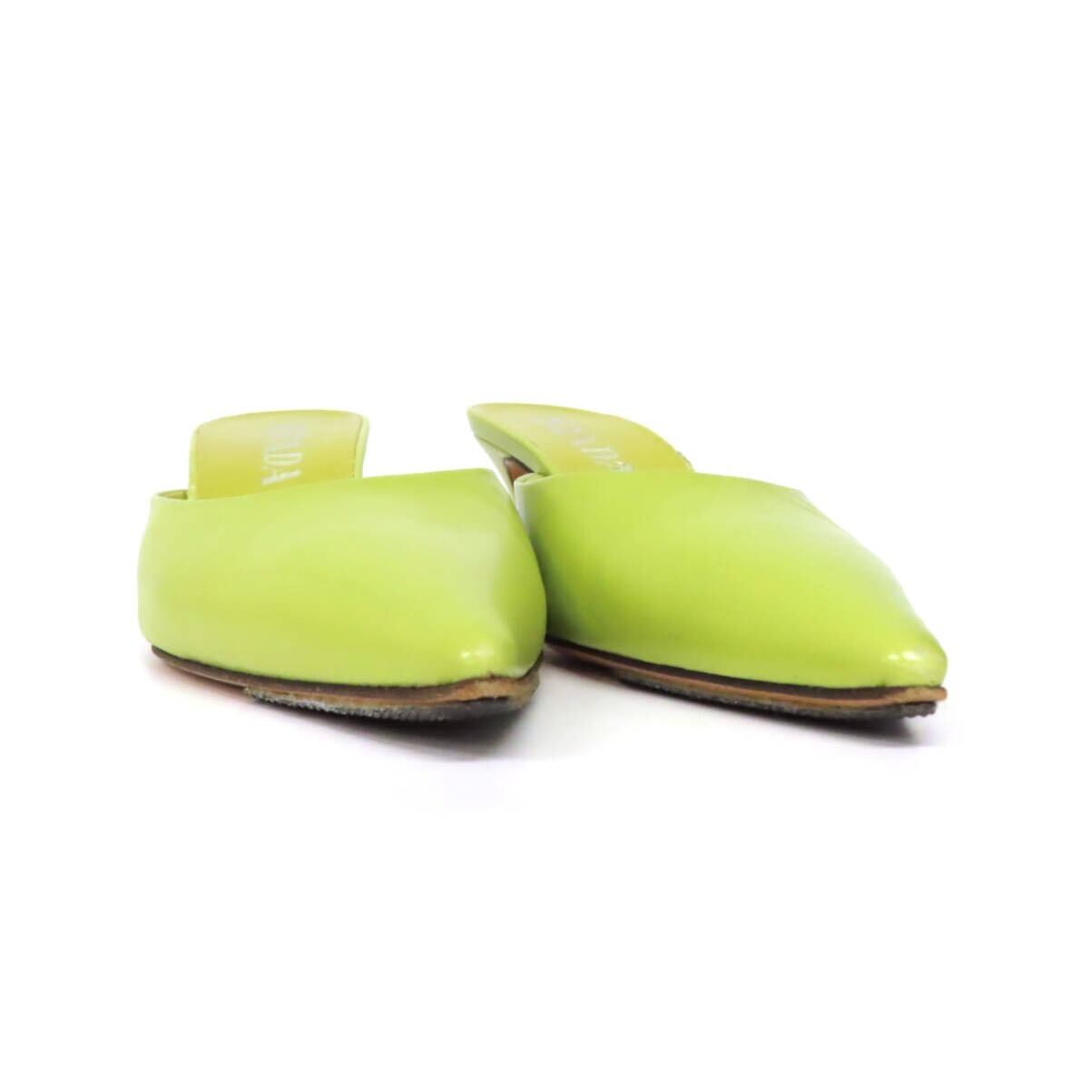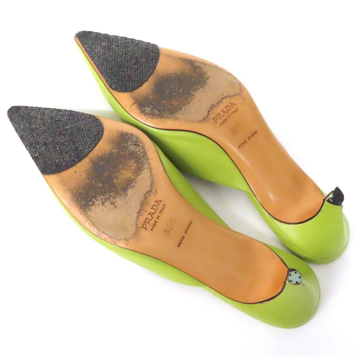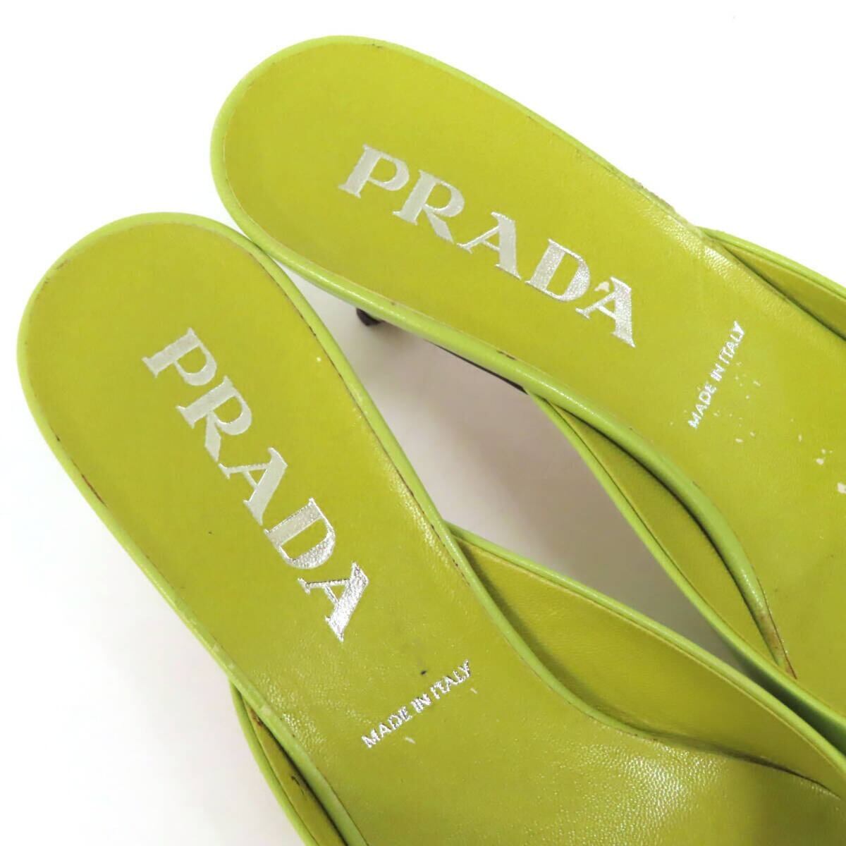 【美品】 PRADA プラダ ミュール サンダル ポインテッドトゥ レザー ヒール パンプス シューズ 靴 35.5 黄緑 イタリア製 レディース