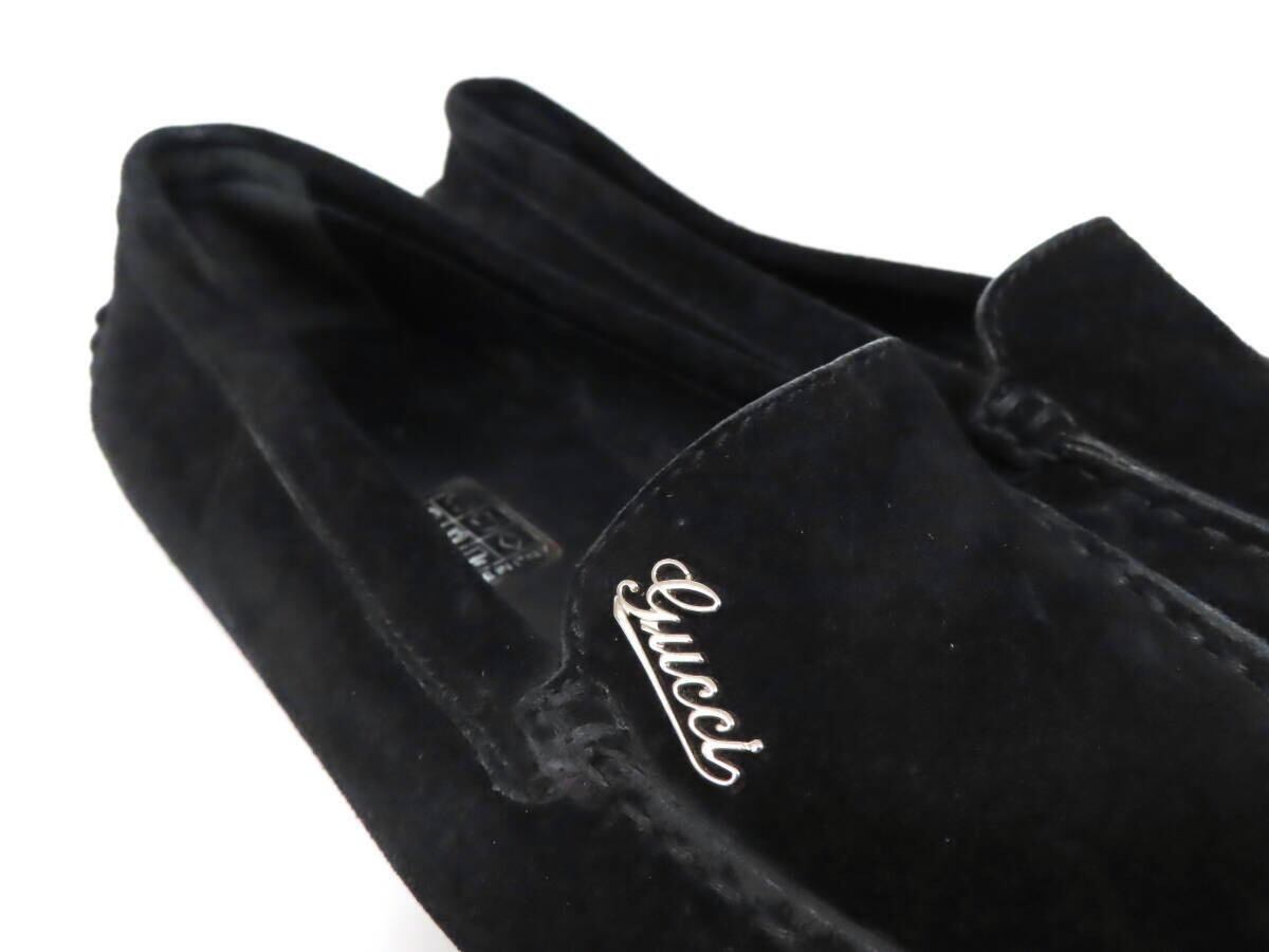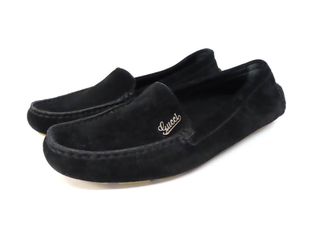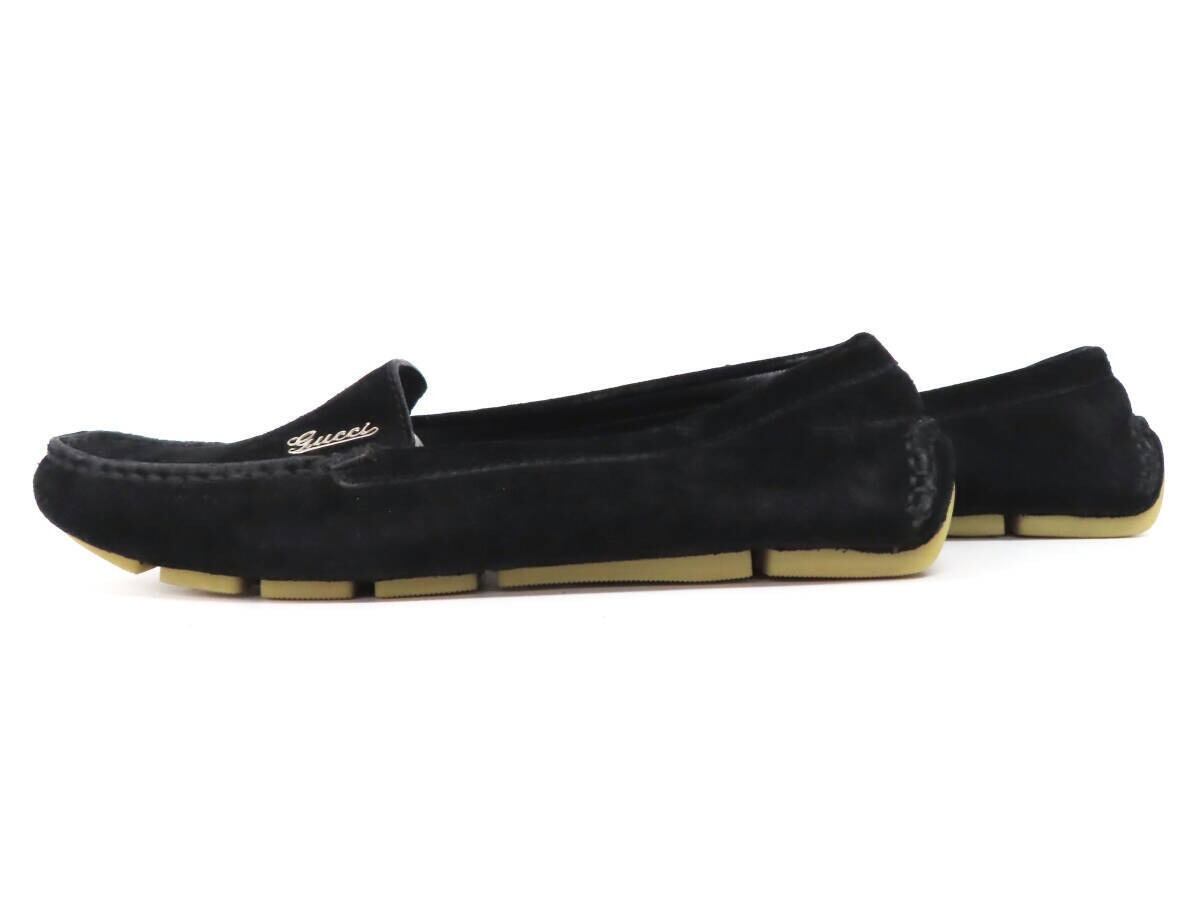 【美品】GUCCI グッチ ロゴ金具 スエード レザー ドライビングシューズ モカシン ローファー スリッポン シューズ size34 黒 イタリア製