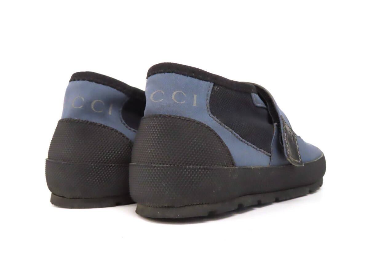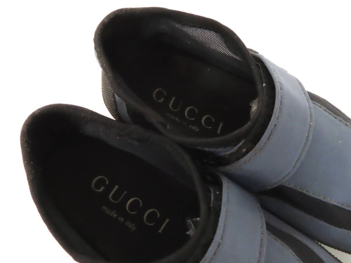 【美品】GUCCI グッチ ロゴ メッシュ ベルクロ バイカラー マリンシューズ スリッポン スニーカー 靴 36 グレー×ブラック イタリア製