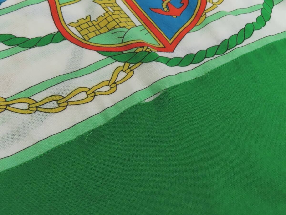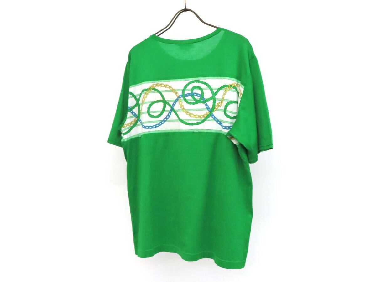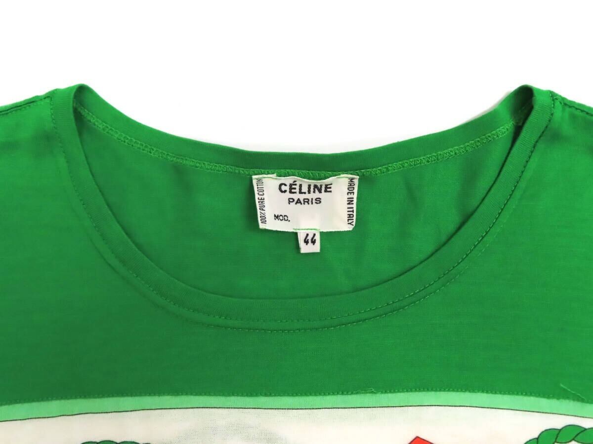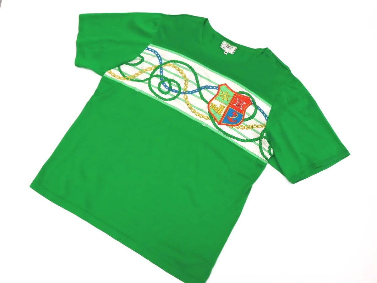 【美品】CELINE セリーヌ スカーフ柄×無地 切替 コットン 半袖 Uネック Tシャツ カットソー 44 緑 イタリア製 レディース ヴィンテージ