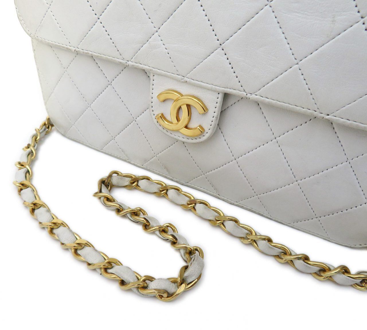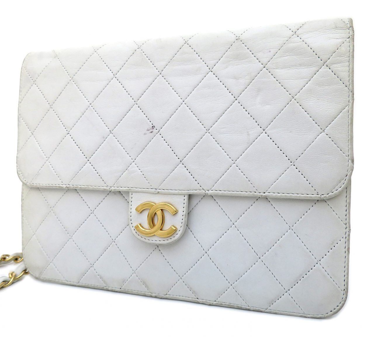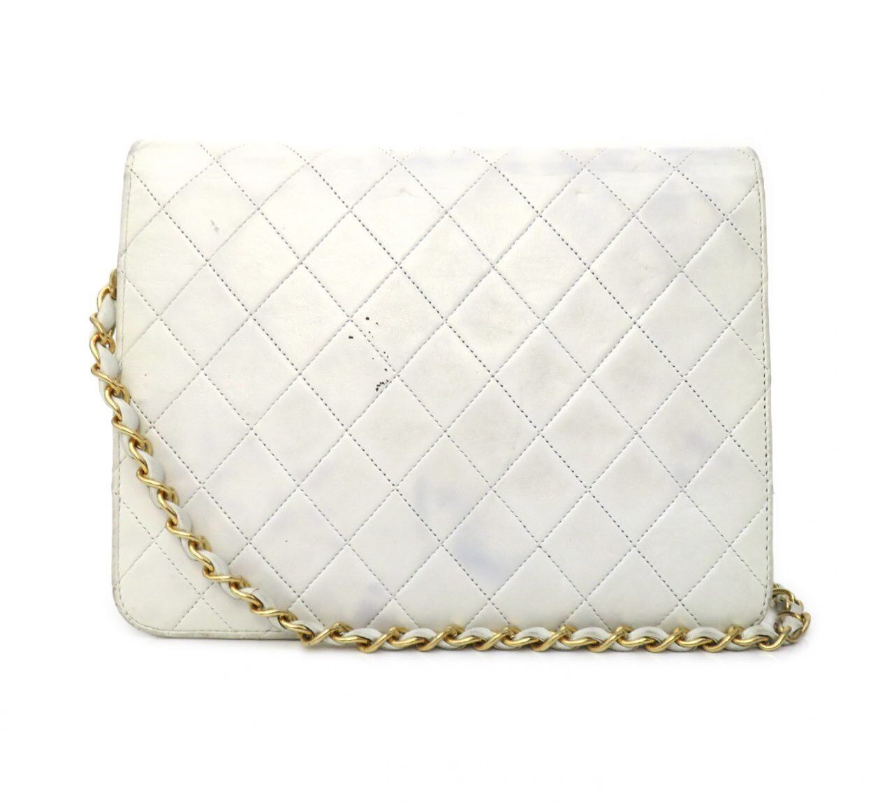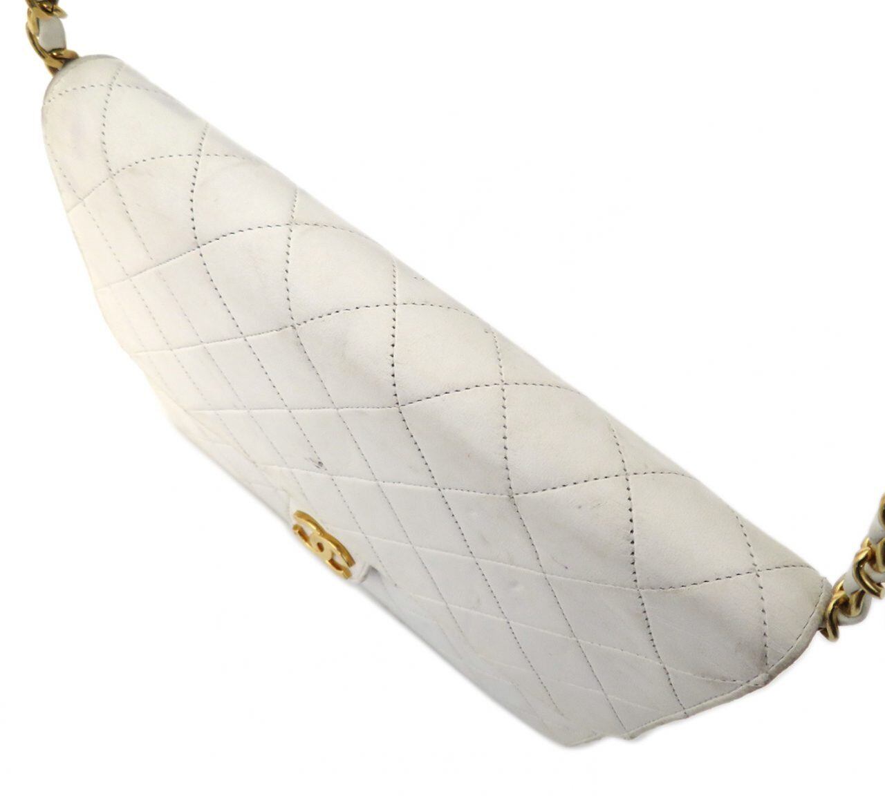 CHANEL / シャネル マトラッセ ココ金具 シングルフラップ チェーン ショルダーバッグ ホワイト