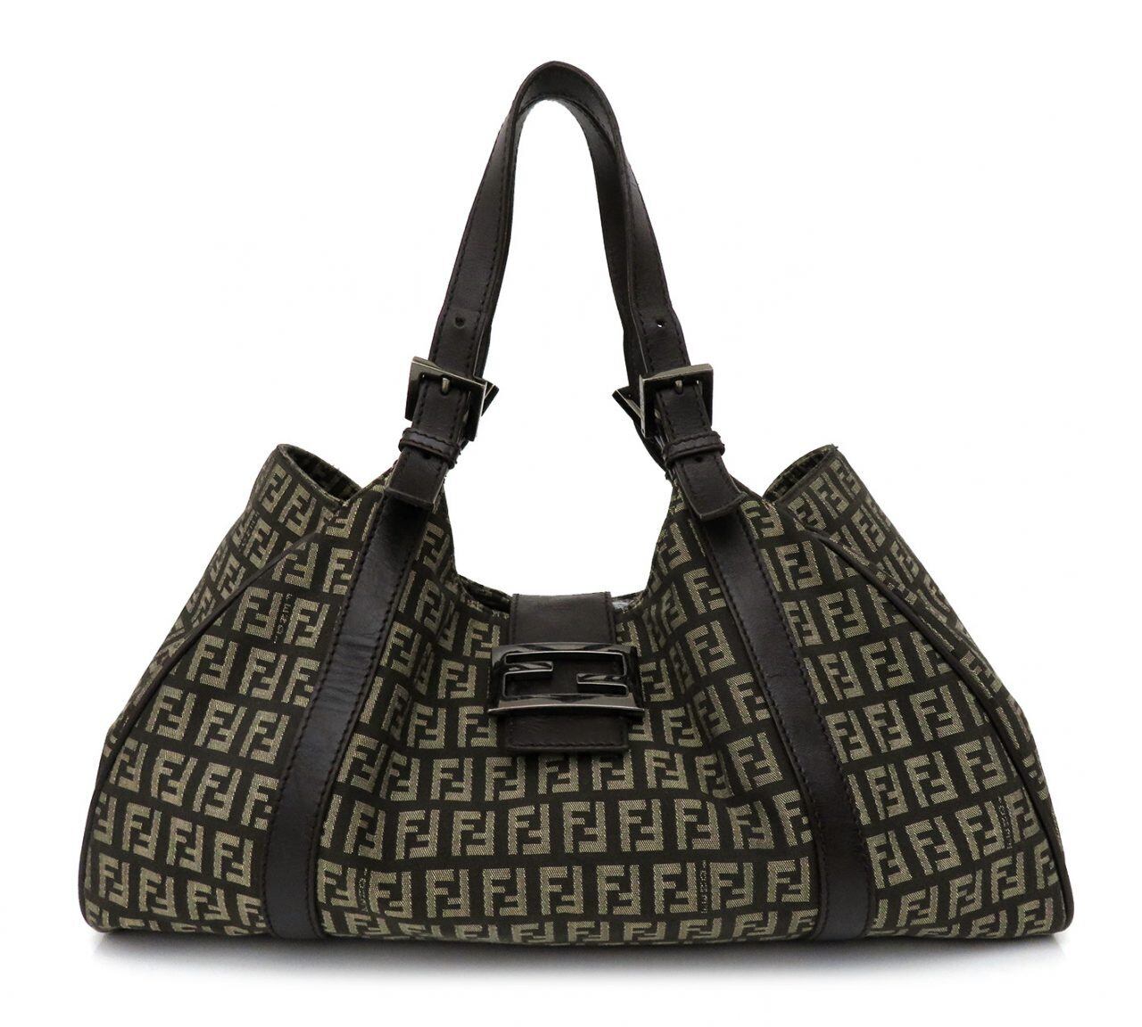 FENDI / フェンディ ズッキーニ柄 キャンバス×レザー ハンドバッグ 肩掛けショルダーバッグ