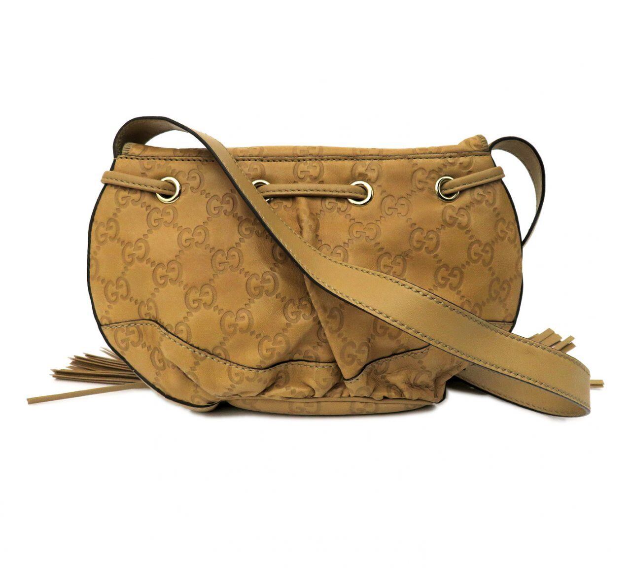 GUCCI / グッチ シマライン GG柄 巾着 ドローストリング タッセル レザー ショルダーバッグ