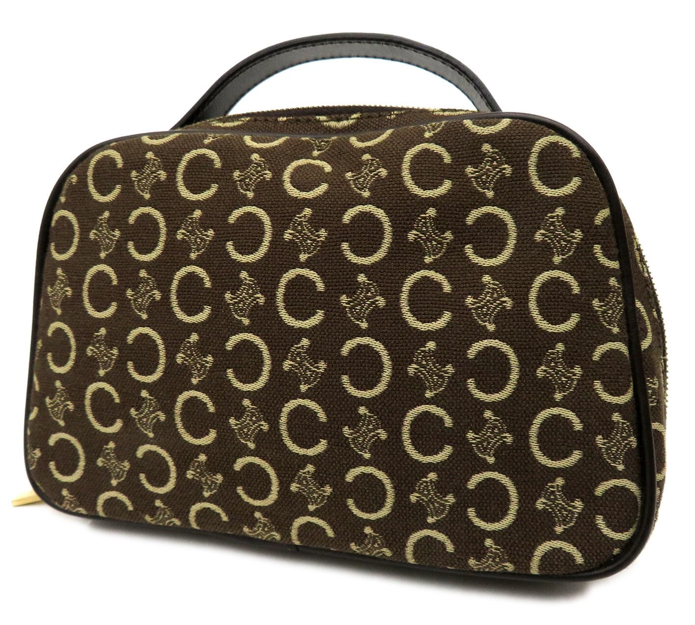 CELINE / セリーヌ Cマカダム柄 キャンバス×レザー バニティバッグ 化粧ポーチ コスメポーチ ハンドバッグ