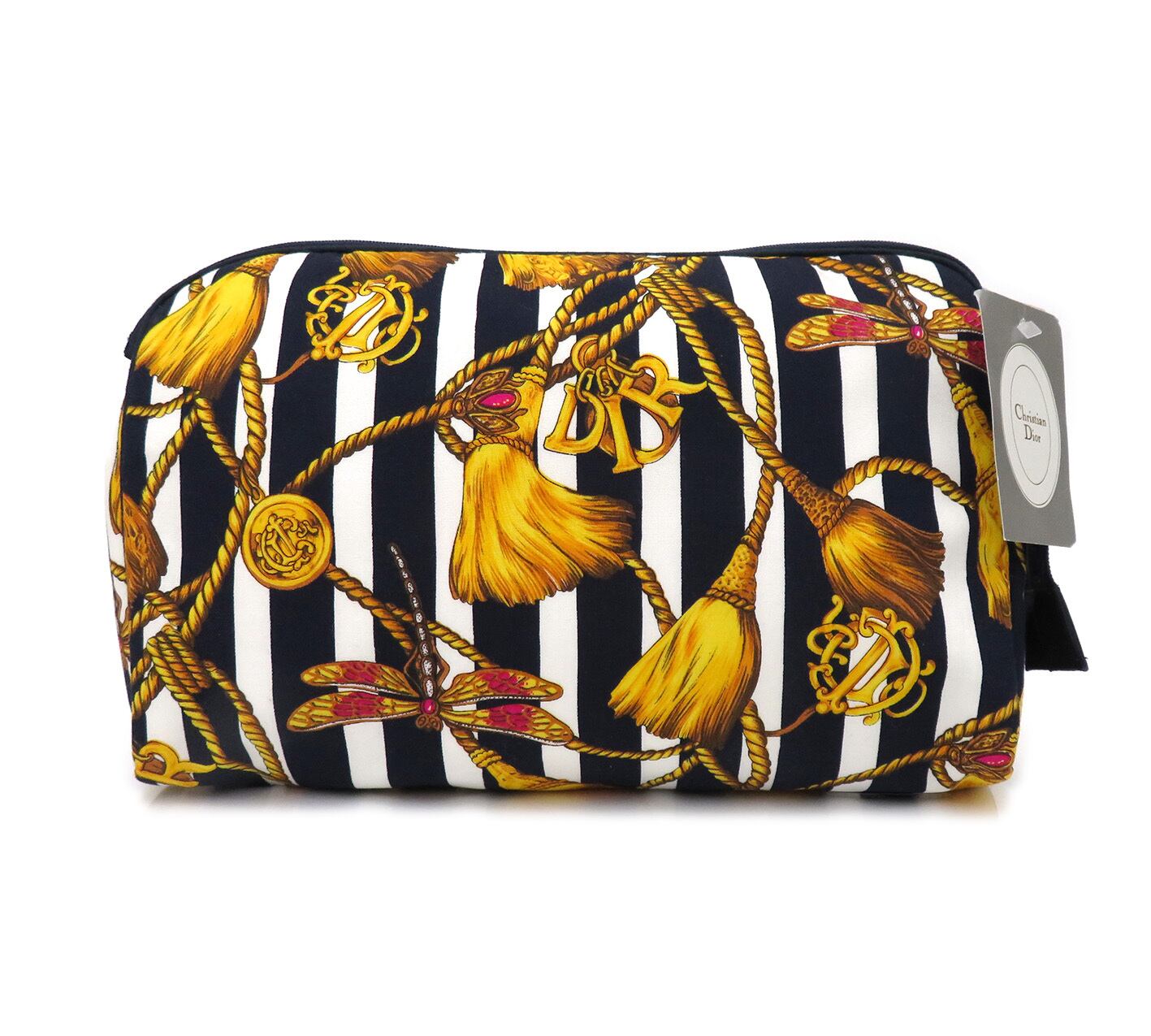 Christian Dior / クリスチャンディオール ストライプ スカーフ 柄 ファブリック ポーチ 化粧ポーチ コスメポーチ