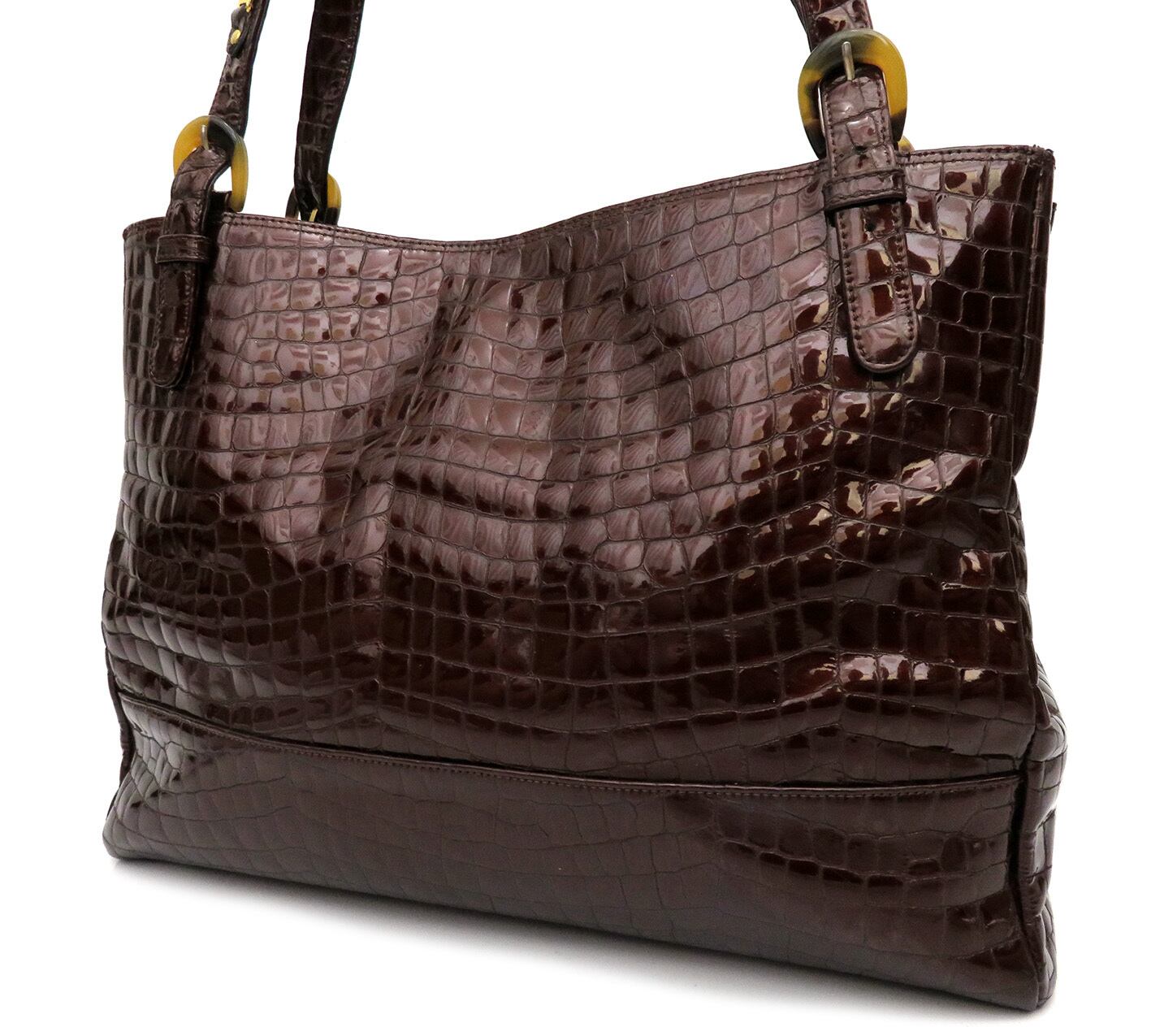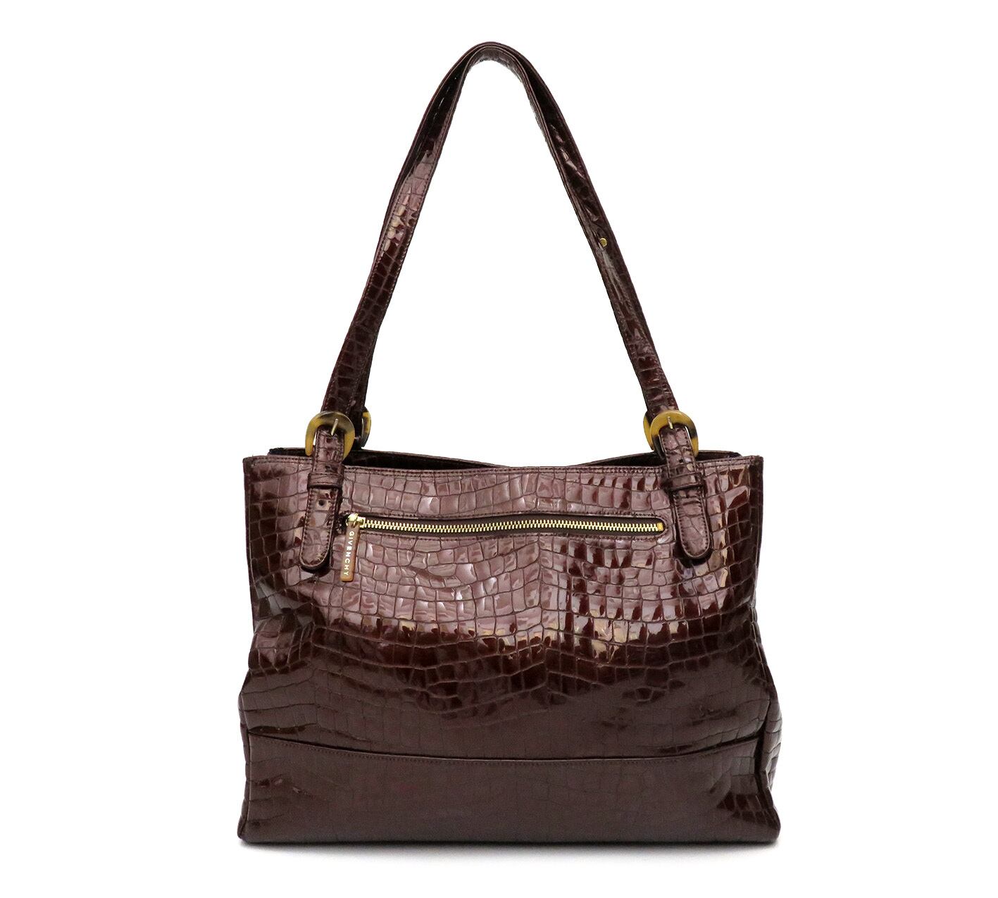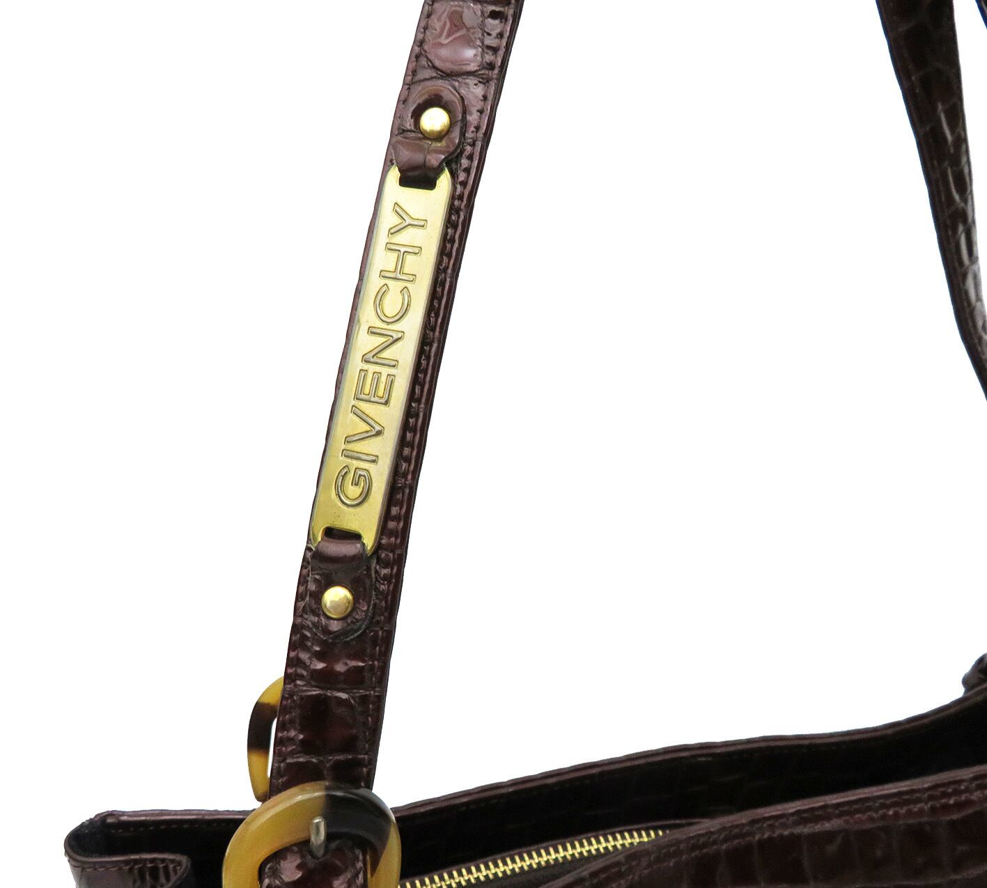 GIVENCHY / ジバンシィ ロゴ プレート クロコ型押し 本革 パテントレザー エナメル ト肩掛け トートバッグ ショルダーバッグ