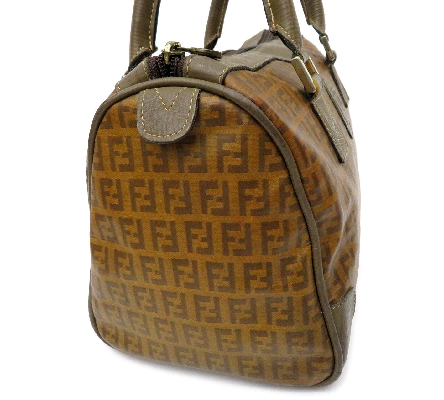 FENDI / フェンディ ズッキーニ柄 PVC×レザー ミニボストンバッグ ハンドバッグ
