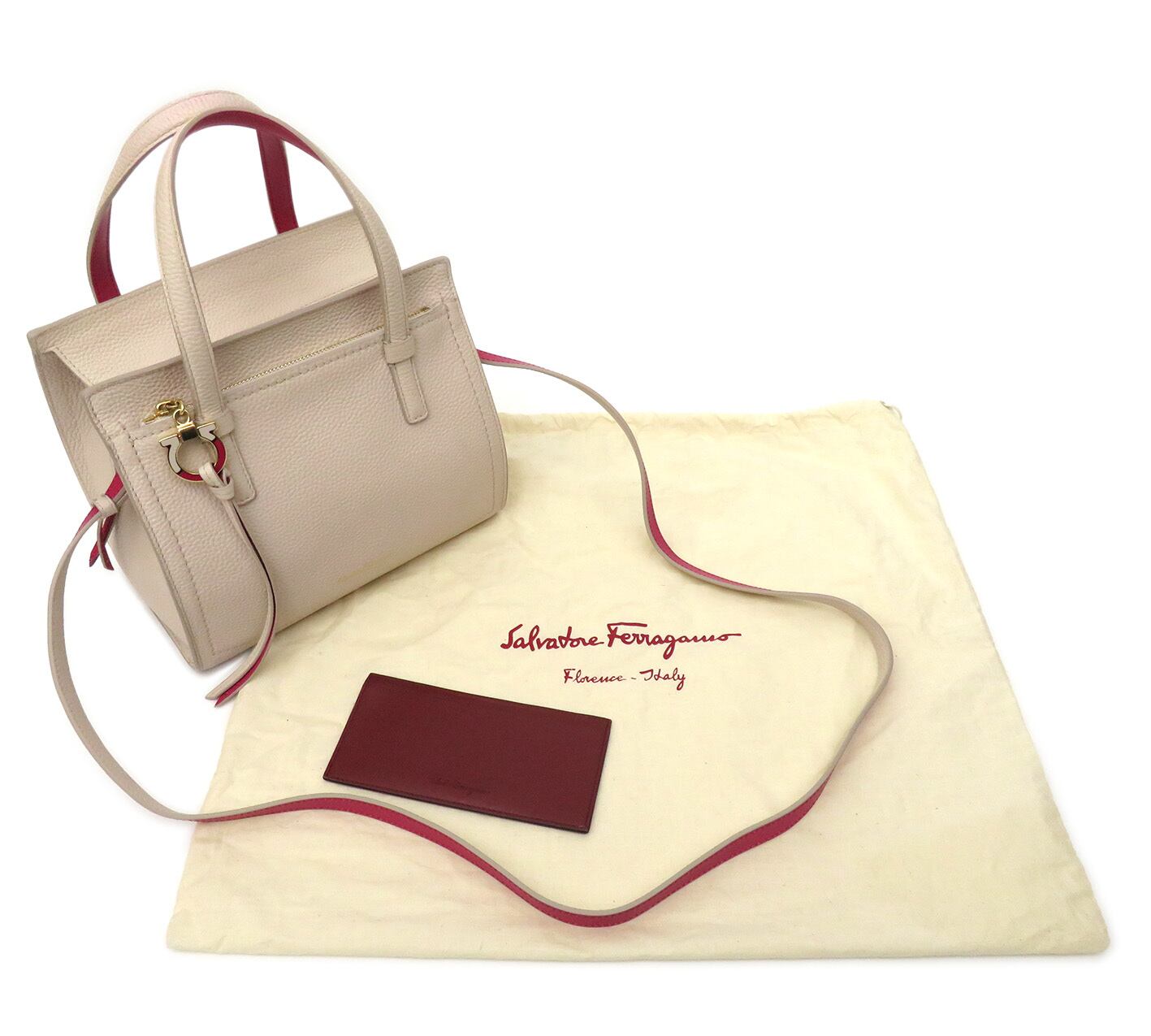 Salvatore Ferragamo / サルヴァトーレフェラガモ 本革 レザー ガンチーニ ファスナー 2WAY ハンドバッグ トートバッグ ショルダーバッグ カードケース付き