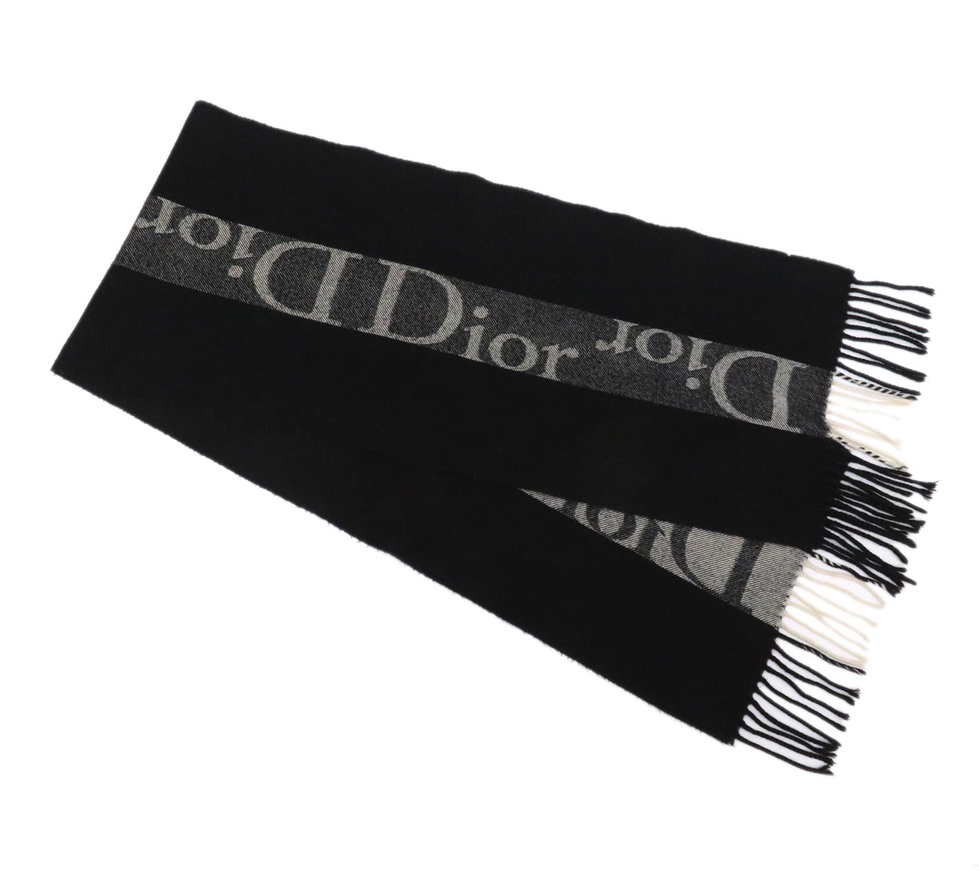 Christian Dior / クリスチャンディオール ロゴ ライン フリンジ ウール マフラー