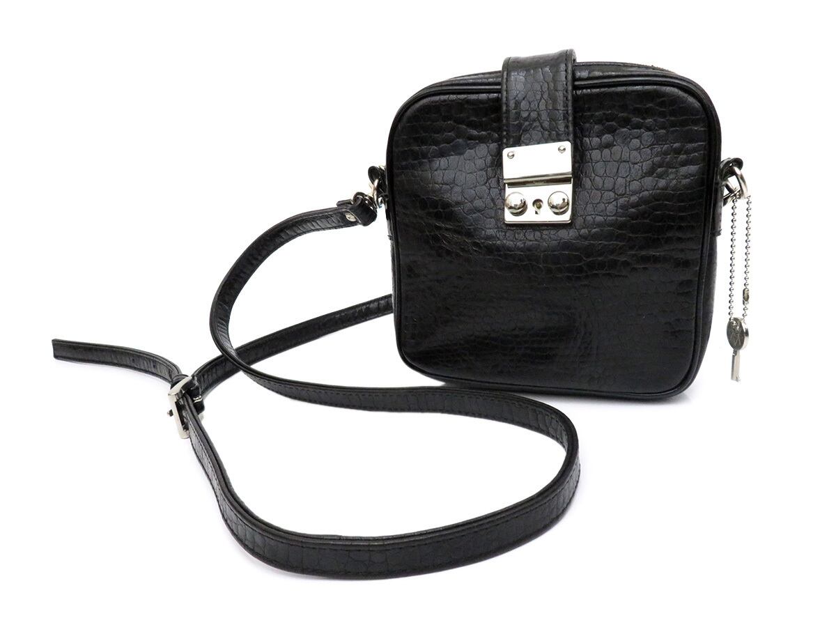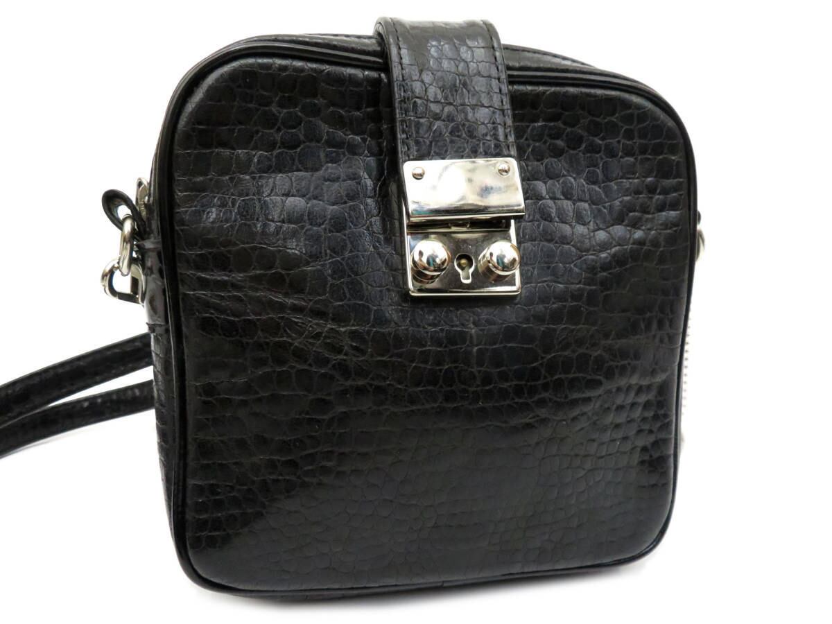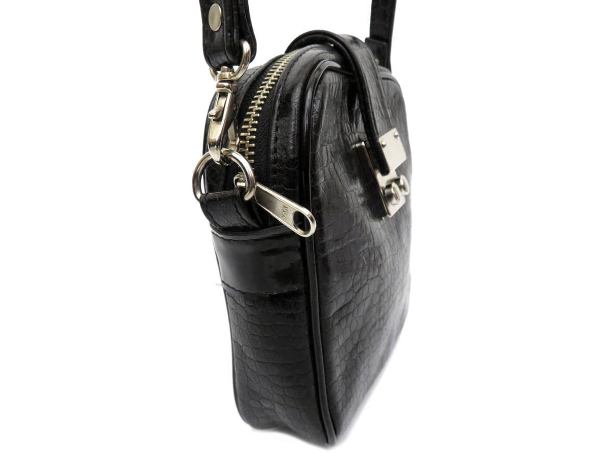 美品 JUNYA WATANABE COMMEdesGARCONS ジュンヤワタナベコムデギャルソン クロコ型押し レザー ショルダーバッグ 黒 ブラック 日本製