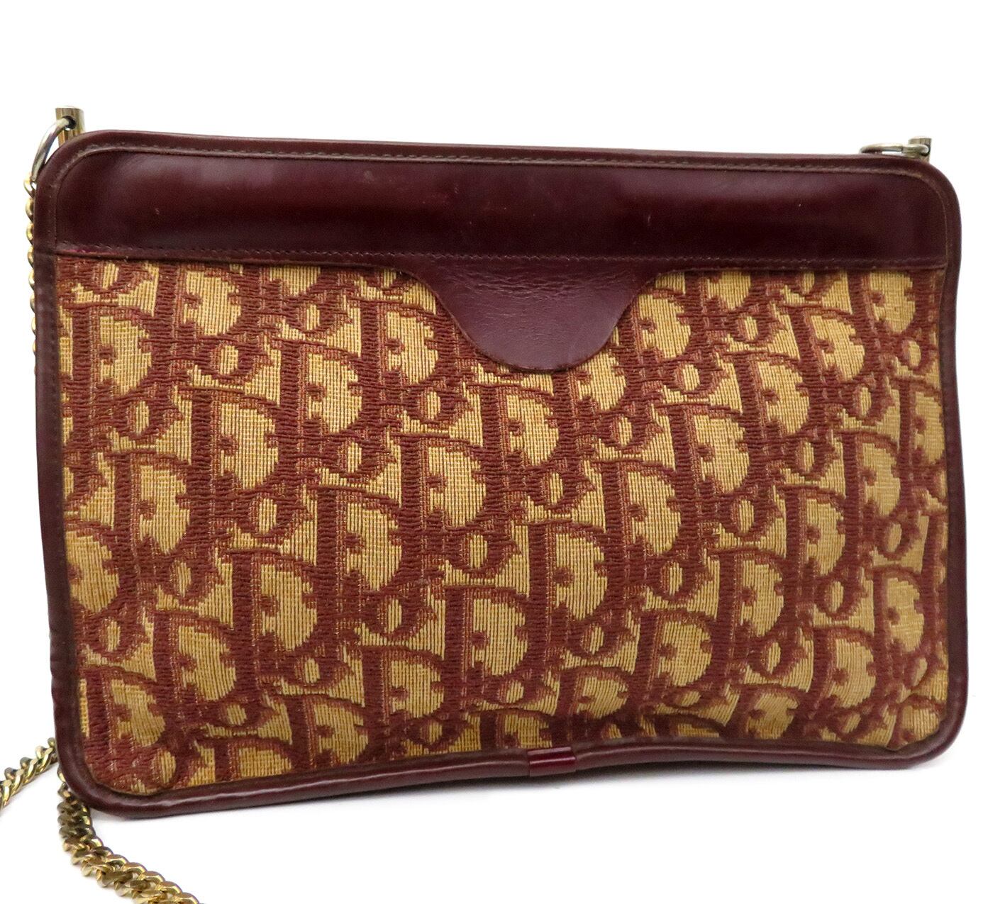 Christian Dior クリスチャンディオール トロッター 総柄 キャンバス×レザー チェーン ショルダーバッグ