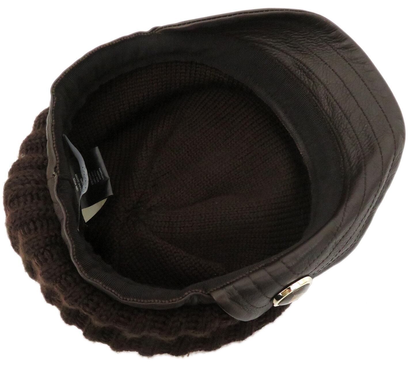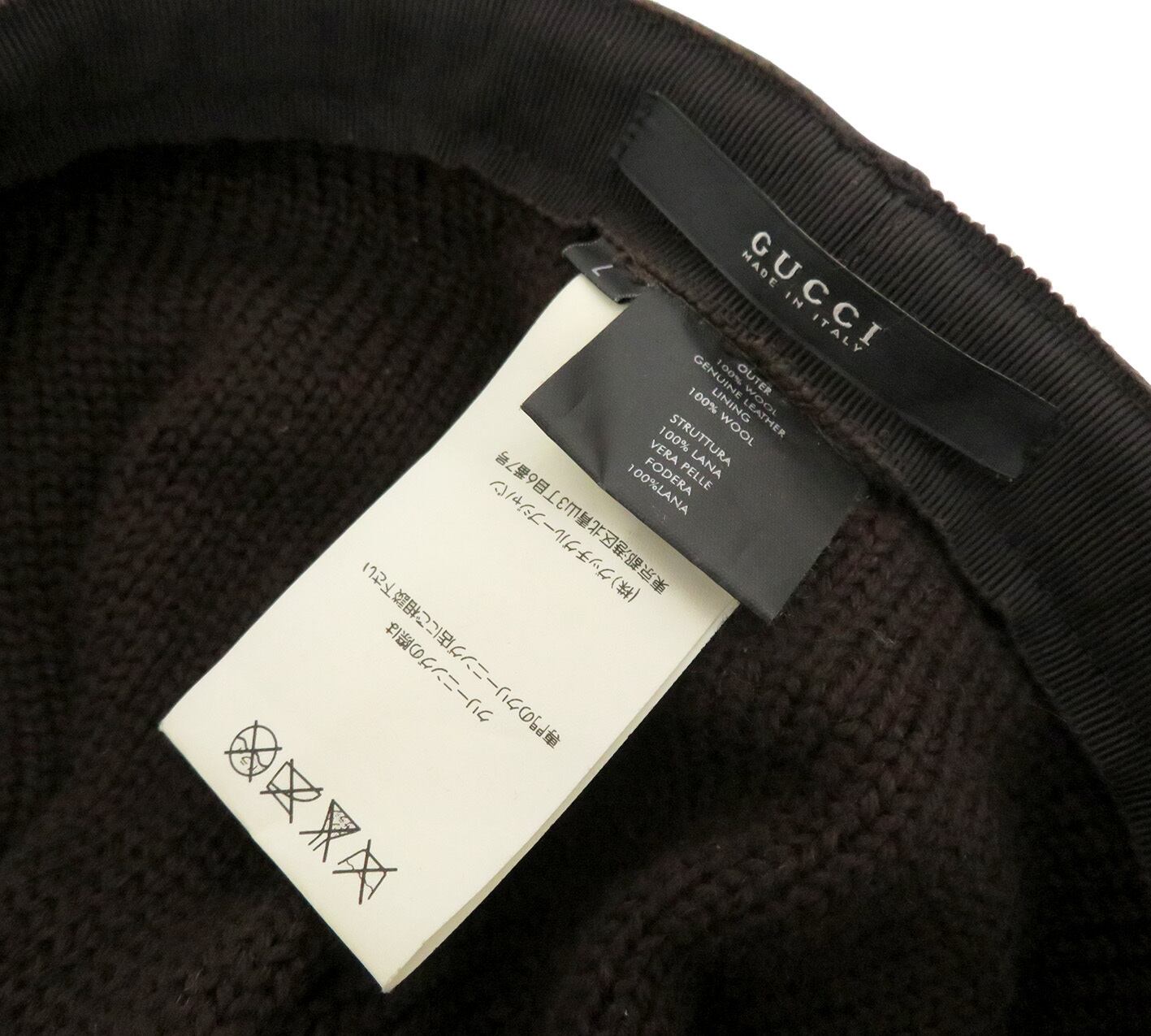 GUCCI グッチ ニット×レザー キャスケット ハンチング帽 帽子 ハット