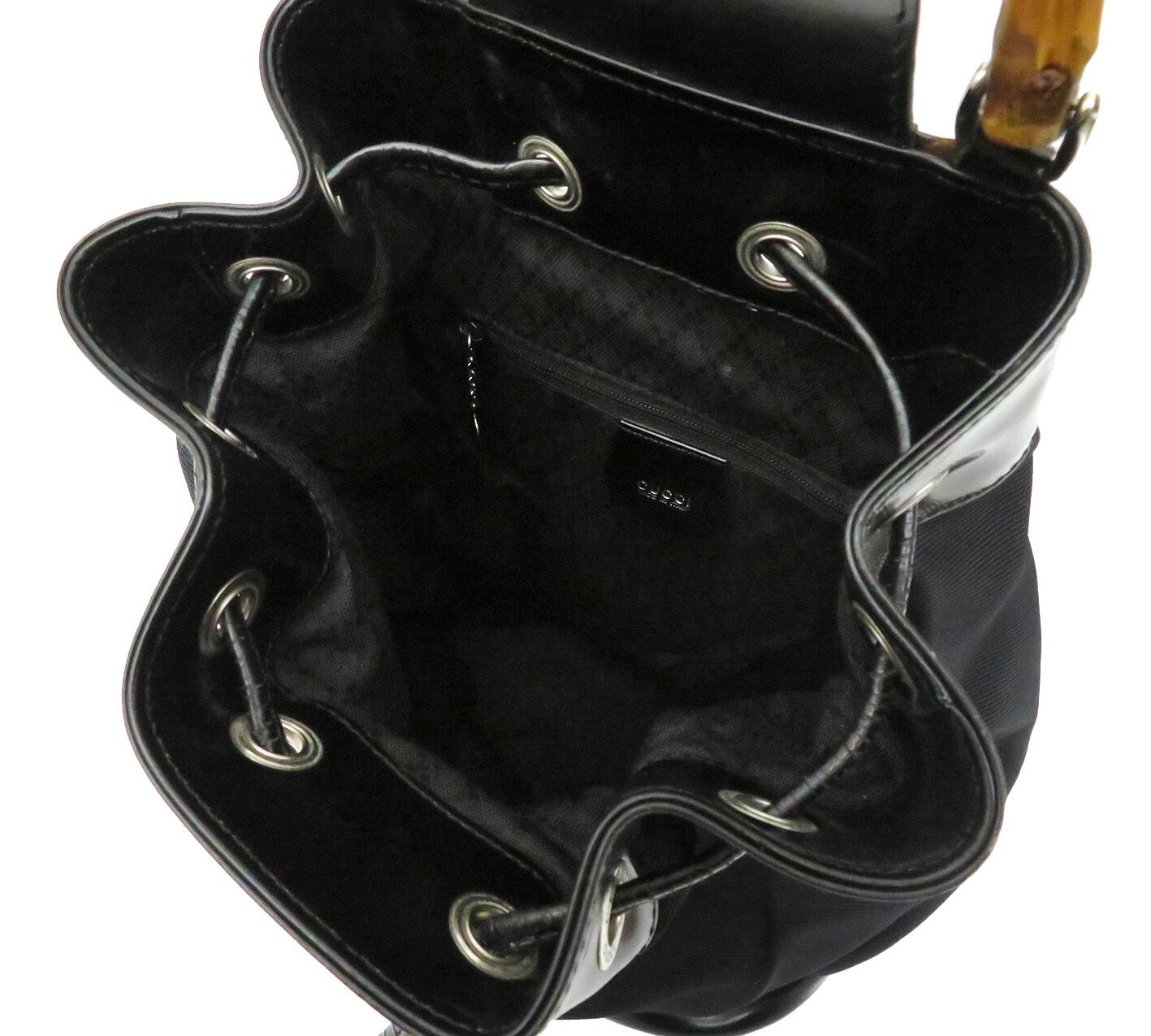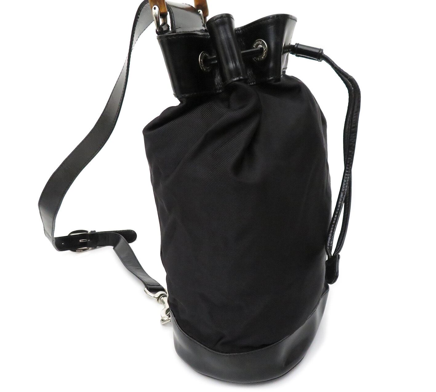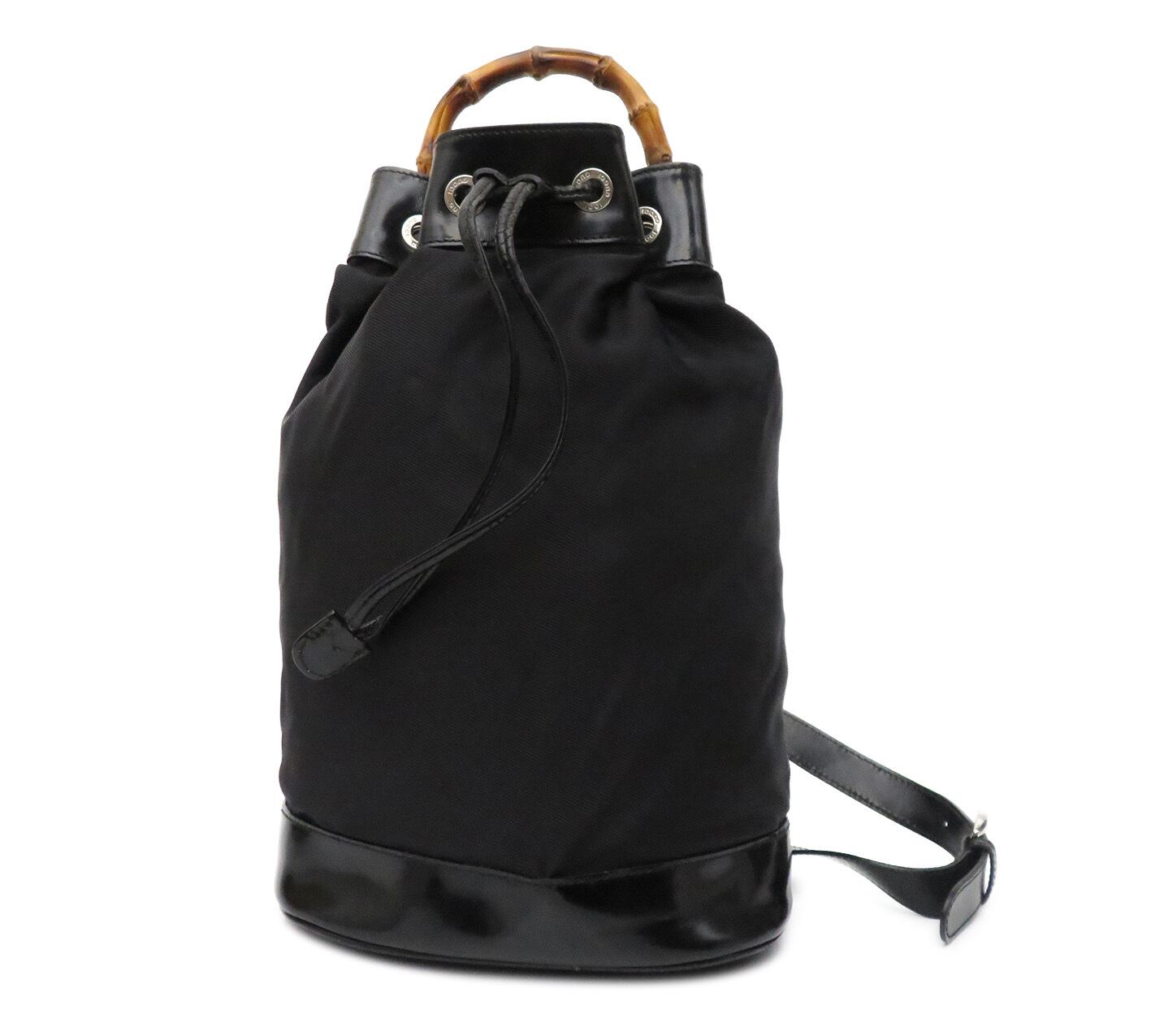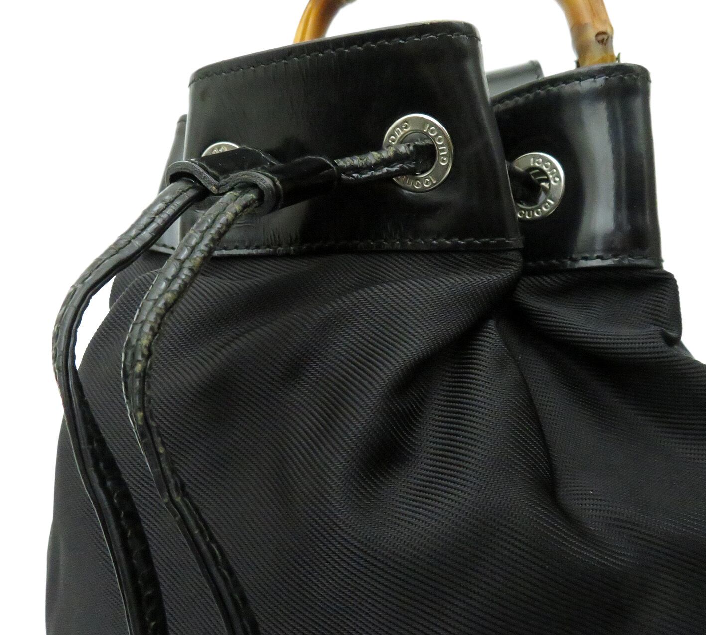 GUCCI / グッチ バンブー ナイロン×エナメルレザー 巾着 ワンショルダー リュックサック ボディバッグ