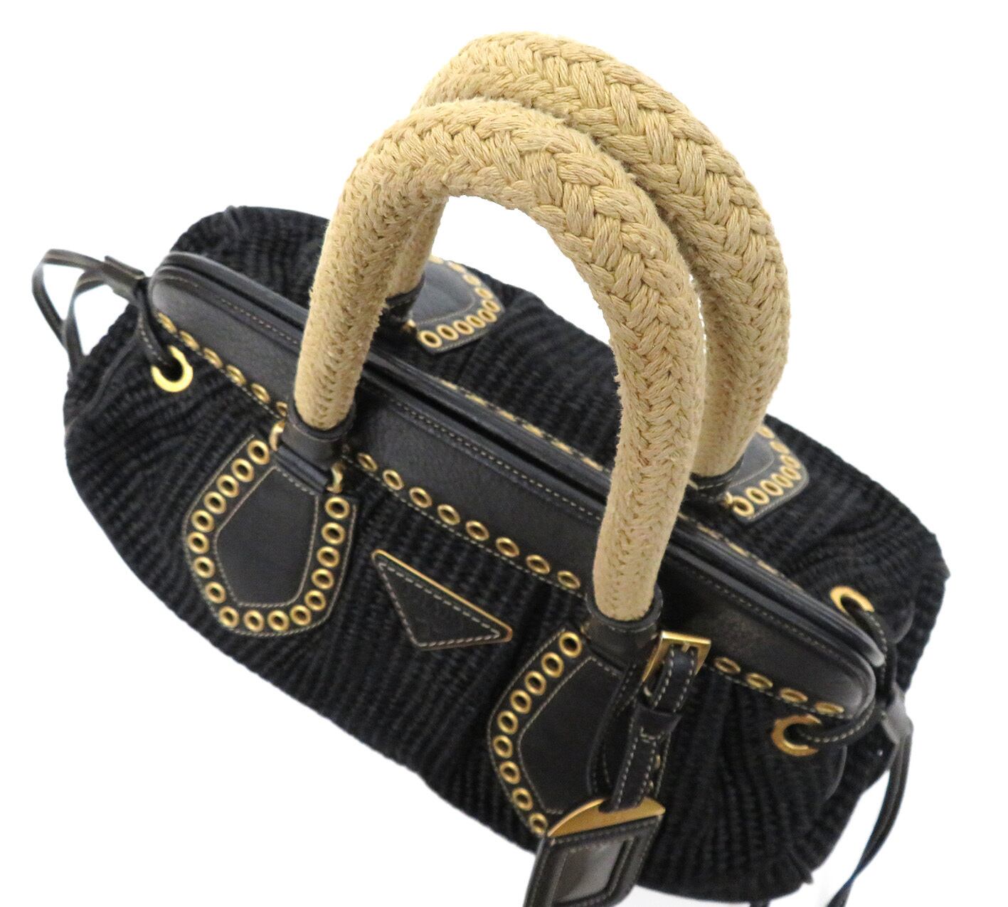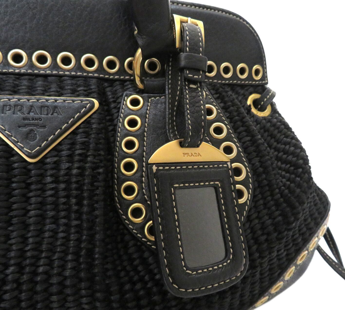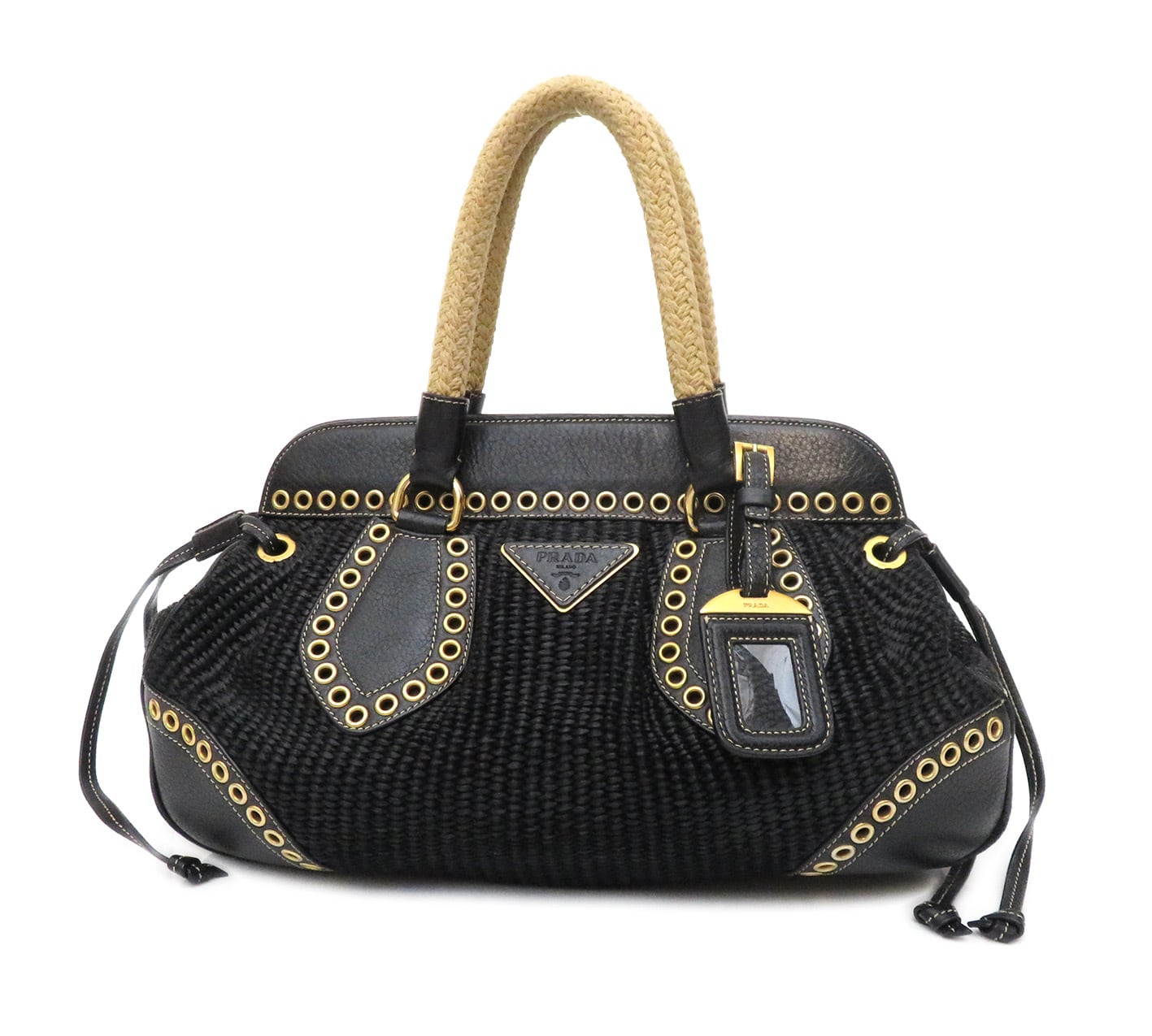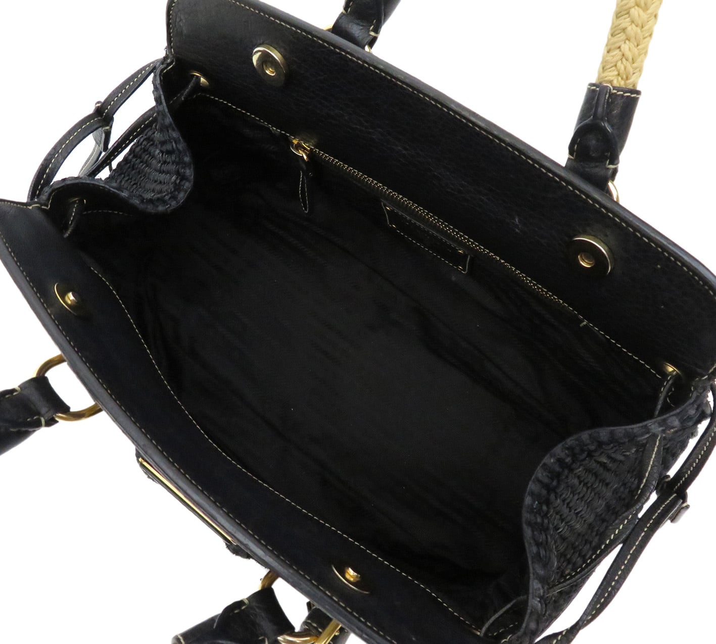 PRADA / プラダ ストロー×レザー メッシュ 編み かご トートバッグ ハンドバッグ