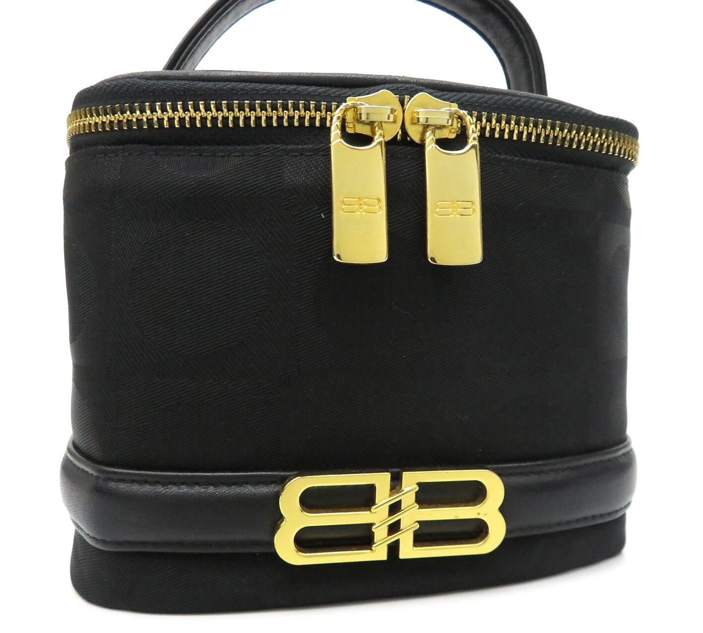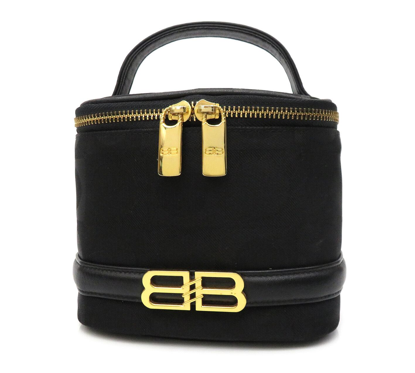 BALENCIAGA / バレンシアガ BB金具 総柄 ナイロン×レザー バニティバッグ ハンドバッグ コスメポーチ