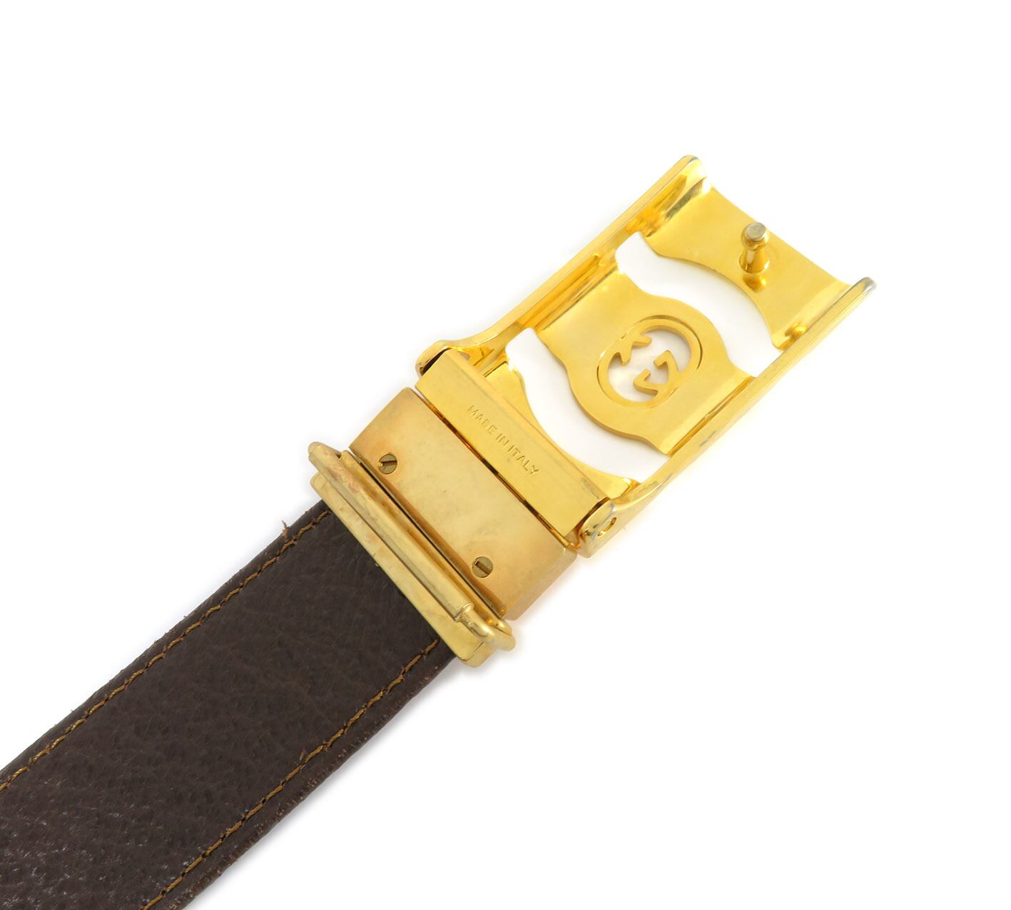 GUCCI / グッチ シェリーライン インターロッキング バックル キャンバス×レザー ベルト