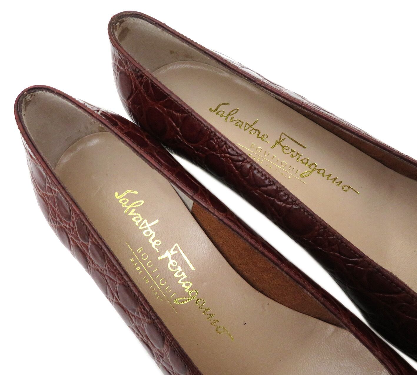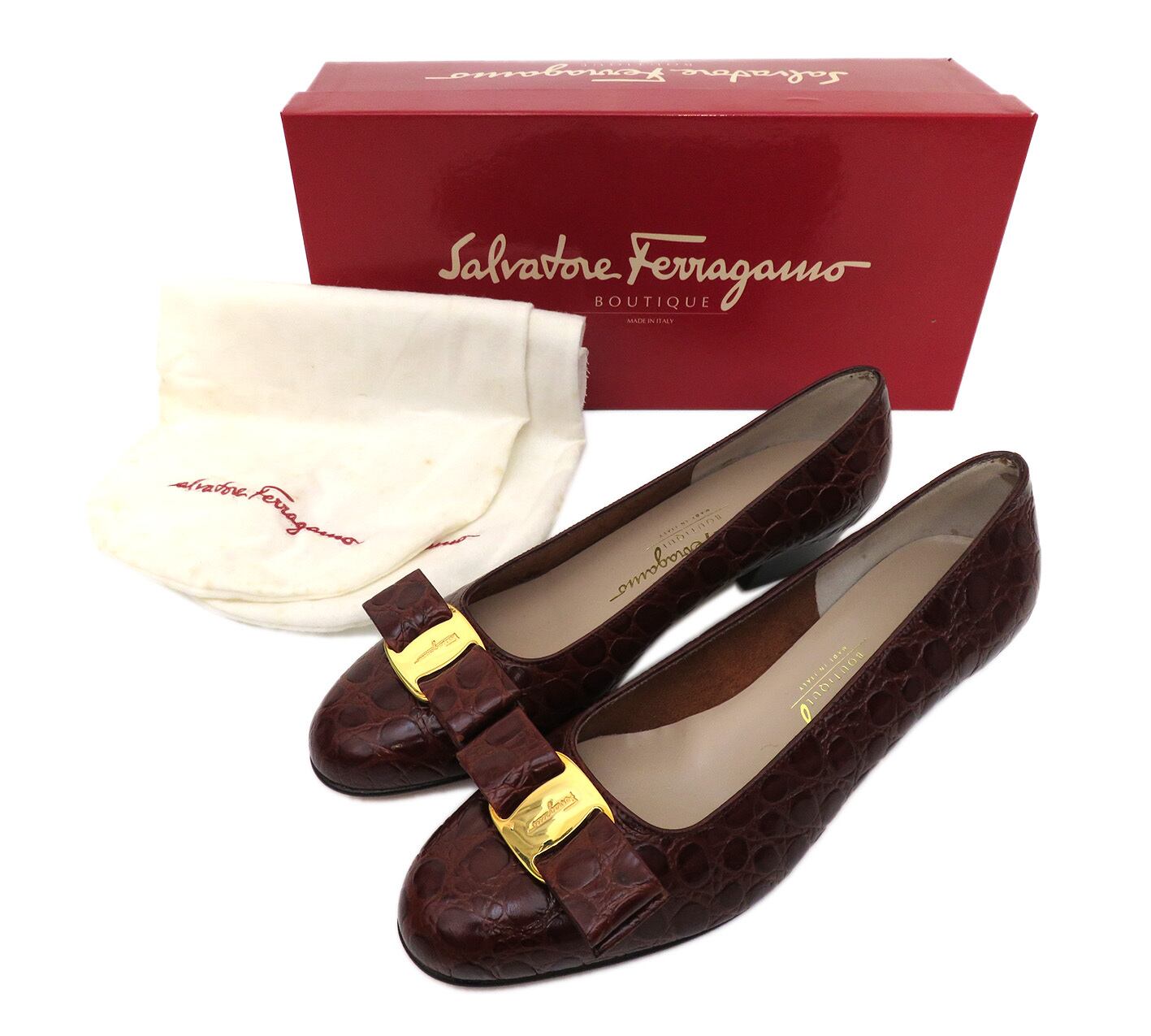 Salvatore Ferragamo / サルヴァトーレフェラガモ ヴァラ リボン クロコ型押し カーフスキン レザー パンプス