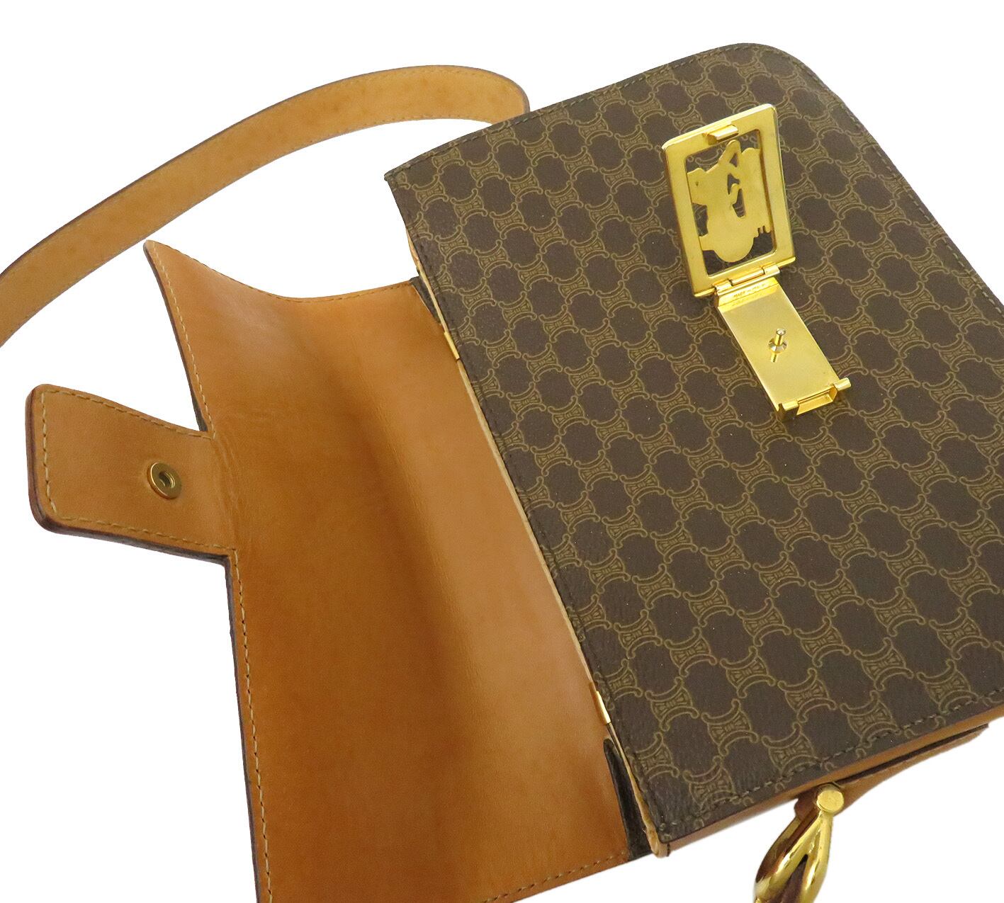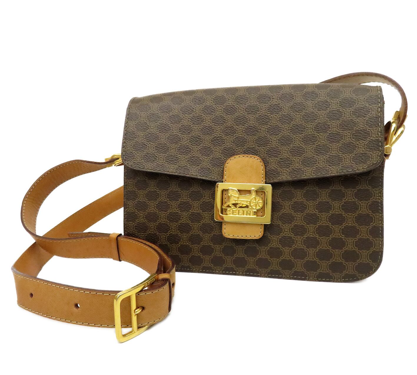 CELINE / セリーヌ マカダム柄 馬車金具 PVC×レザー ショルダーバッグ