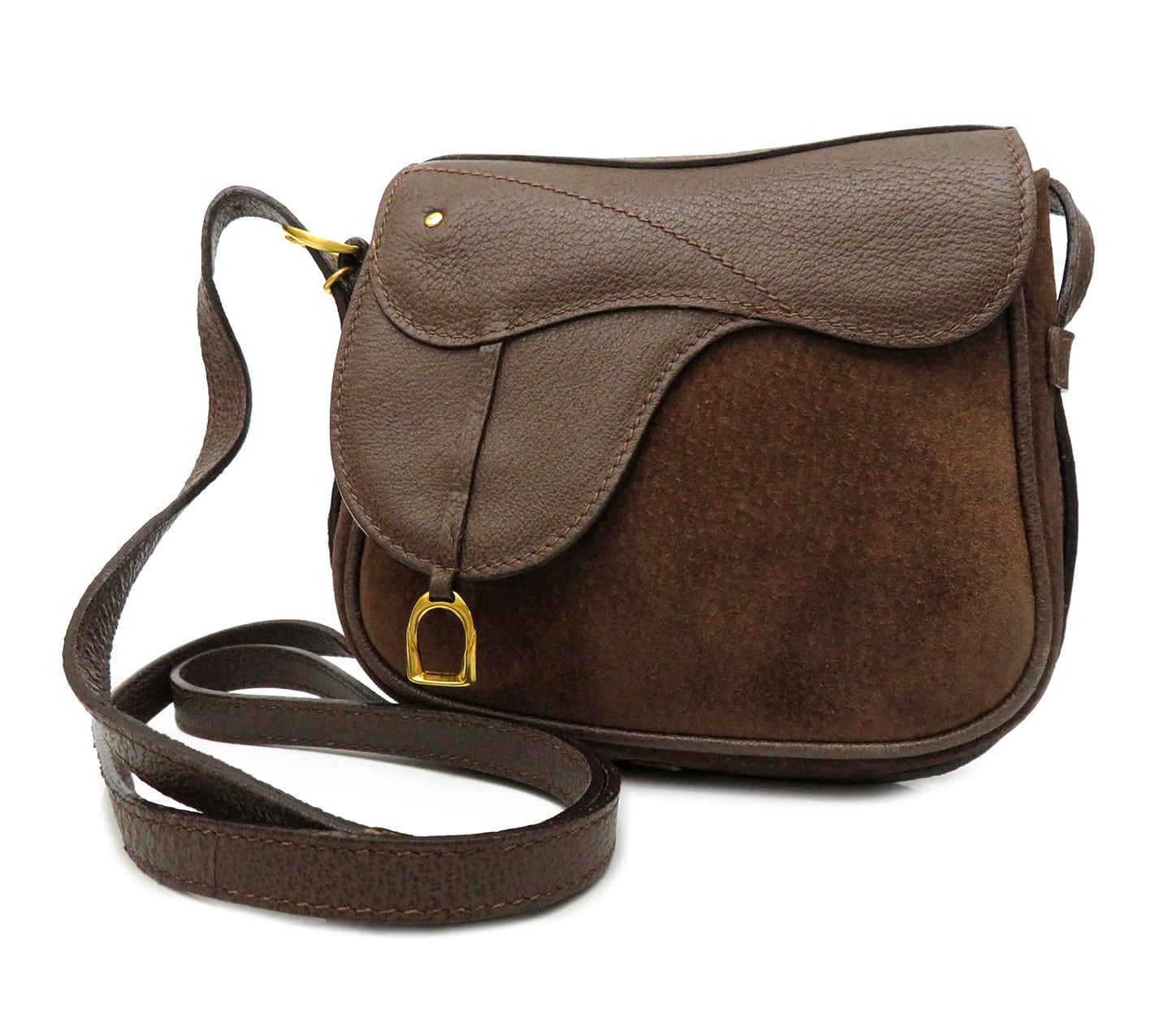 GUCCI / グッチ 本革 レザー×スエード 斜め掛け クロスボディ サドル型 ショルダーバッグ