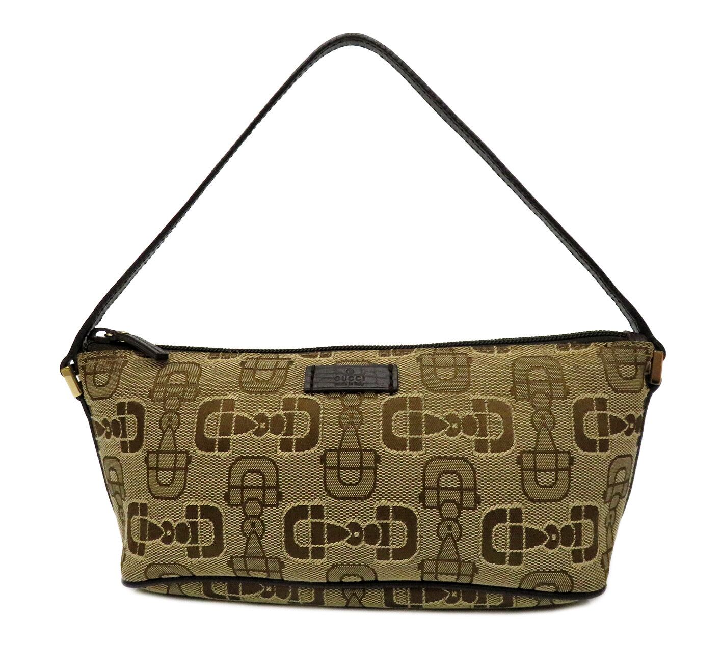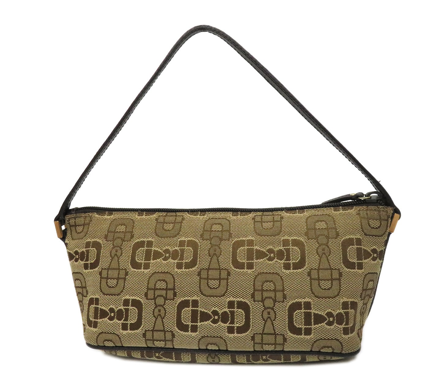 GUCCI / グッチ ホースビット柄 キャンバス×レザー アクセサリーポーチ ハンドバッグ ショルダーバッグ