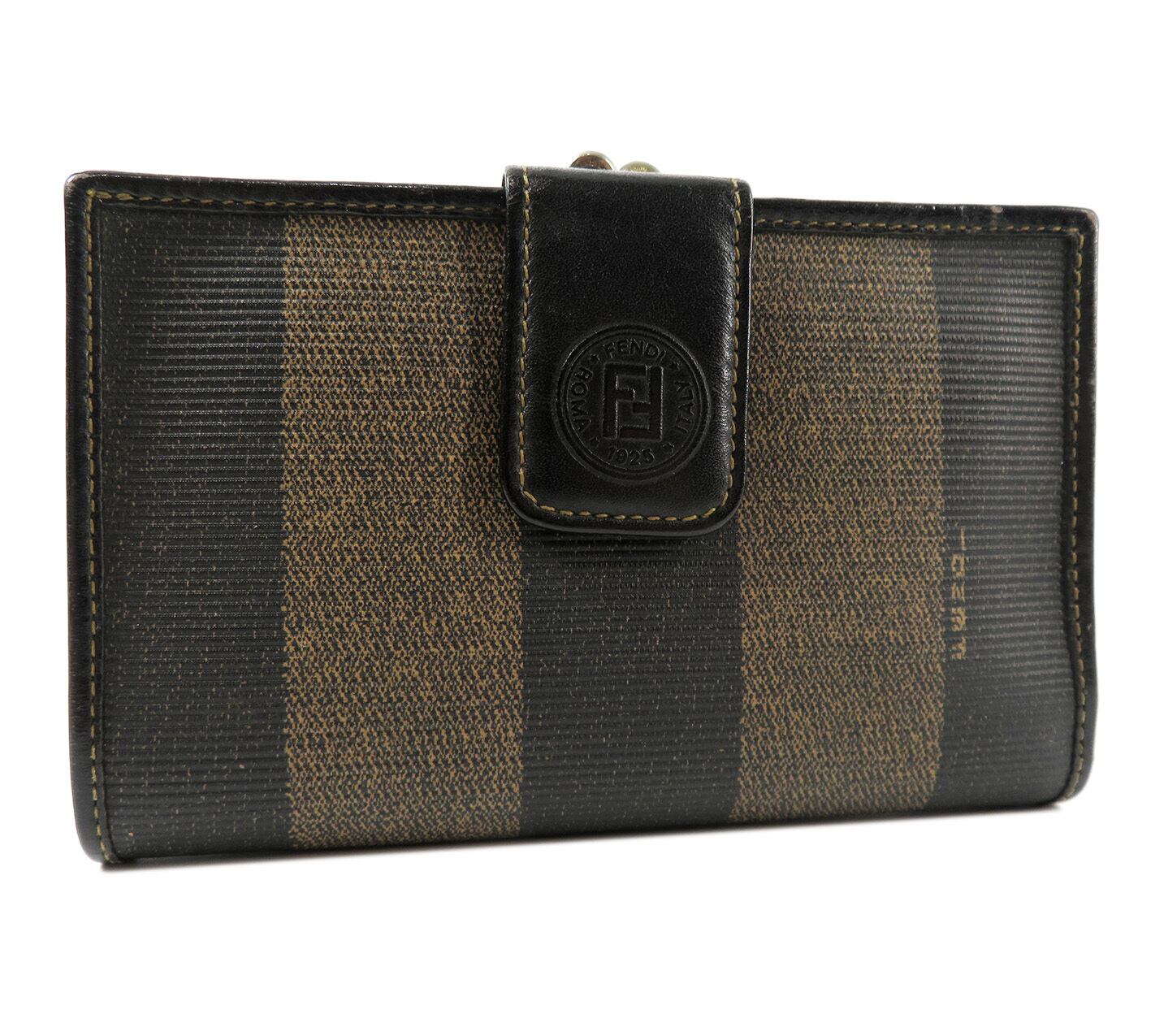 FENDI / フェンディ ペカン柄 PVC×レザー がま口小銭入れ 二つ折り財布 ウォレット