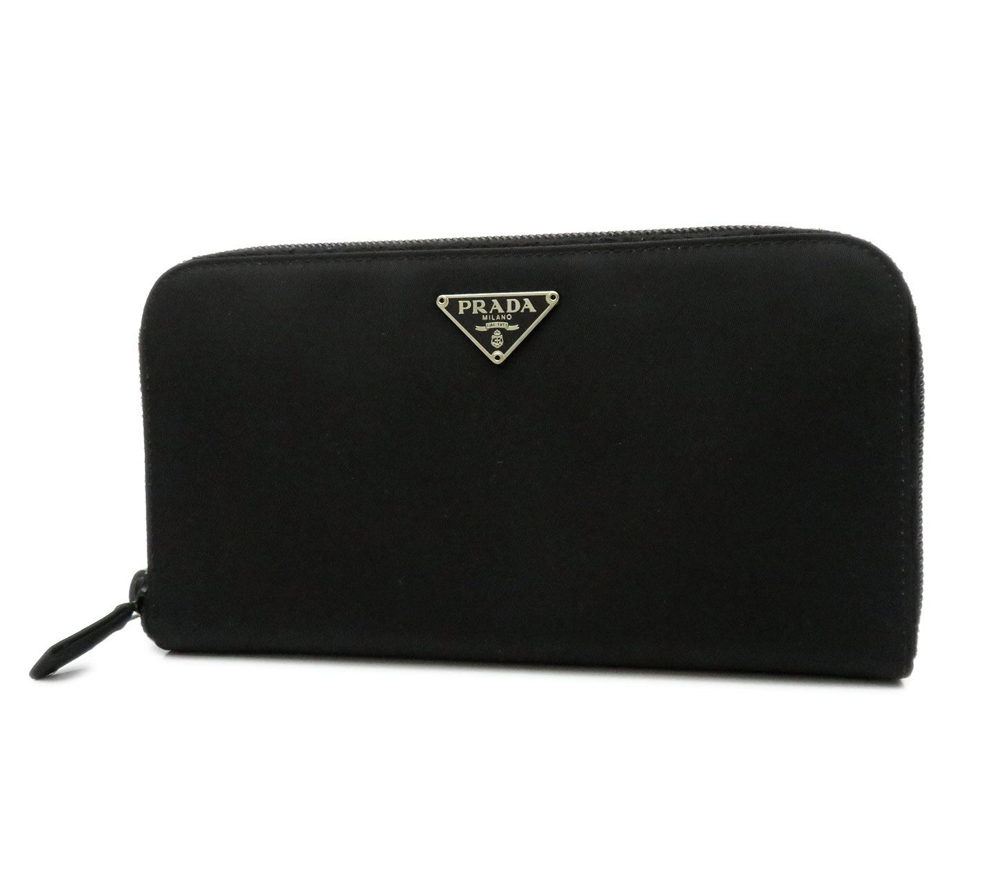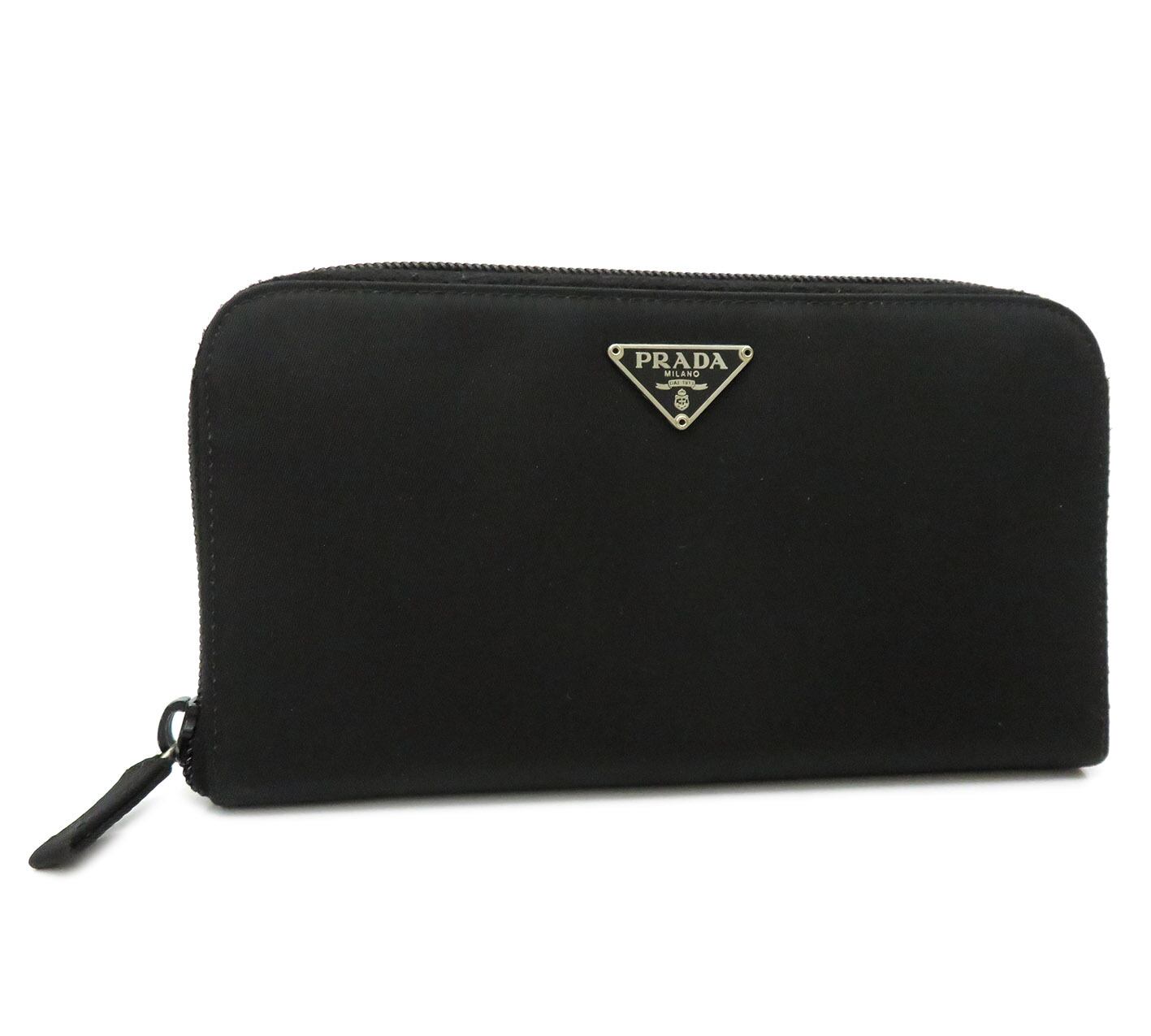 PRADA / プラダ 三角ロゴプレート ナイロン×レザー ラウンドファスナー 財布 ロングウォレット