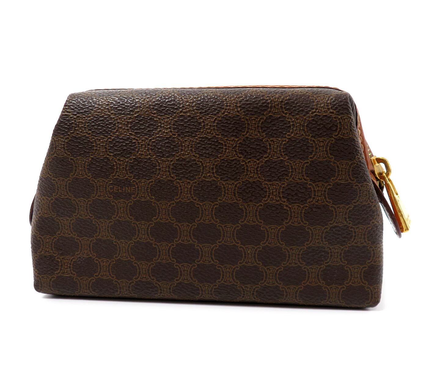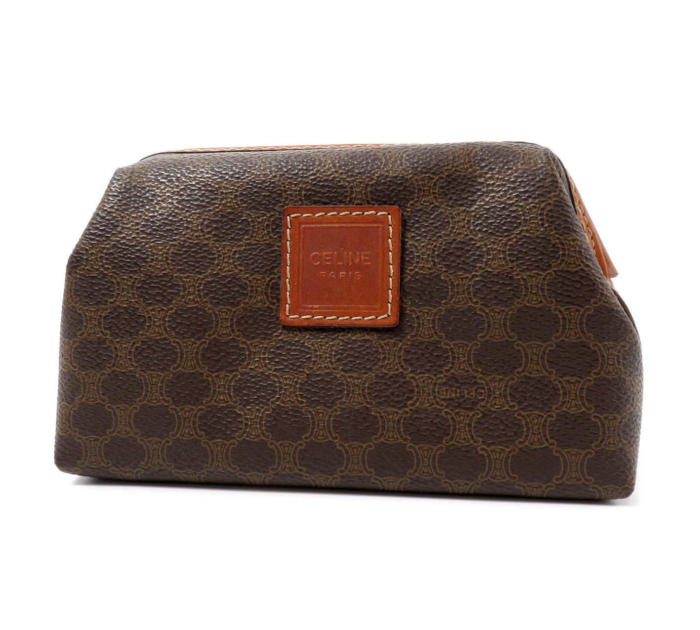 CELINE / セリーヌ マカダム柄 PVC×レザー ポーチ 化粧ポーチ バニティバッグ