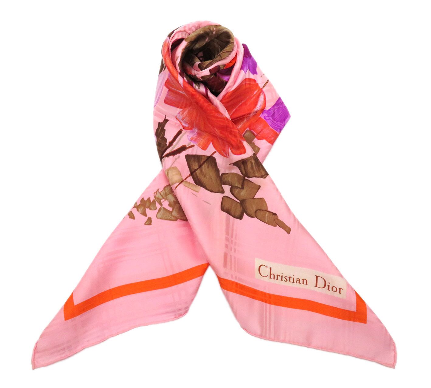 Christian Dior / クリスチャンディオール フラワー 花&チェック 柄 大判 シルク スカーフ