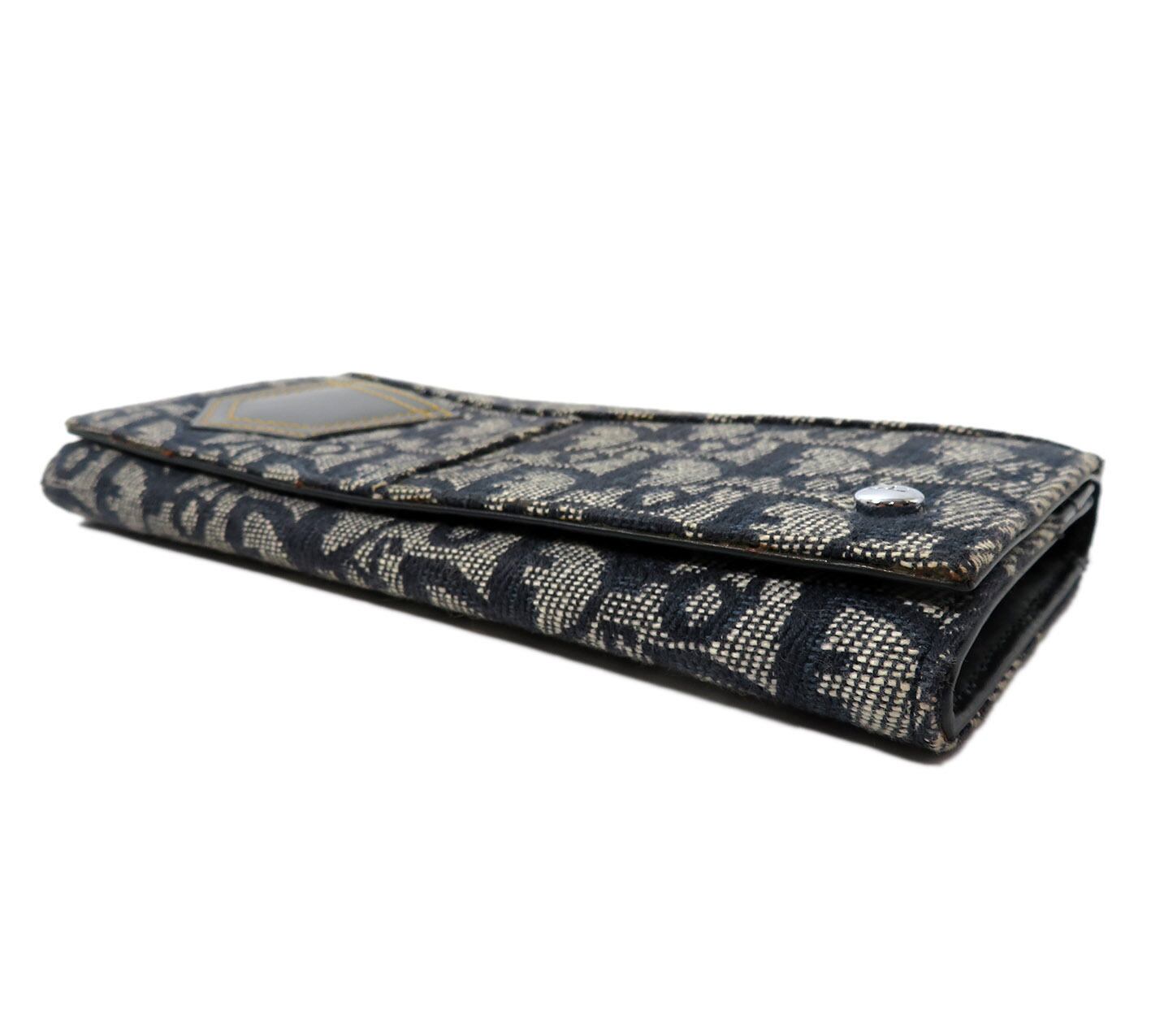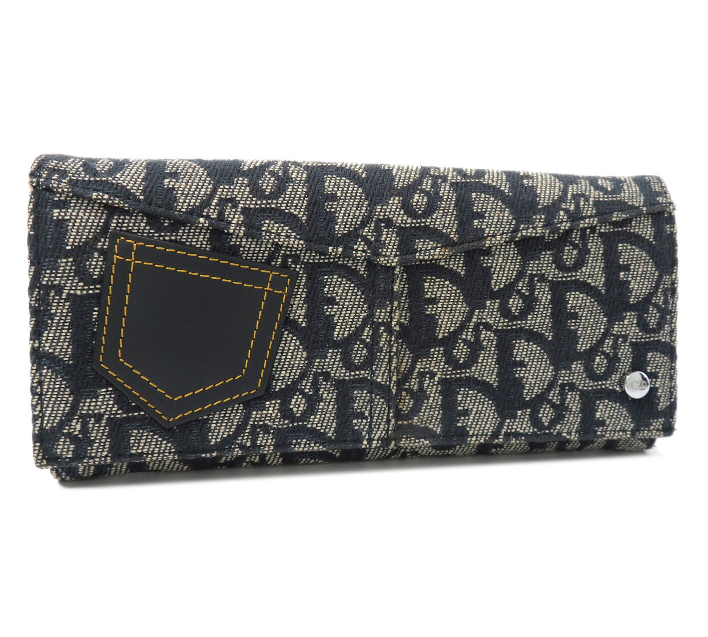 Christian Dior / クリスチャンディオール トロッター ポケット モチーフ 飾り キャンバス×レザー 二つ折り長財布 ロングウォレット