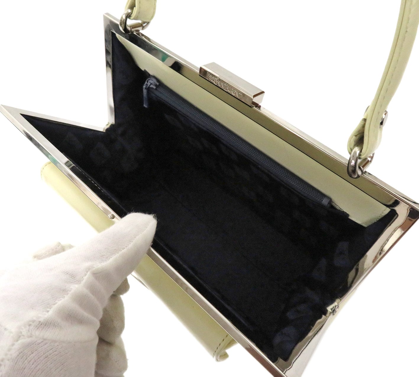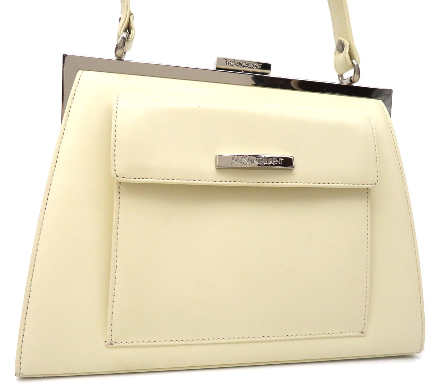 Yves Saint Laurent / イヴサンローラン フロント フラップポケット がま口 レザー カーフスキン ハンドバッグ