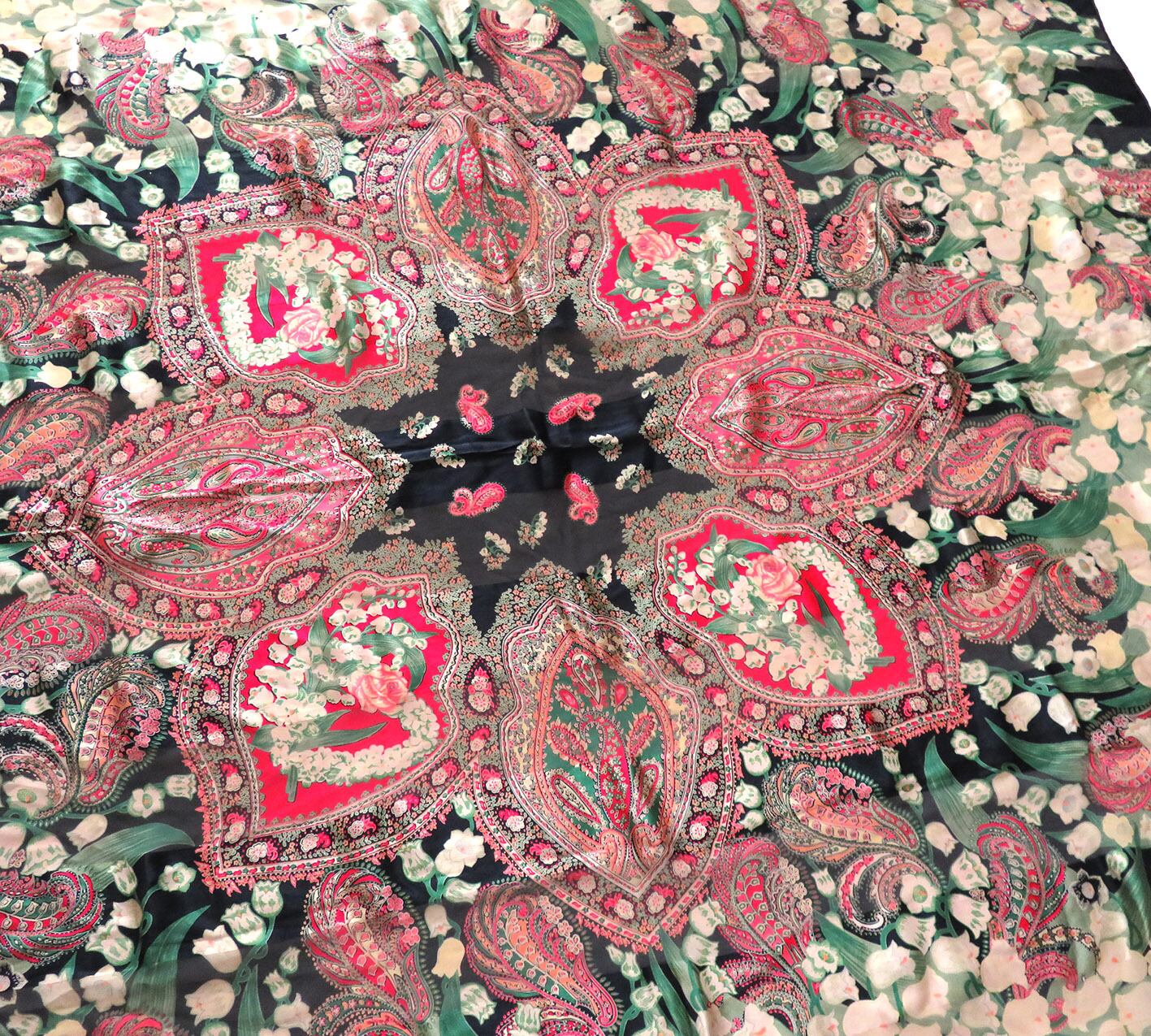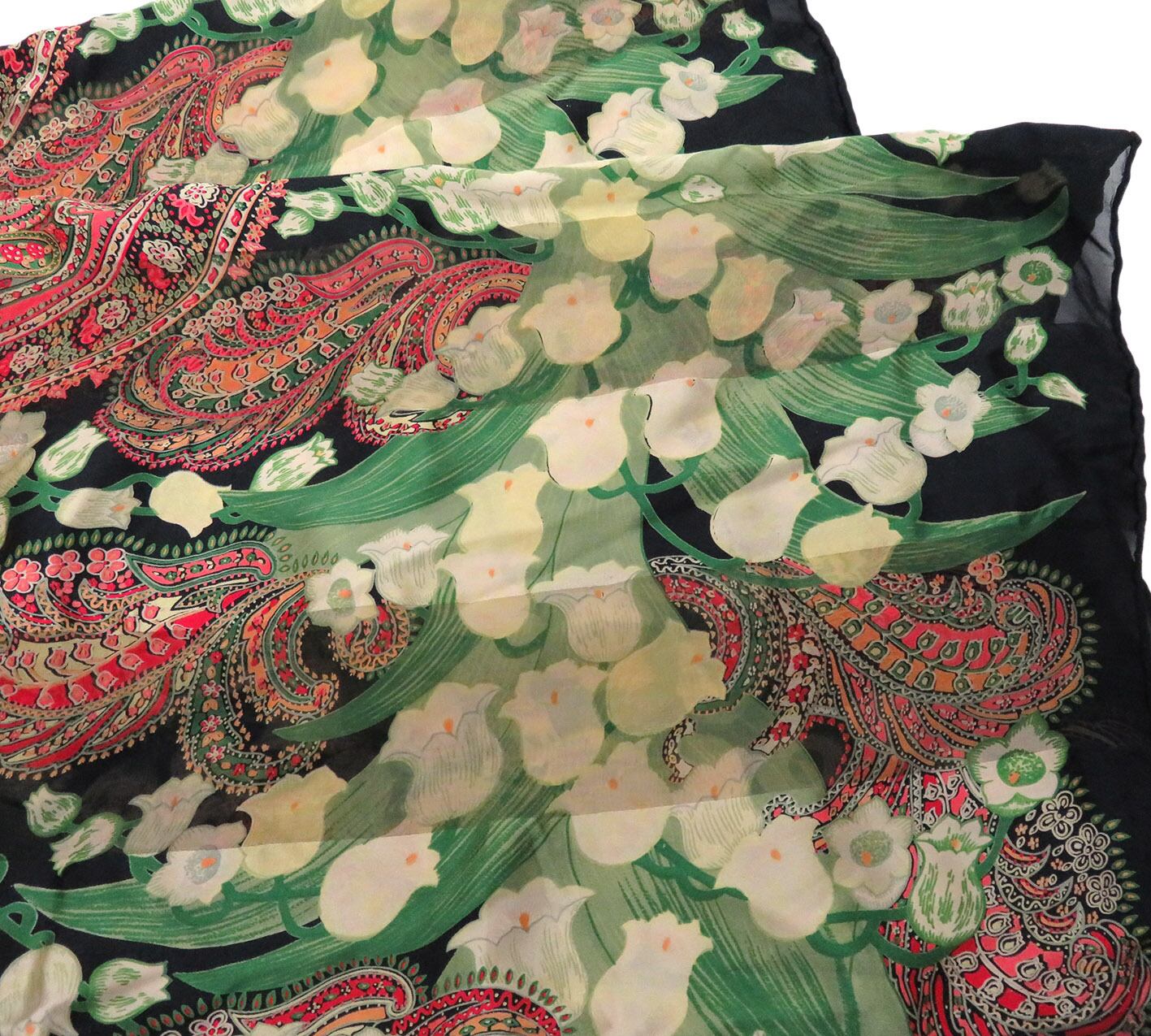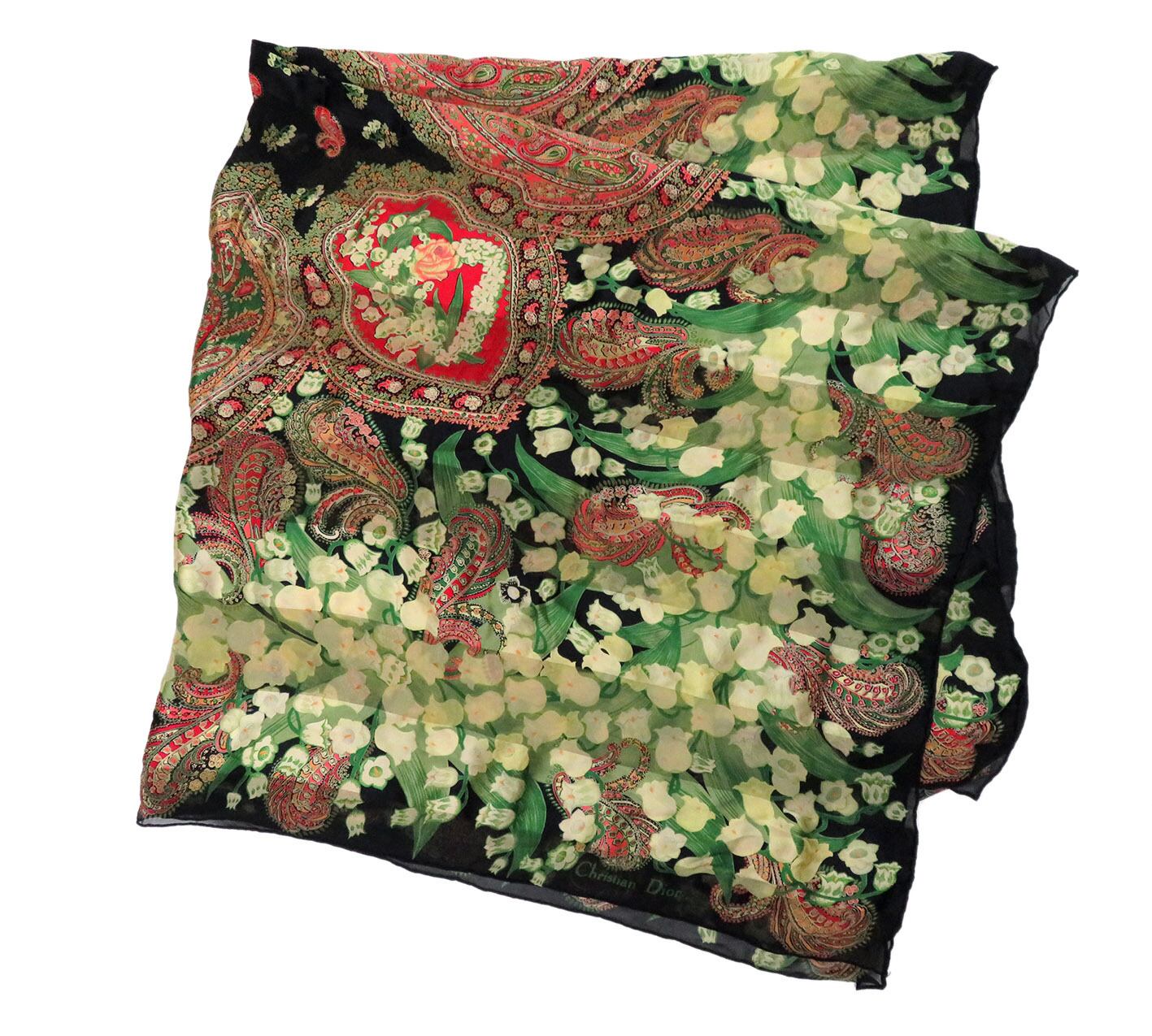 Christian Dior / クリスチャンディオール ペイズリー&すずらん 柄 大判 シルク スカーフ ショール ストール 125cm×125cm