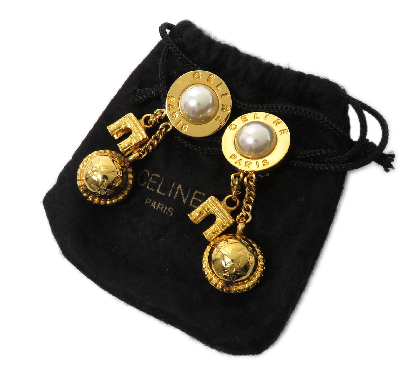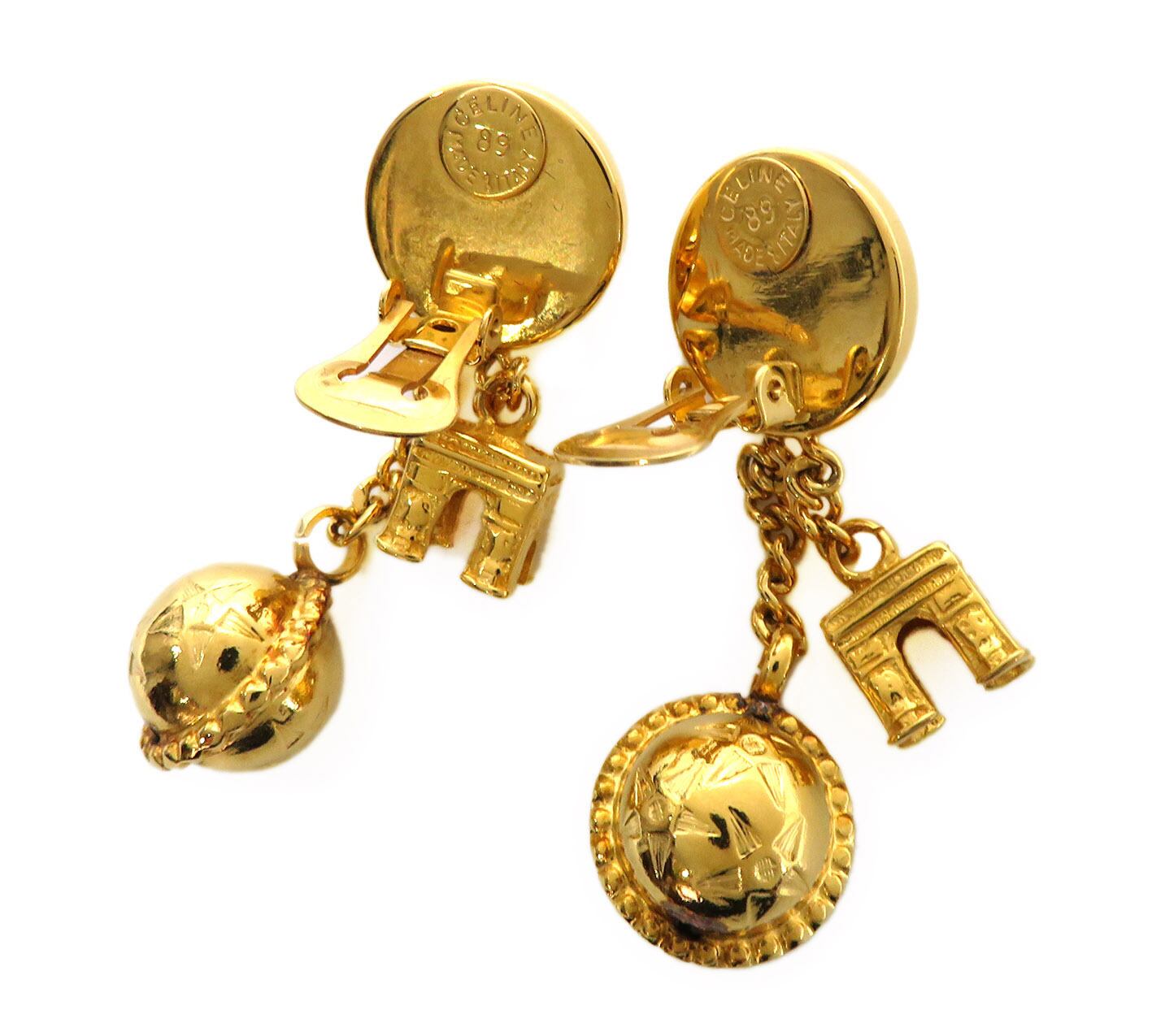 CELINE / セリーヌ サークルロゴ パール トップ スターボール&凱旋門 スイング イヤリング