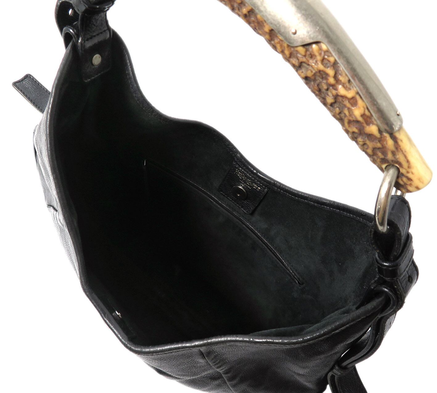 Yves Saint Laurent / イヴサンローラン モンバサ 鹿 角 ハンドル 本革 レザー ホーボーバッグ ワンショルダーバッグ ハンドバッグ