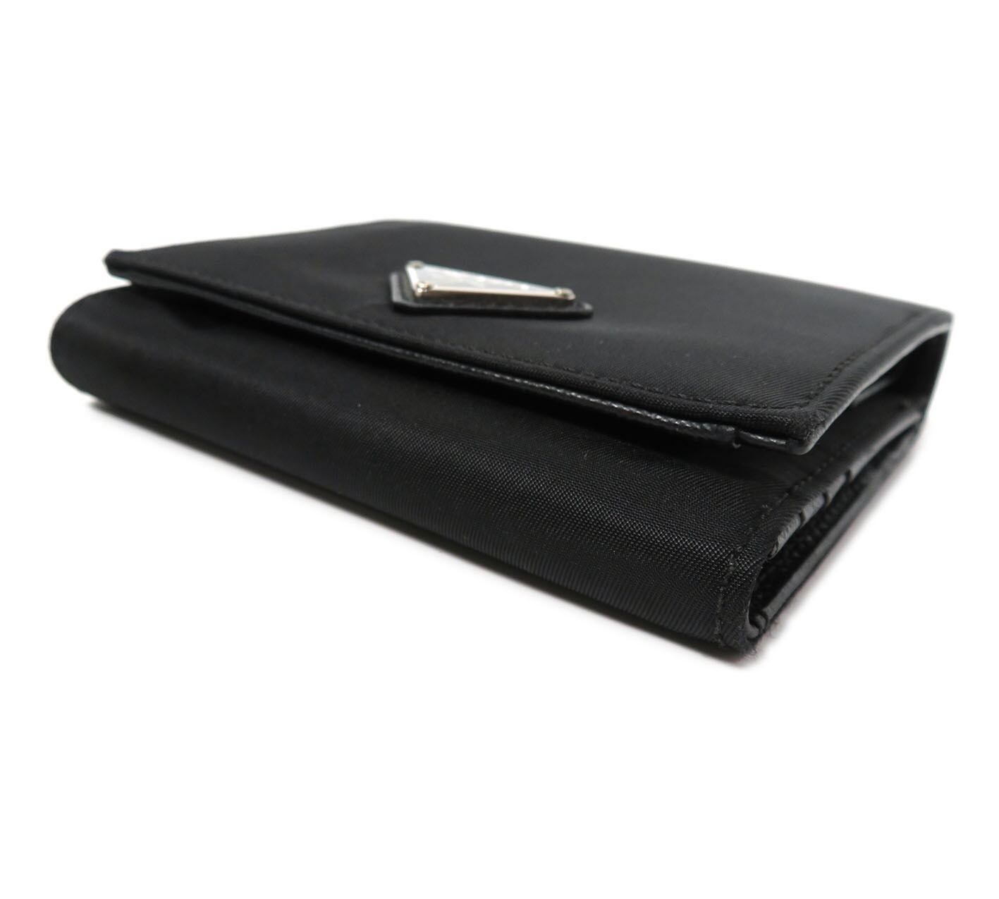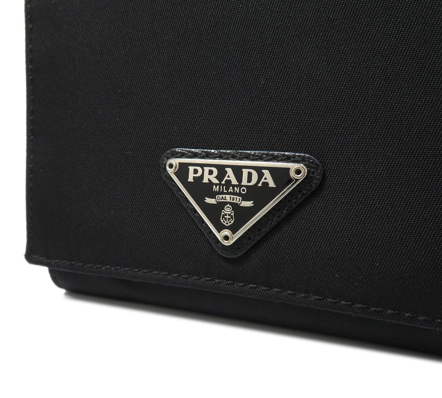 PRADA プラダ 三角ロゴプレート ナイロン×レザー スナップボタン 三つ折り財布 ウォレット
