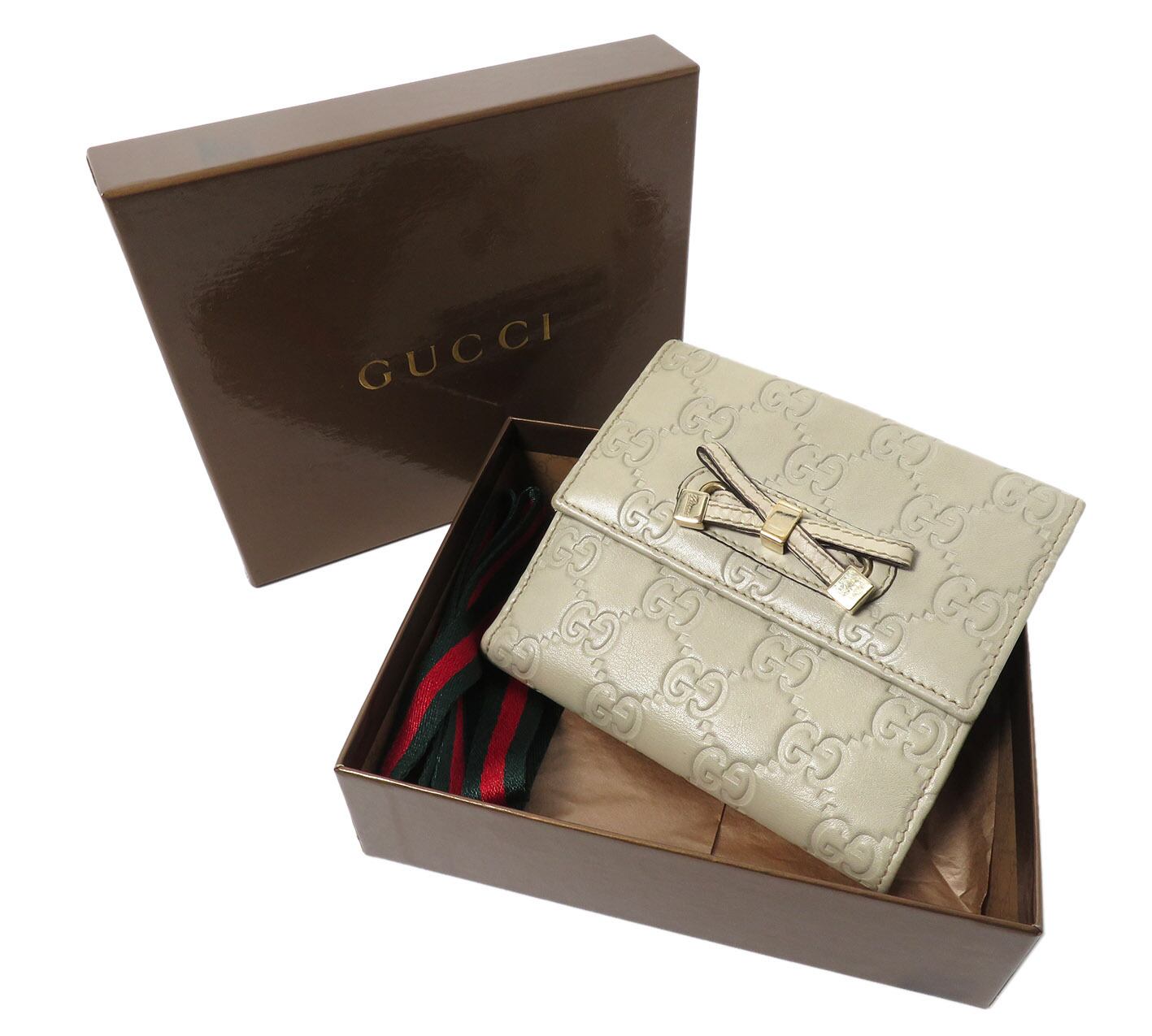 GUCCI グッチ GG柄 プリンシー リボン シマライン 本革 レザー Wホック 財布 ウォレット